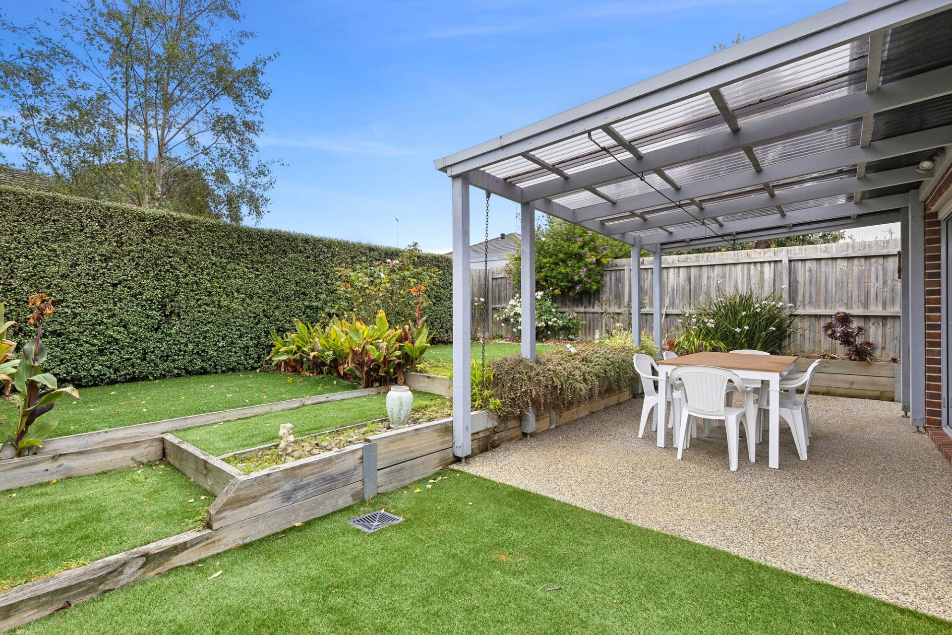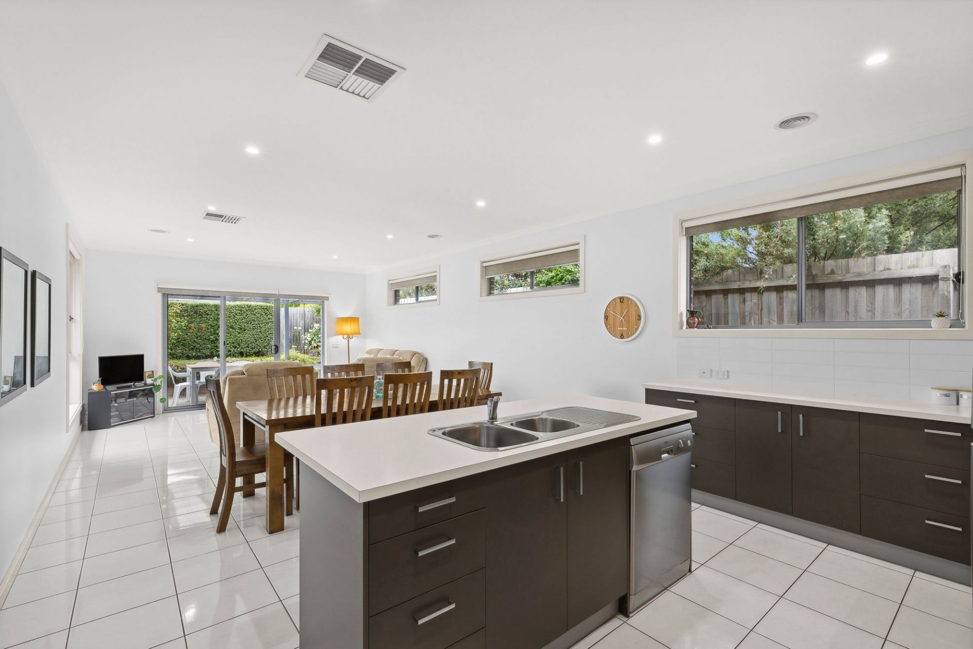 Towards the back of the property, a further open-plan living space flows into the dining area and modern kitchen. Thoughtfully designed, the kitchen offers ample bench space, storage, and stainless steel appliances. This area seamlessly connects to a concreted, undercover outdoor entertaining space surrounded by low-maintenance, private landscaping-perfect for those with a green thumb.