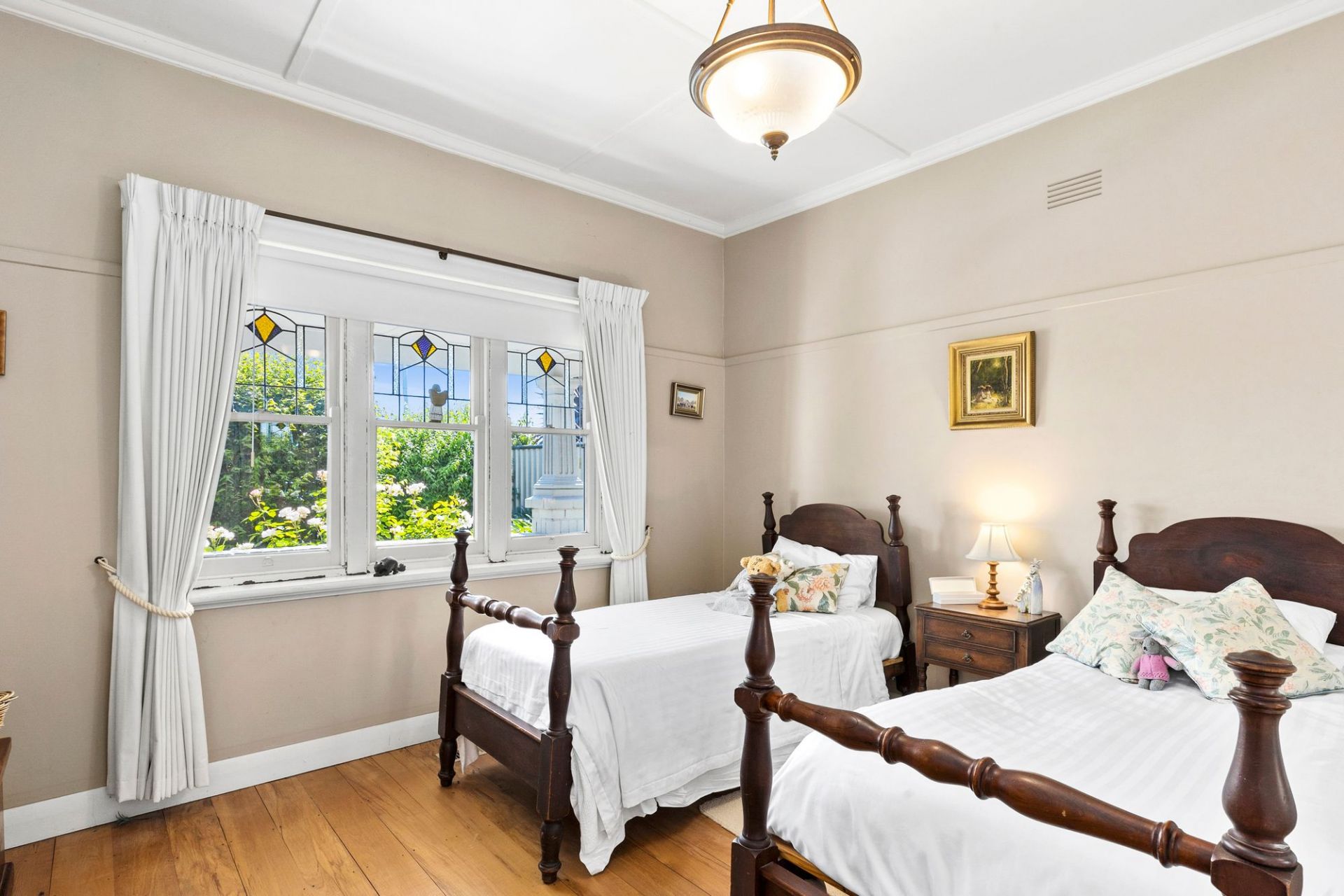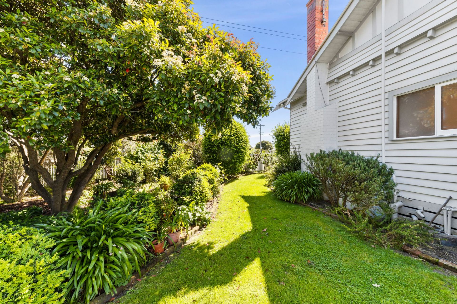 The surrounding gardens are simply charming, with mature trees creating privacy from the street front. Tucked away at the side of the home, the veggie gardens are ready for your additions. The double carport provides off-street parking via Ash Road.