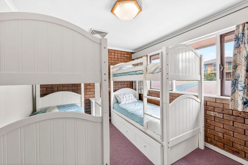 The well-equipped kitchen is a standout, offering quality appliances, a dishwasher, ample counter space, and an adjoining dining and living areas. Upstairs, you’ll find no less than 9 bedrooms all with built-in robes, a central bathroom and main bedroom with ensuite making it ideal for everyday family life or accommodating extended family for beach holidays.