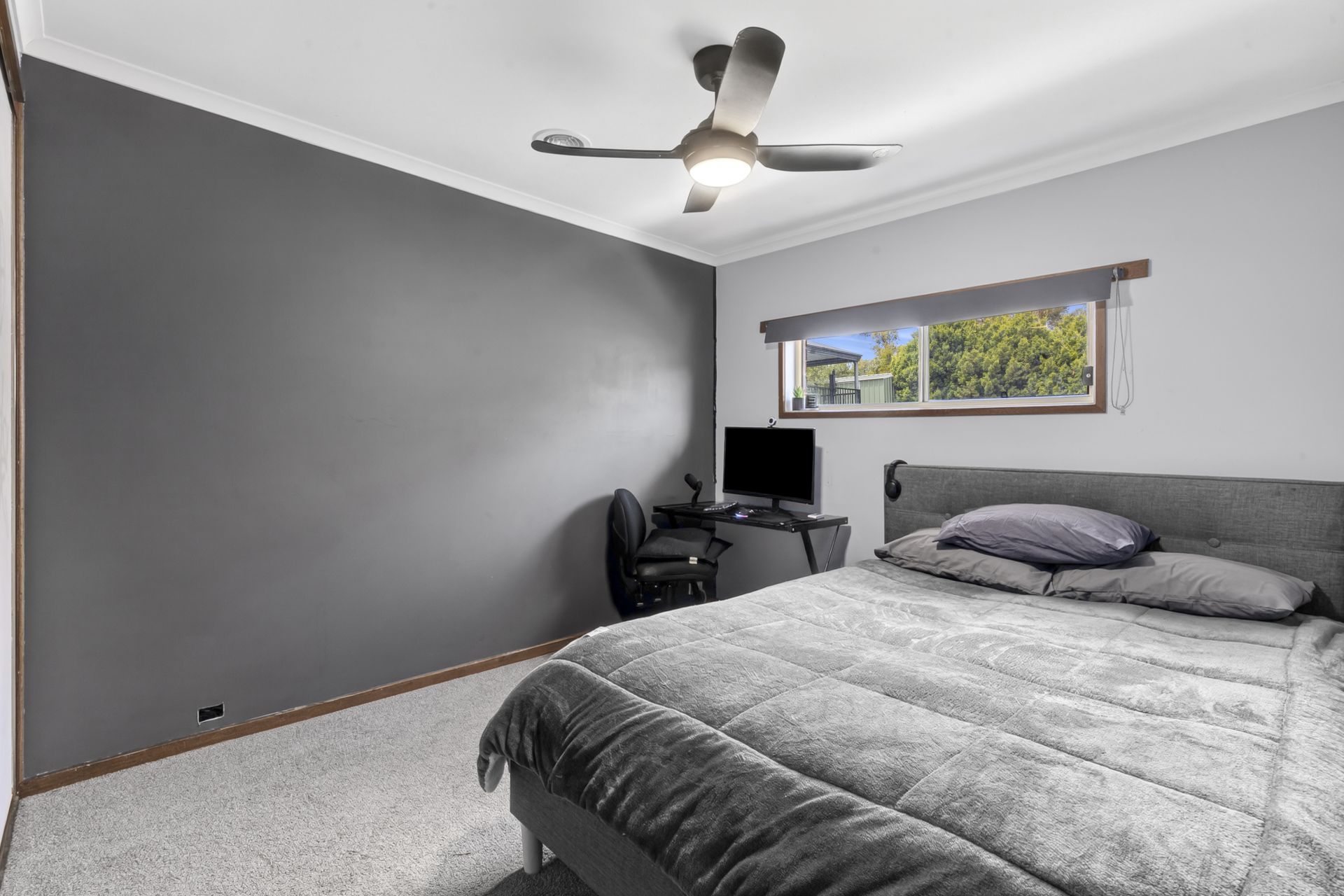 Accommodation is intelligently zoned. The main bedroom enjoys a peaceful position with a walk-in robe and ensuite, while the remaining bedrooms occupy a separate wing alongside the central bathroom and laundry, ideal for children, guests or flexible home office use. Ceiling fans throughout and multiple reverse cycle air-conditioning units ensure comfort across every season, while a single garage completes the practical offering.