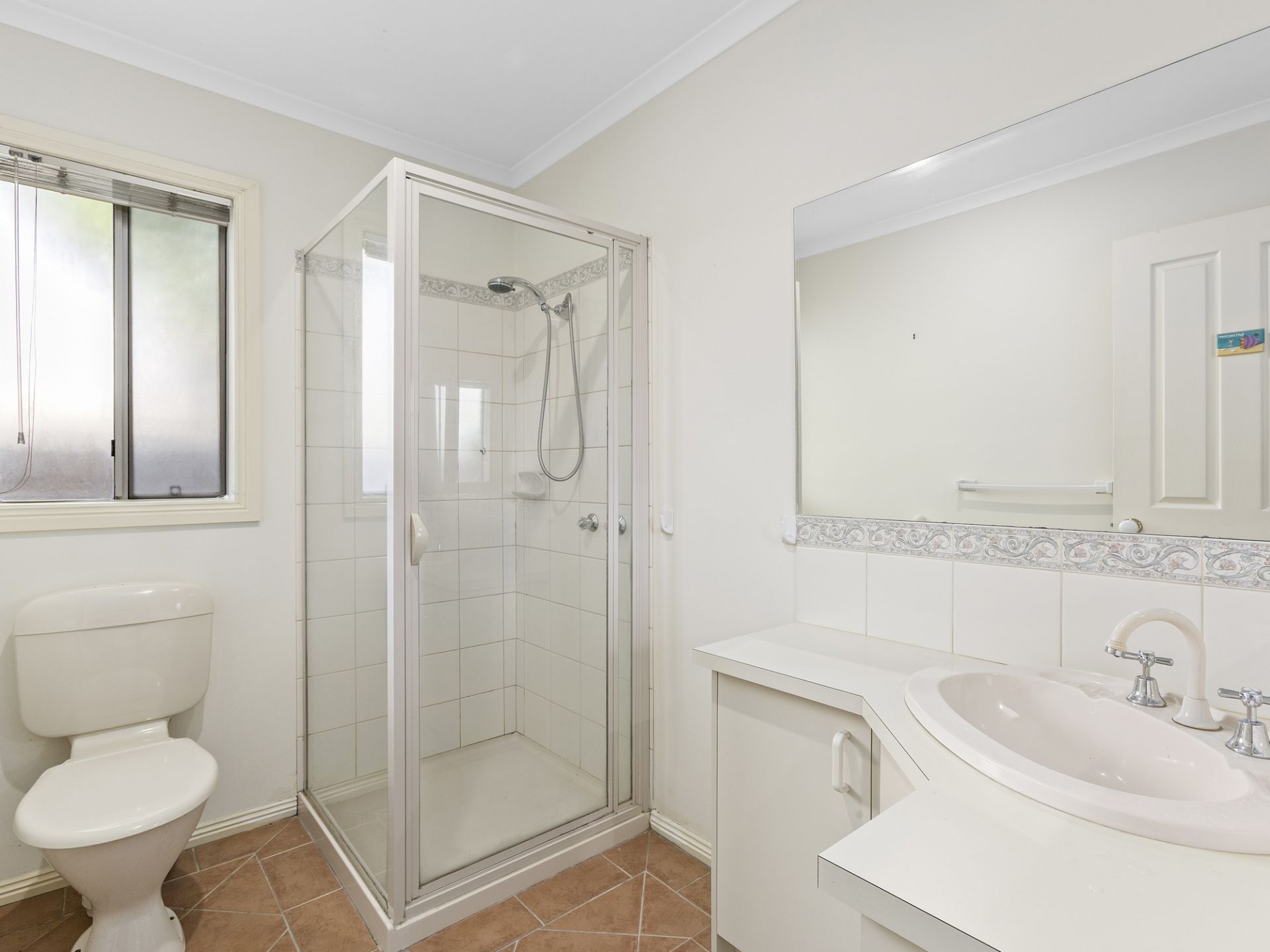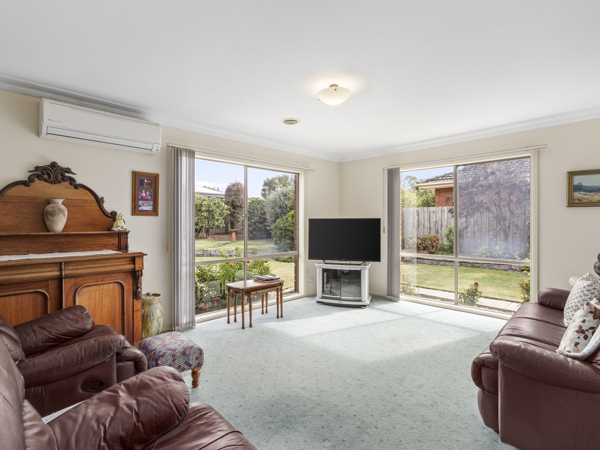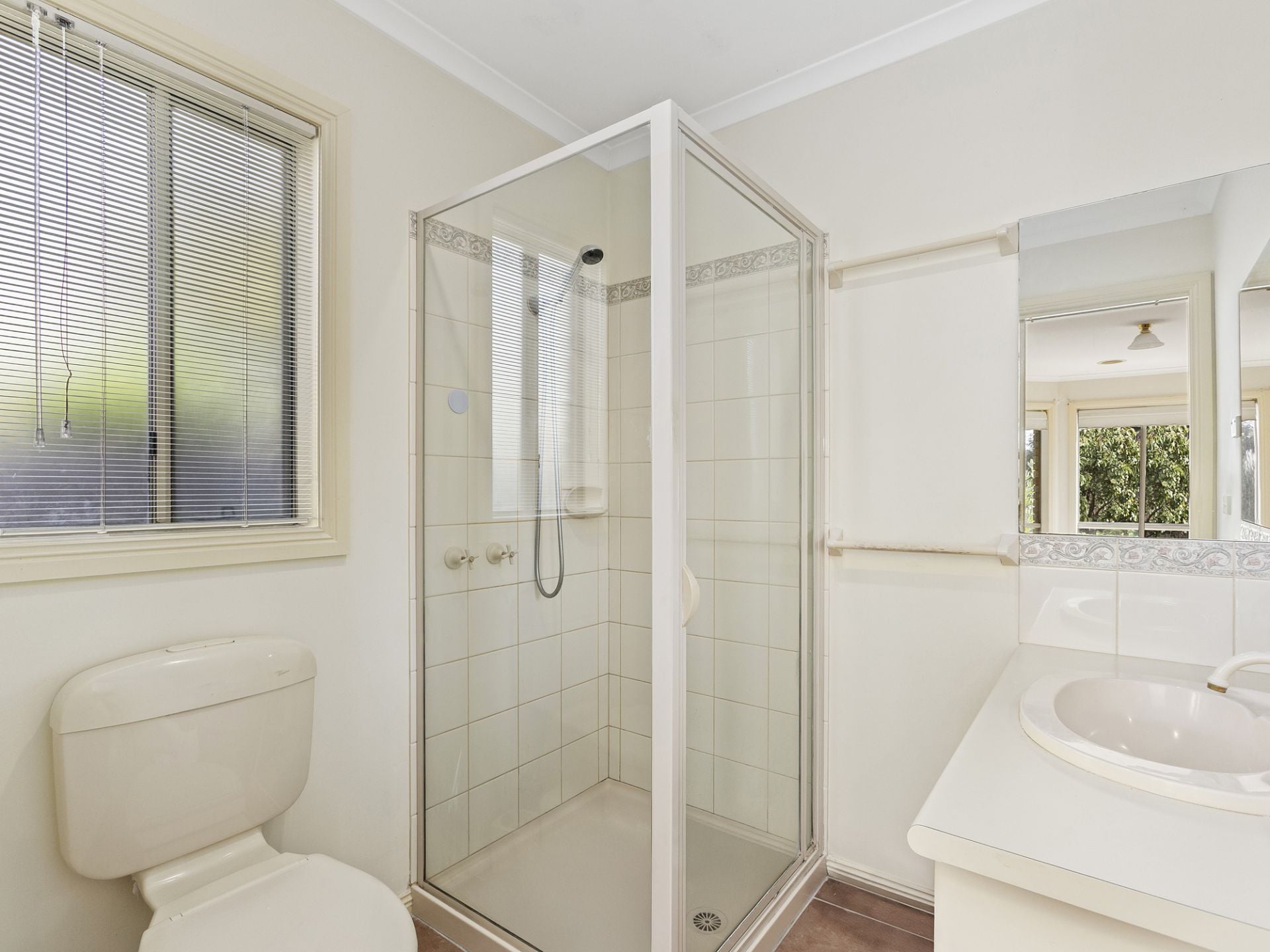 Three generous bedrooms include a master with walk-in robe and private ensuite, while two further bedrooms offer built-in robes and garden outlooks. Comfort is assured with gas ducted heating and split system cooling, plus external blinds for year-round climate control.