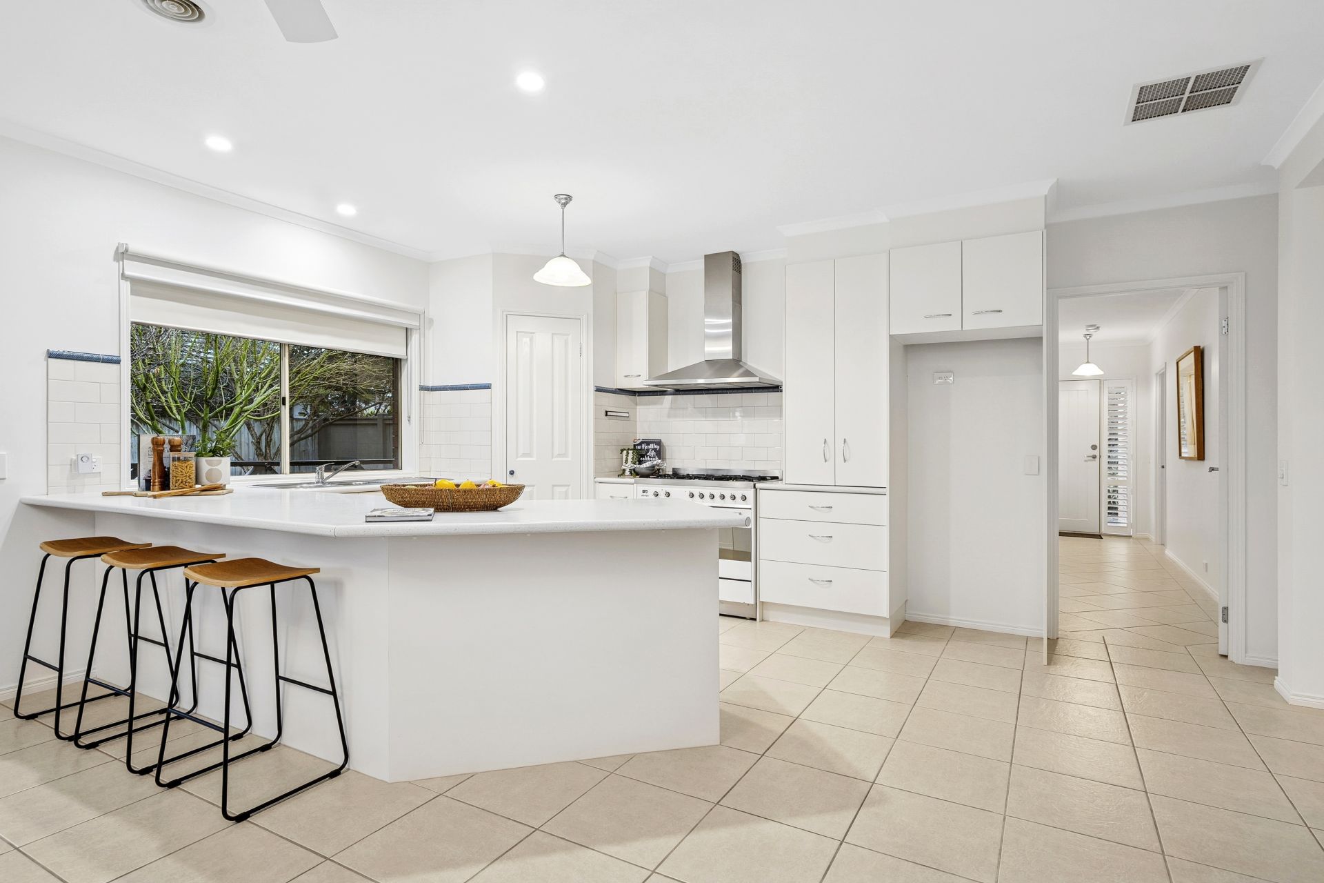 Outside, the expansive 674 sqm block offers a large backyard, perfect for children to play or for hosting summer barbecues with friends under the covered alfresco deck, which looks over the relaxing garden. Comfort is assured year-round with ducted gas heating, multiple split-system air conditioners and ceiling fans. The beautifully landscaped backyard creates a private oasis offering multiple sitting areas to kick back and take in the tranquil backdrop. It features an abundance of fruit trees (apple, pear, peach, plum, lemon, fig, pomegranate, feijoas and finger limes), raised veggie beds and three garden sheds. The double garage provides secure parking and additional storage options.