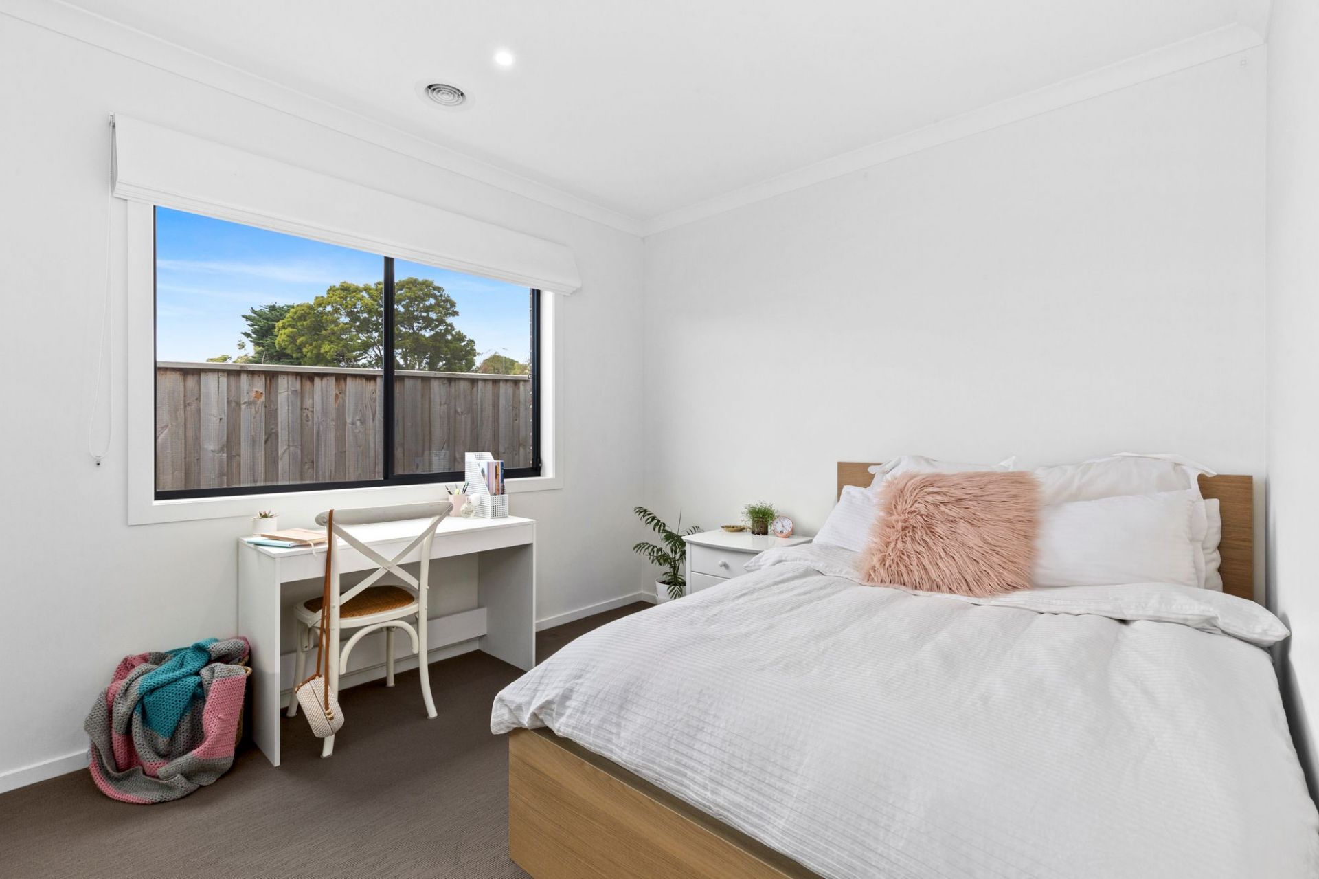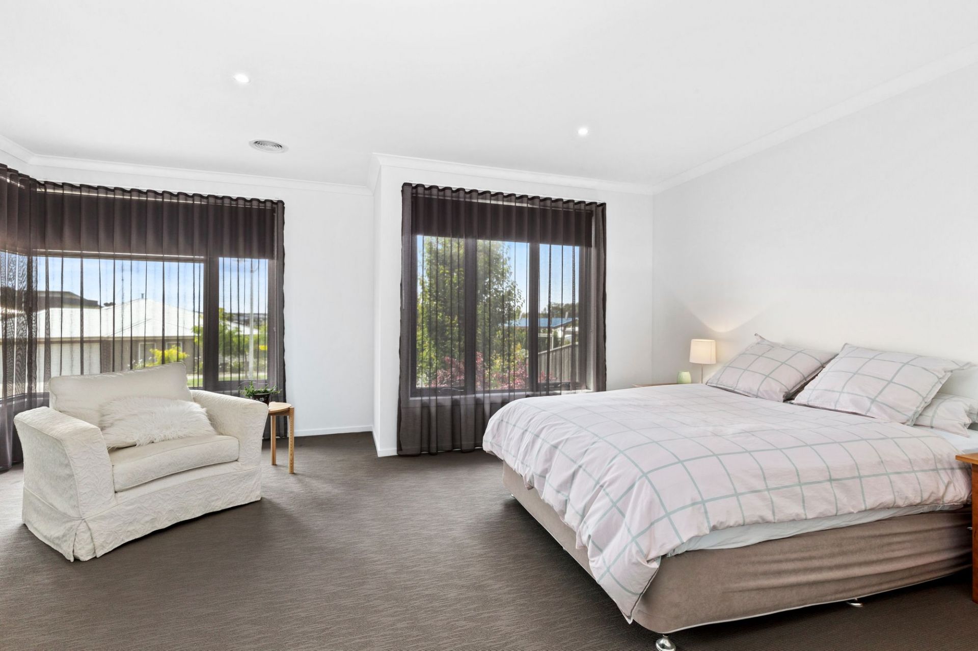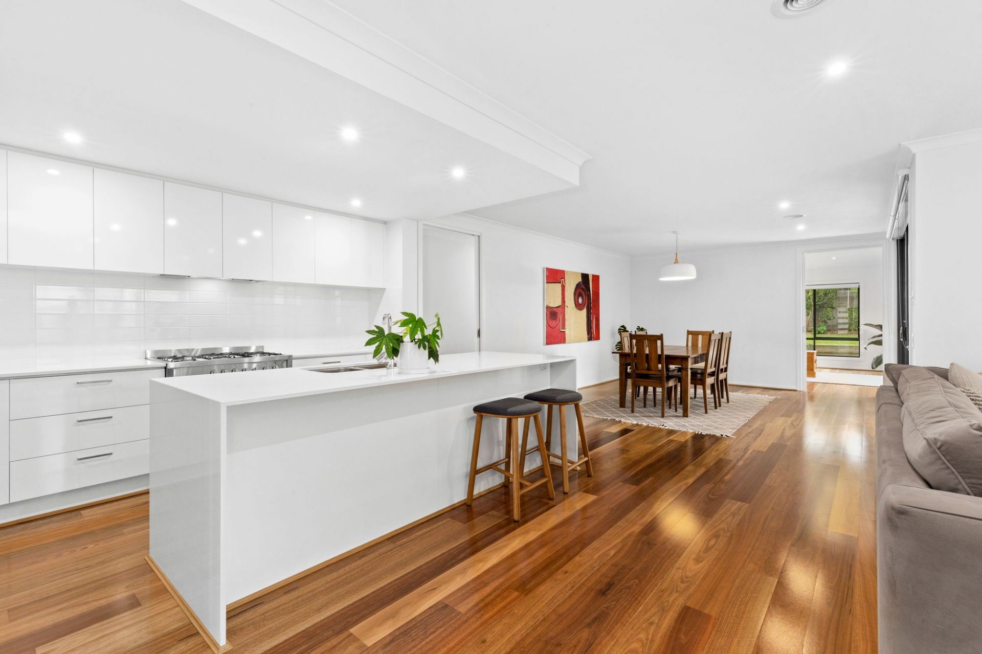 From the moment you arrive at 11 Serene Terrace and step onto the lush lawn past flourishing ornamental pear trees, there’s a sense that something special awaits behind the front door. And indeed there is! Situated in the award winning Central Walk Estate, a boutique development just 200 metres from the town centre, this 4 bedroom home occupies a most desirable position overlooking the attractive wetlands in a family friendly neighbourhood. Upon entering you are welcomed with both warmth and a sense of wow with striking spotted gum flooring throughout the home. A long hallway leads to the open plan design, featuring a stylish and sleek kitchen complete with large caesar stone island bench, walk-in pantry and quality appliances. The home has been thoughtfully designed to provide two separate living zones, providing that sought after second space for the kids. The home also delivers a clever alfresco connection with both living zones opening onto a superb and very spacious north facing entertainment deck, private and protected from the elements, complete with ceiling fan for those hot summer evenings. The master bedroom is extremely spacious and is complemented by a large walk in robe and stylish, spacious ensuite with twin vanities. The remaining 3 generous sized bedrooms all have built in robes and share a central modern bathroom with separate WC. There is loads of storage and a DLUG with direct access inside and to the rear garden will certainly appeal. Lovely fruit trees in the back garden, a separate veggie garden and a great area for the fire pit. Further features of this wonderful home include ducted heating, solar panels, a well positioned laundry with outside access. Walk to the shops, schools and enjoy the walking paths around the wetlands. Just 20 minutes from Geelong, you are within easy reach of the beach, Queenscliff marina, wineries and all the coastal assets.