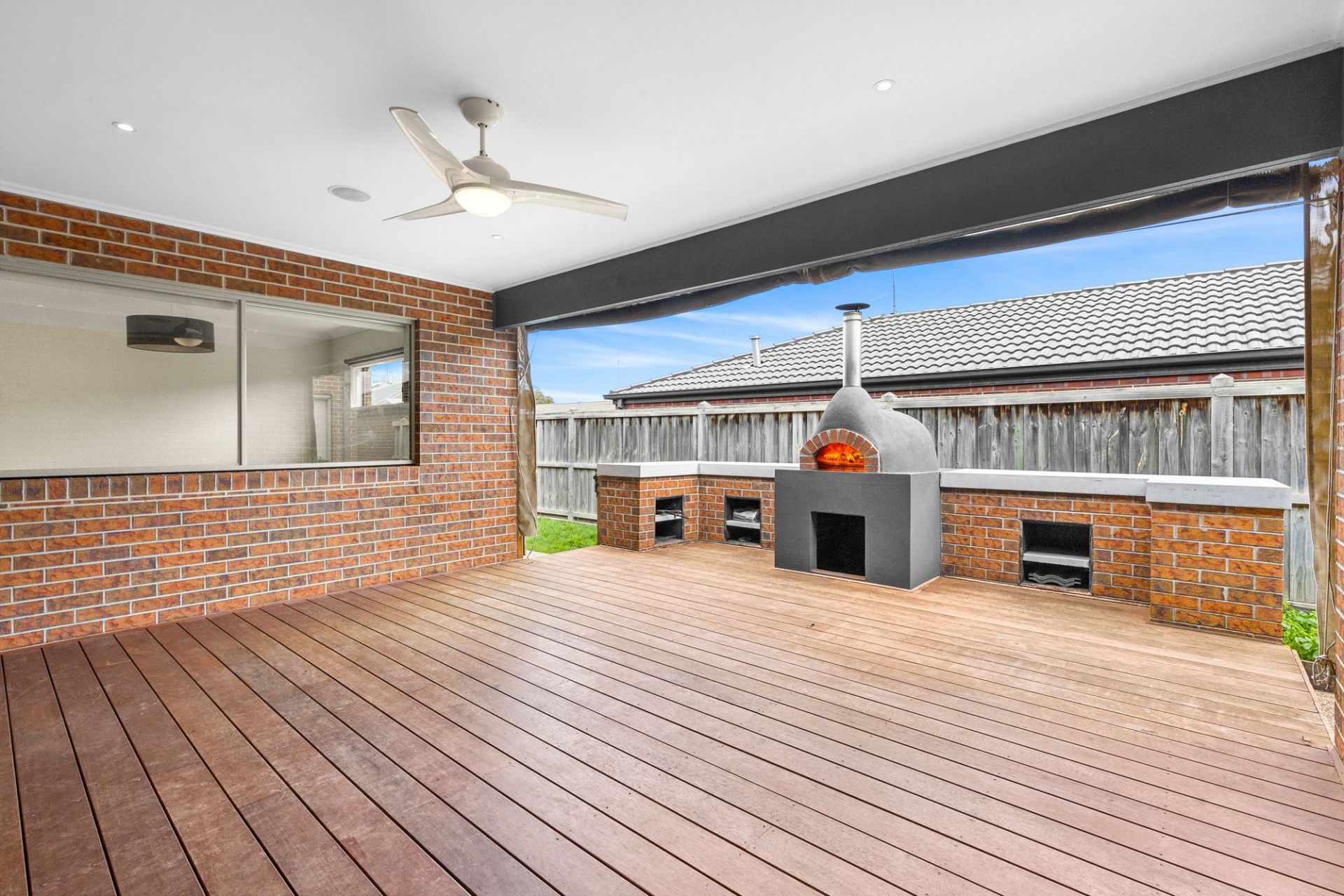 When it comes to entertaining options, this covered alfresco deck is an absolute treat. Shade blinds enclose the deck for winter gatherings, while summer will inspire you to light up the pizza oven as you host loved ones. Low-maintenance landscaping is a blessing, with the small yard home to a rainwater tank. The remote double garage features internal access.