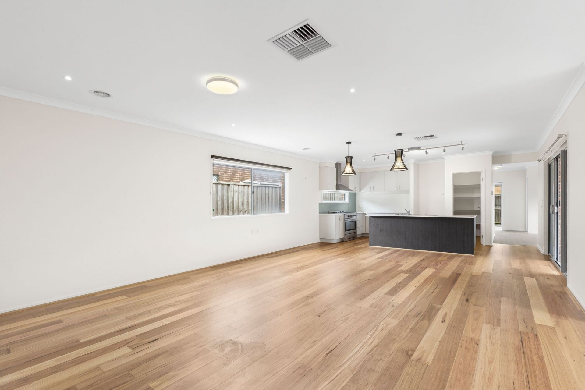 High ceilings and timber floorboards enhance the interiors, with the open plan living/dining/kitchen zone establishing the heart of the home. You'll love that this spacious living zone features an adjoining sitting room/office, where you can curl up with a good book as the afternoon sun streams through the window. Tucked away in the children's wing, the lounge provides the perfect retreat for children and teens alike. The kitchen will delight cooking enthusiasts with stone benchtops, a walk-in pantry and stainless steel appliances (dishwasher and 900mm oven/gas cooktop).