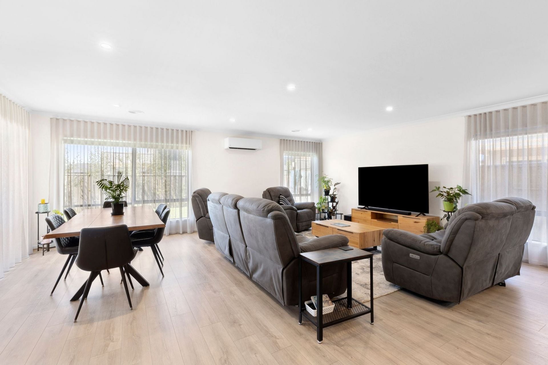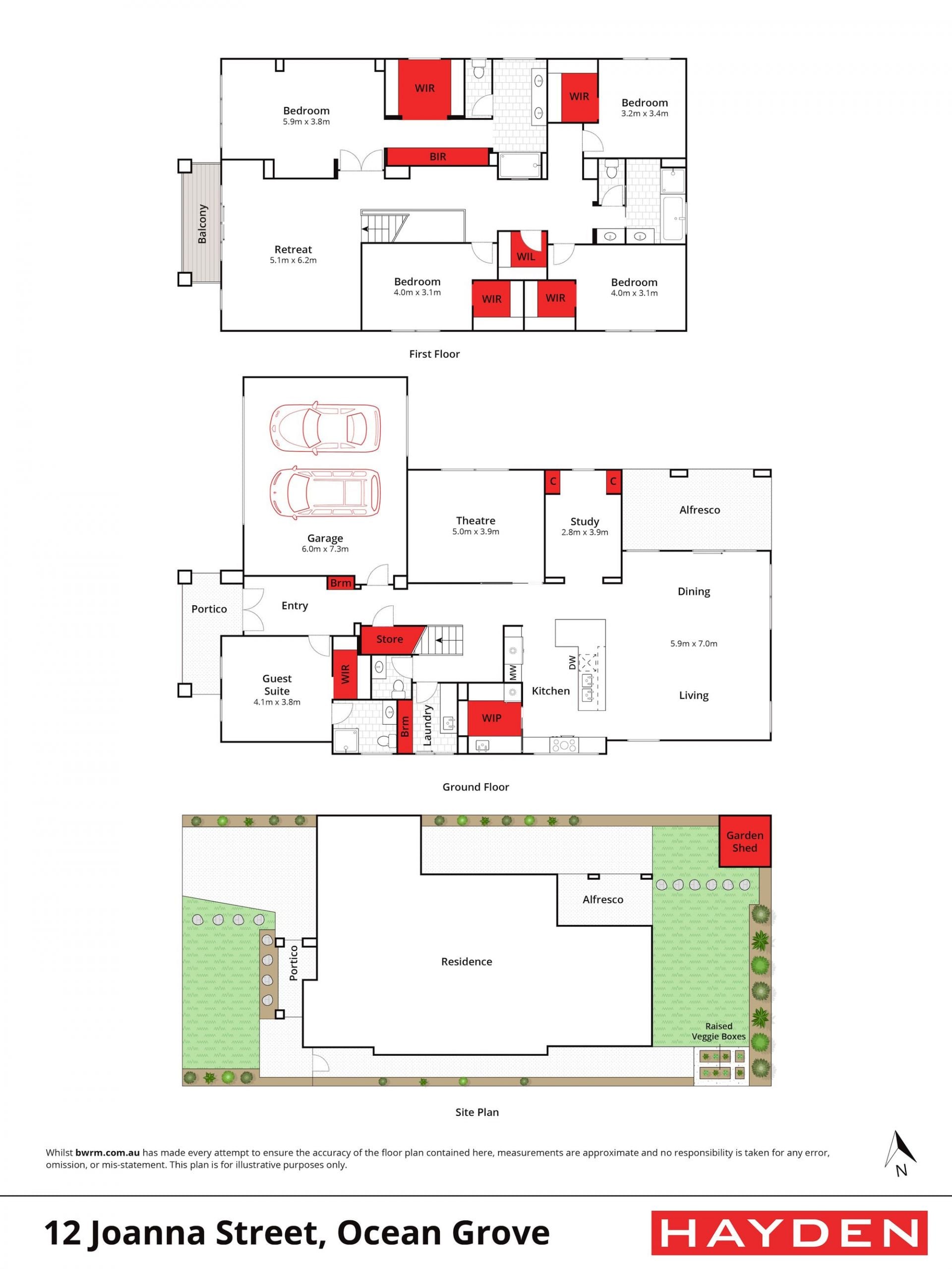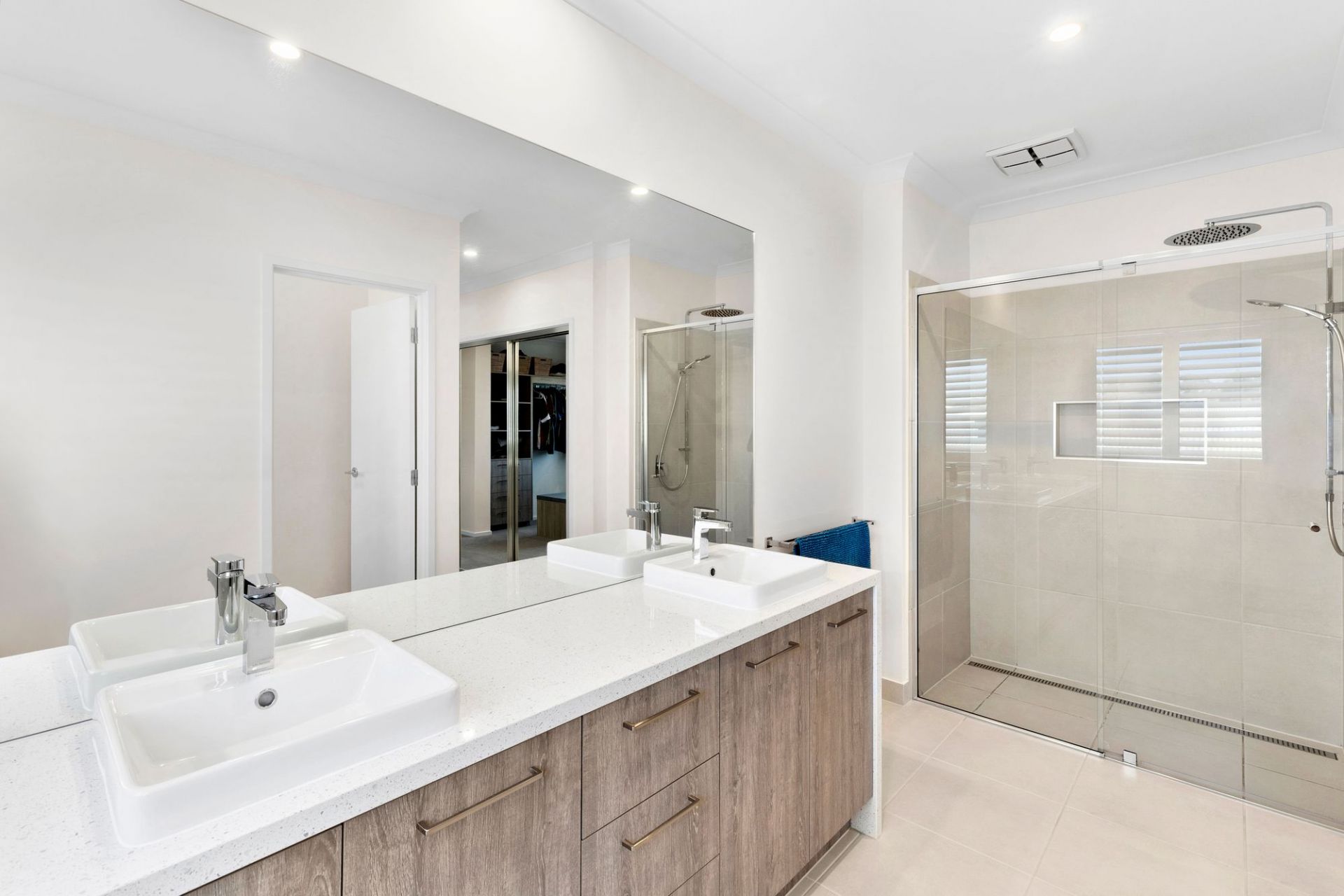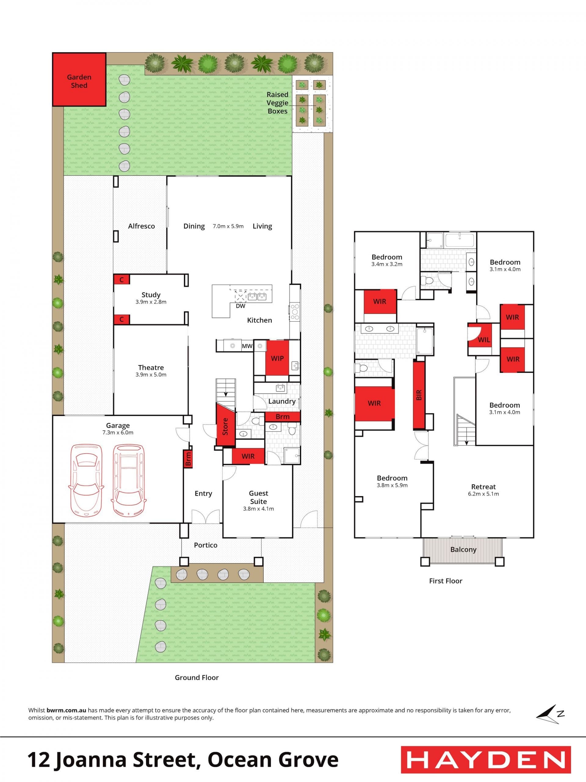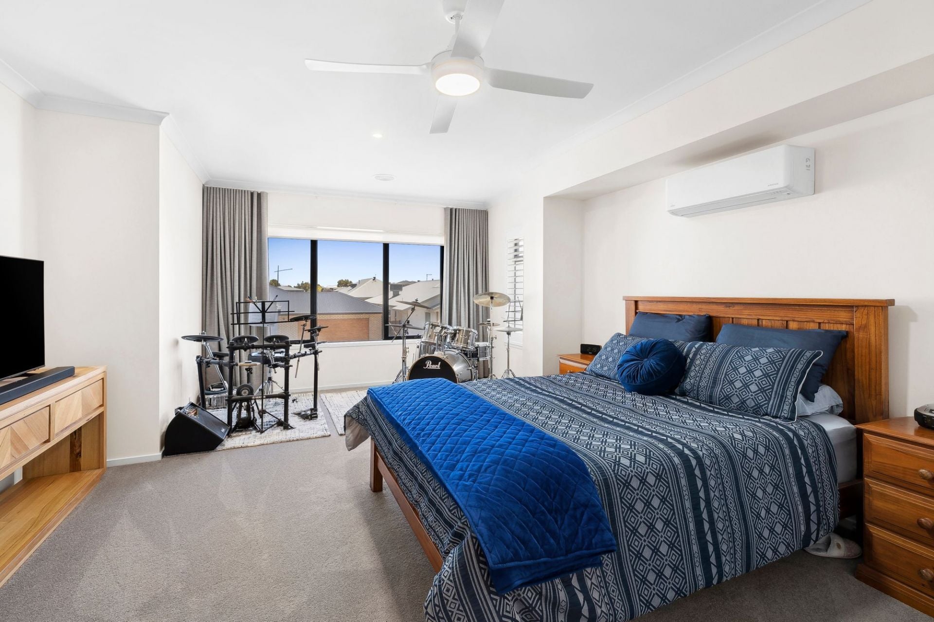 Inside, every bedroom is generously sized, each with a walk-in robe and reverse cycle air conditioning, ensuring comfort and privacy for all family members. The enormous master suite includes a walk-through dressing area, a luxurious ensuite, and a retreat feel. Downstairs, a guest bedroom with an ensuite offers flexibility for comfortably accommodating visitors or even multi-generational living.
