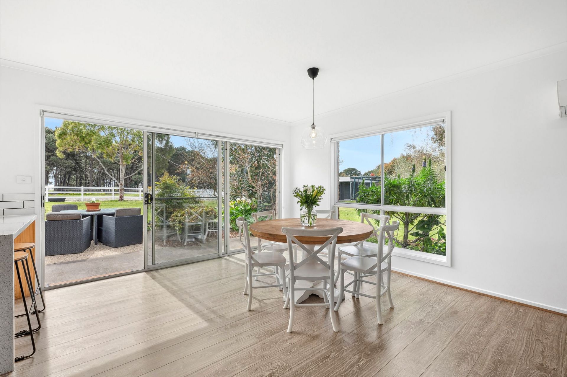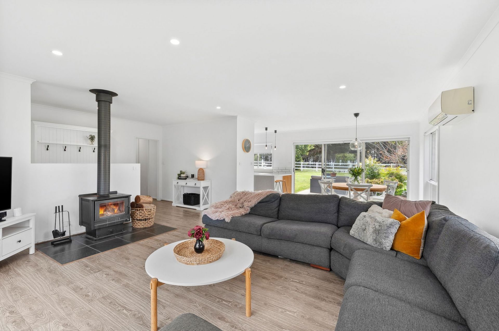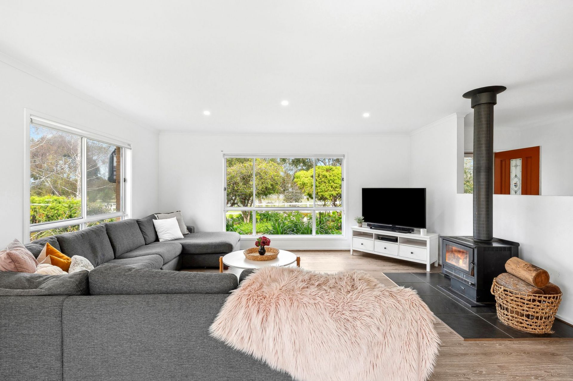 The residence on the picturesque tree-lined property is a spacious three-bedroom (plus fourth bedroom/study) family home with a recently renovated kitchen alongside a sunny dining area and open plan living zone. A wood-fired heater and reverse-cycle air conditioning keep the home cosy year-round. The master bedroom includes a walk-in robe and refreshed ensuite, and the remaining bedrooms are serviced by a recently updated sun-filled family bathroom with separate toilet. The 12-panel solar setup and Biolytic sewerage system provide sustainability credentials.