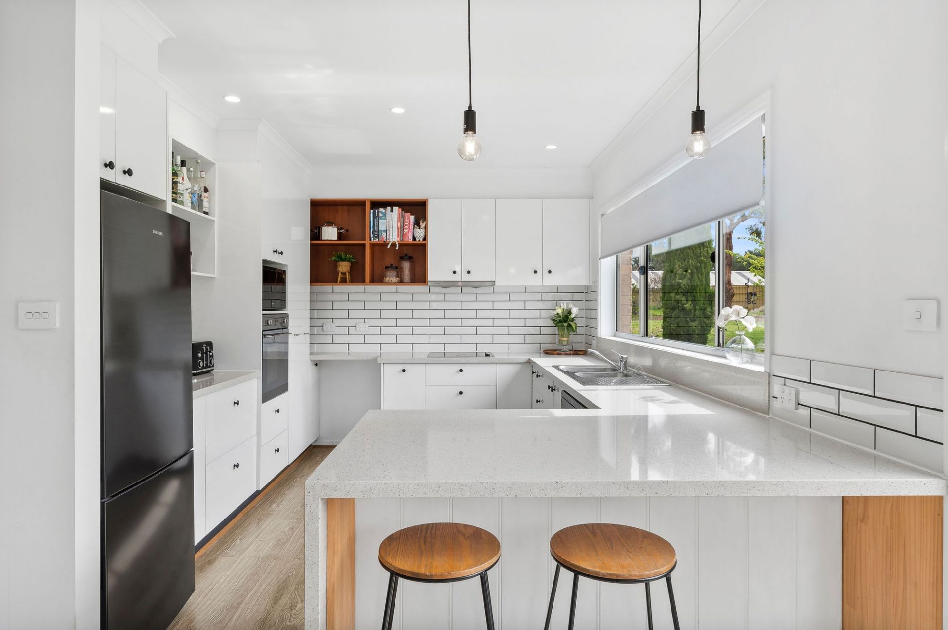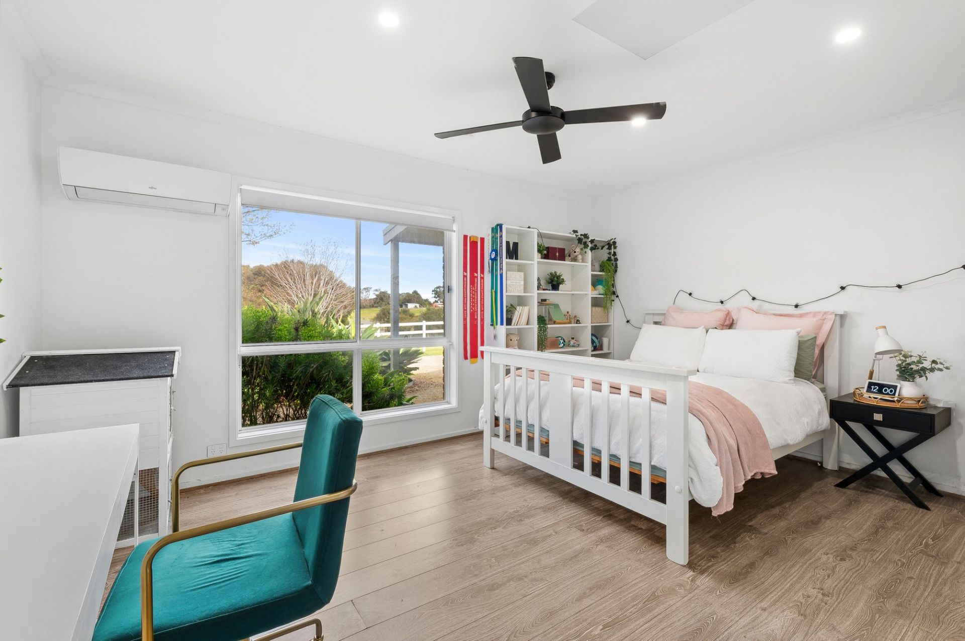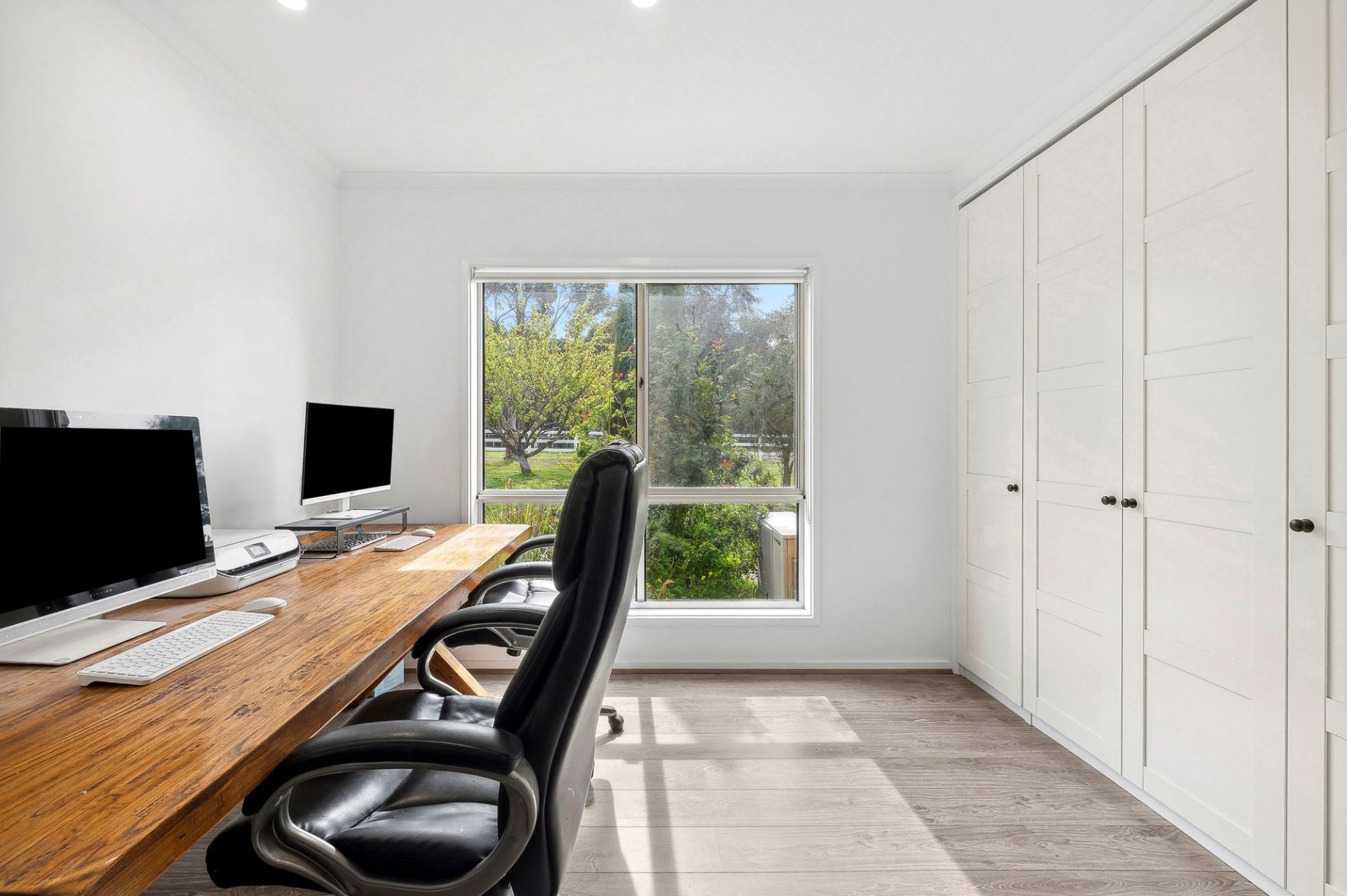 The residence on the picturesque tree-lined property is a spacious three-bedroom (plus fourth bedroom/study) family home with a recently renovated kitchen alongside a sunny dining area and open plan living zone. A wood-fired heater and reverse-cycle air conditioning keep the home cosy year-round. The master bedroom includes a walk-in robe and refreshed ensuite, and the remaining bedrooms are serviced by a recently updated sun-filled family bathroom with separate toilet. The 12-panel solar setup and Biolytic sewerage system provide sustainability credentials.
