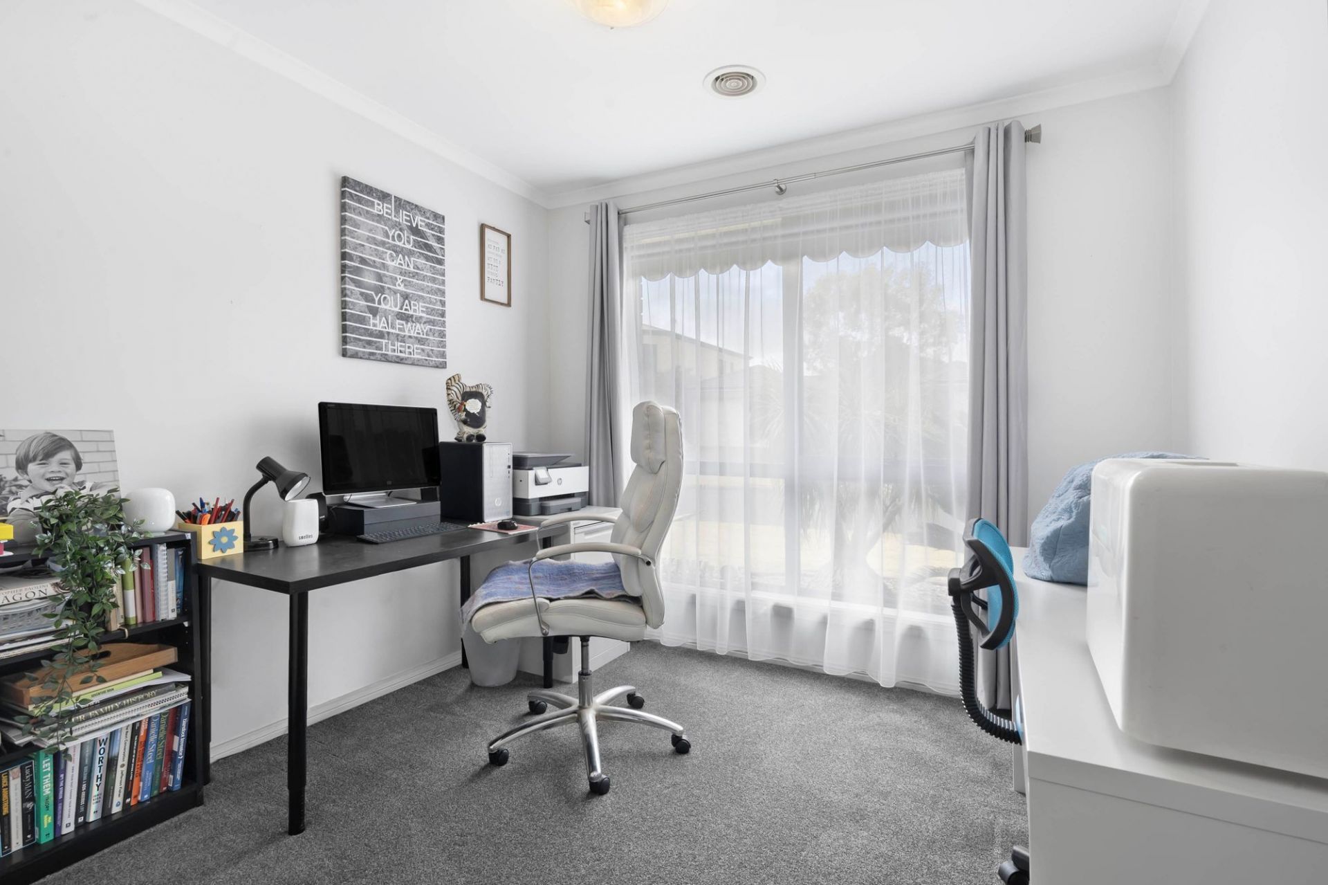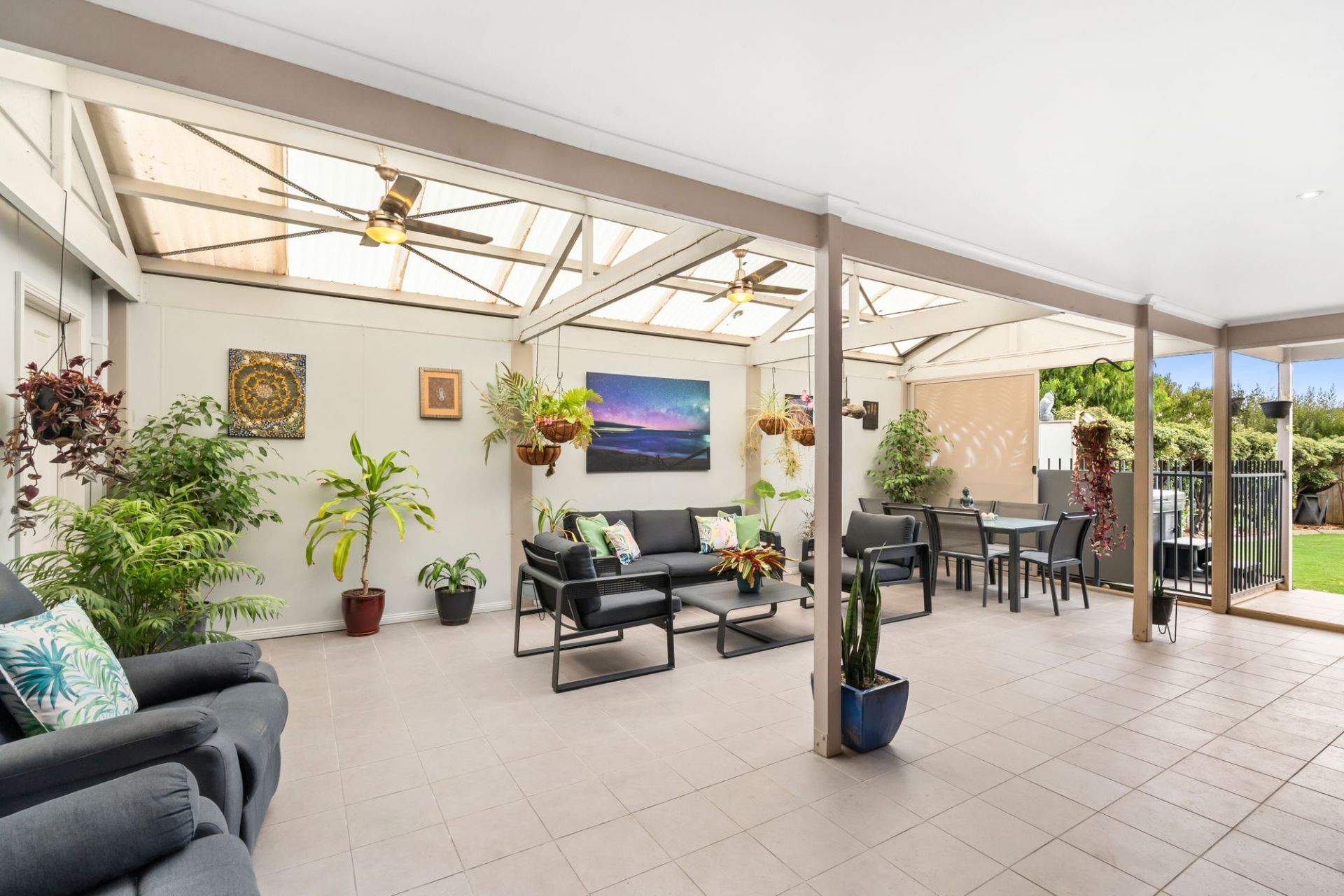 Sliding doors extend the interior outward to a fantastic undercover alfresco, with ceiling fan, fully enclosed to function as an all-season entertaining room. Here, long lunches, milestone celebrations and relaxed evenings by the barbecue unfold with ease, framed by landscaped gardens that balance greenery with low maintenance appeal.