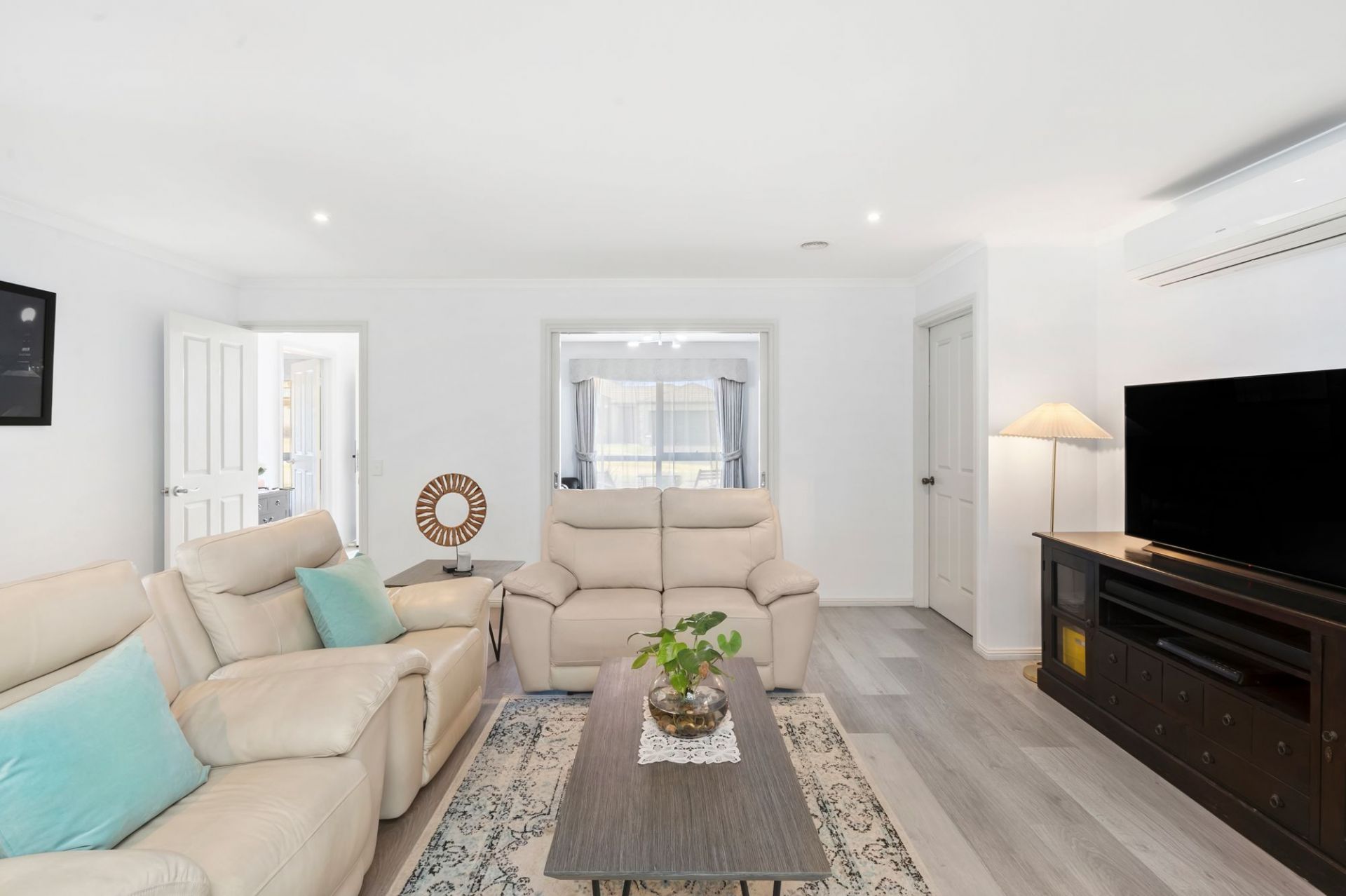 Space, flow and effortless indoor/outdoor connection define this beautifully appointed four-bedroom family residence. A home designed to support both everyday ease and memorable gathering. From the moment you enter through the front door with biometric integrated lock and Crimsafe screen, you step onto luxury vinyl plank floors, where the soft natural light and calming neutral palette create an environment that feels fresh, cohesive and immediately liveable.