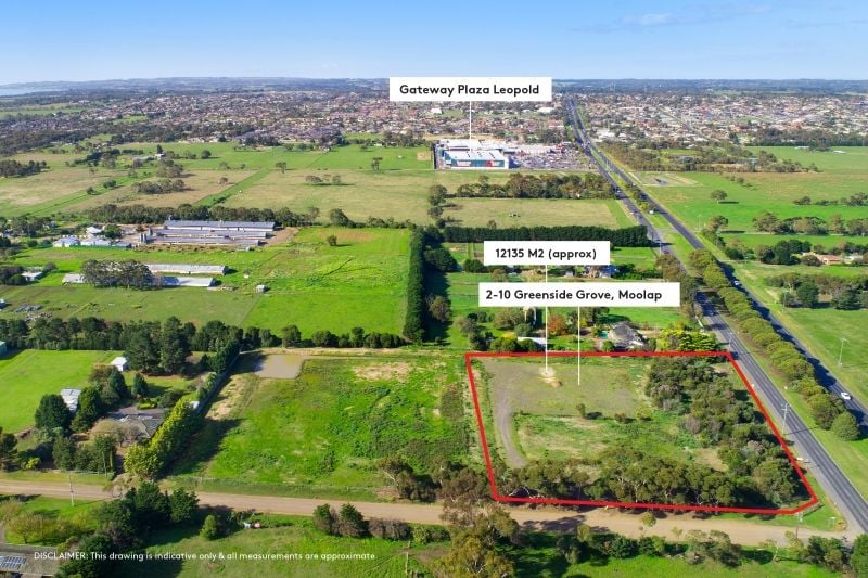 Don't miss this opportunity to secure a prime corner block of 12,135m2 (approx.) in Moolap! Positioned close enough to life's amenities, but far enough away from the hustle and bustle of daily life, this parcel of land offers you the best of both worlds. Build your dream family home on sprawling acreage and relish in the perks of country living, or attain a lifestyle property close to the Geelong CBD (STCA). Established trees provide privacy from the Bellarine Highway and the 87.3m (approx.) street front of Greenside Grove. Local schools, public transport, and Leopold's Gateway Plaza are all a heartbeat away. Inspect ASAP!