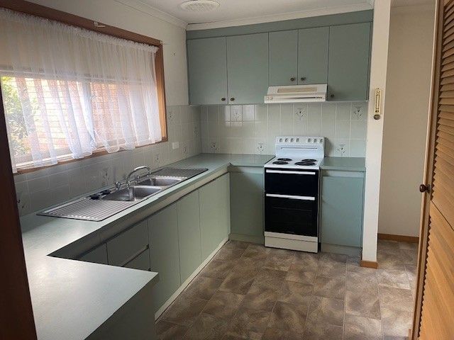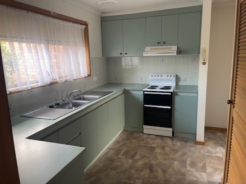 The kitchen has an electric upright stove and plenty of bench and cupboards space.