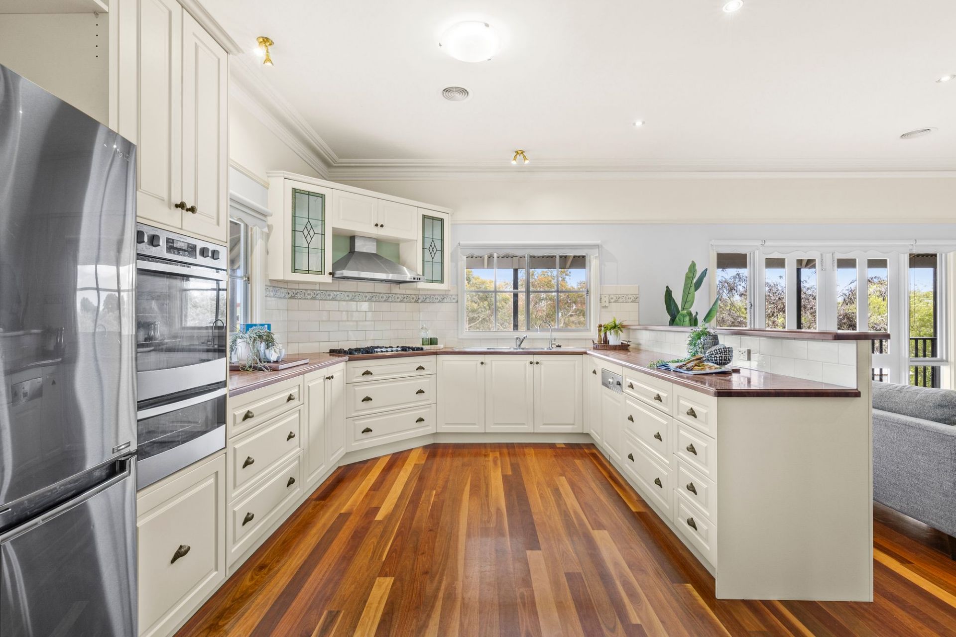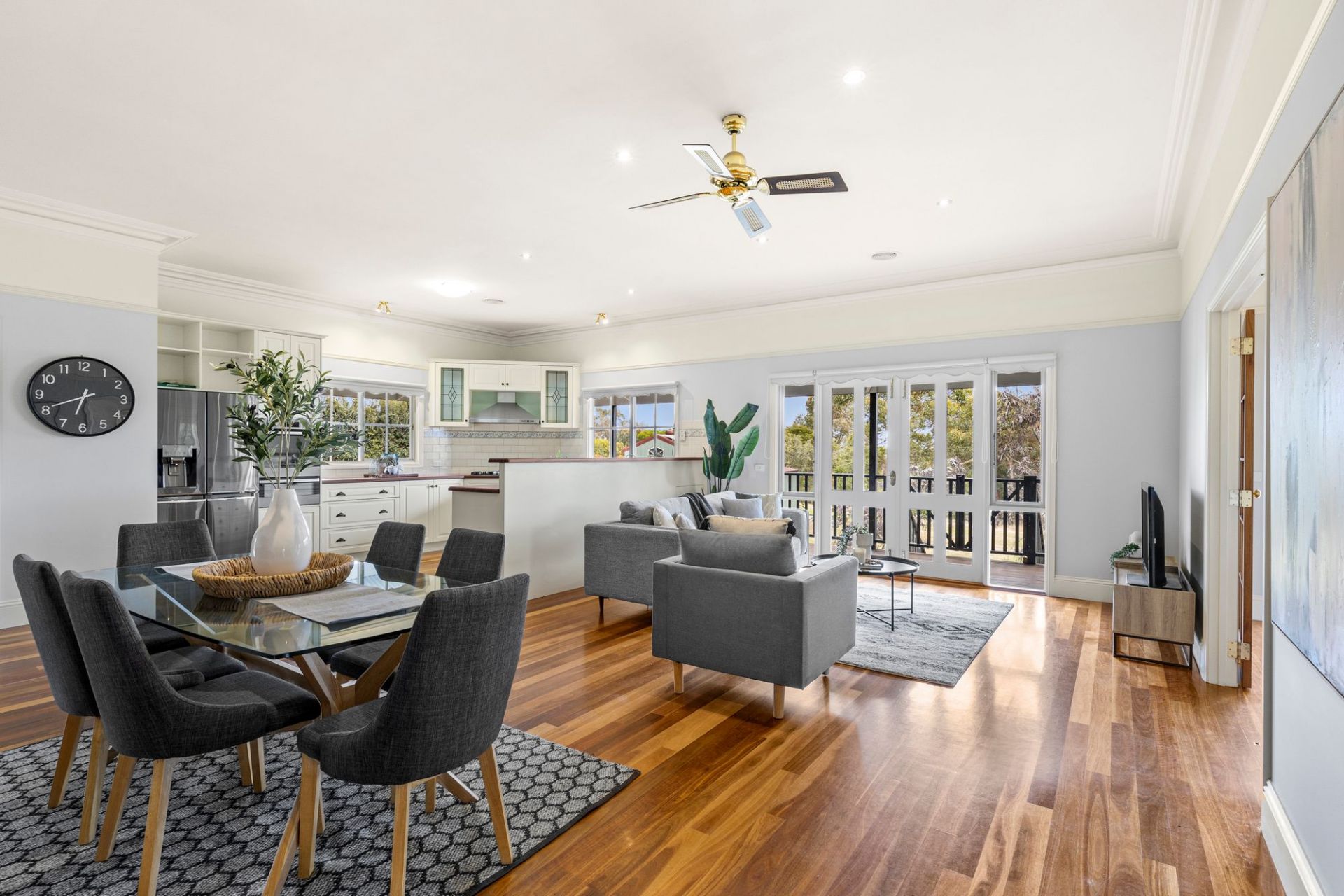 The spacious home exudes a timeless charm with its expansive wraparound timber deck, high ceilings, and French doors. The heart of the home is the central kitchen with modern appliances and walk-in pantry. In the same open plan space, the living and dining areas have a casual elegance and lead through glazed French doors to the formal lounge. Invite the outdoors in with glass sliding doors and more French doors enabling access to the veranda from multiple points.