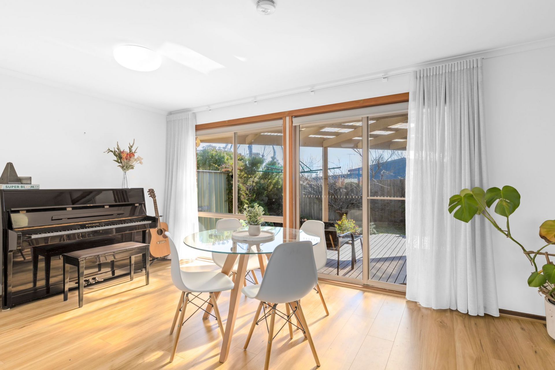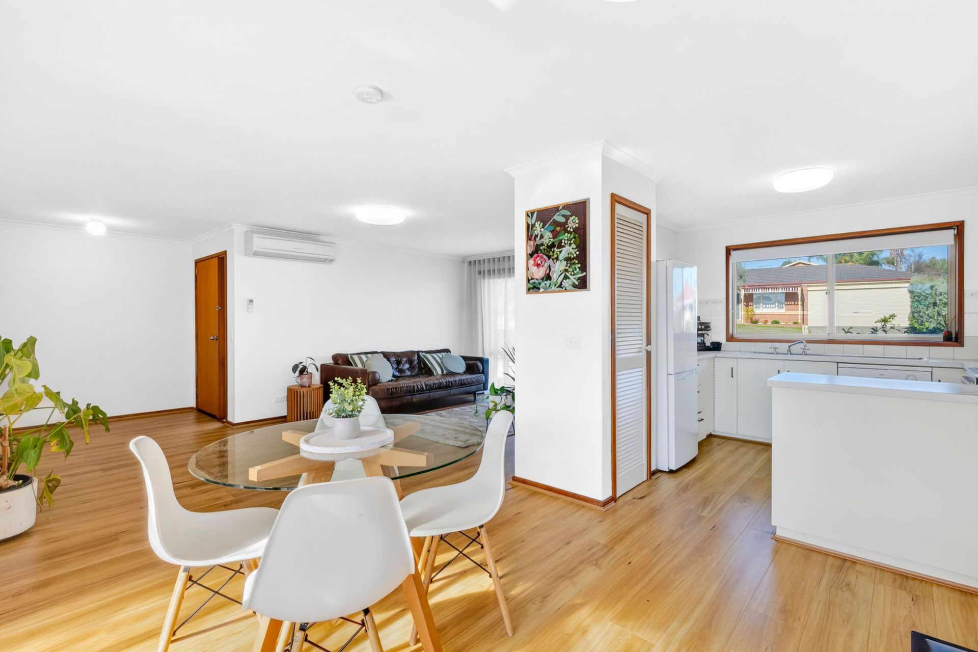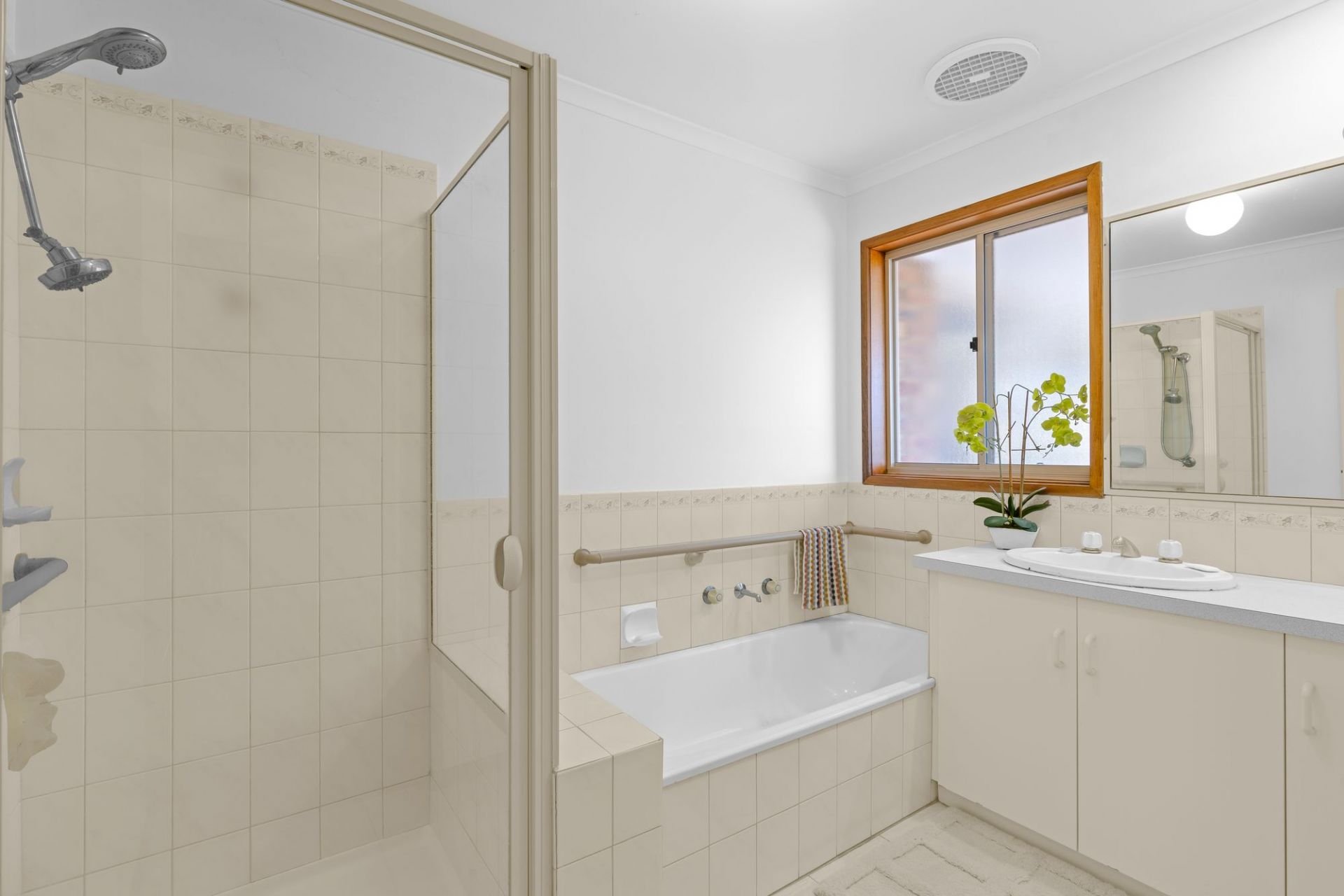 Two serene bedrooms, each with built-in robes, share a light and fresh bathroom with shower, bath, and separate toilet. Reverse cycle air conditioning keeps the home comfortable in every season, while 8 rooftop solar panels help keep energy costs down.