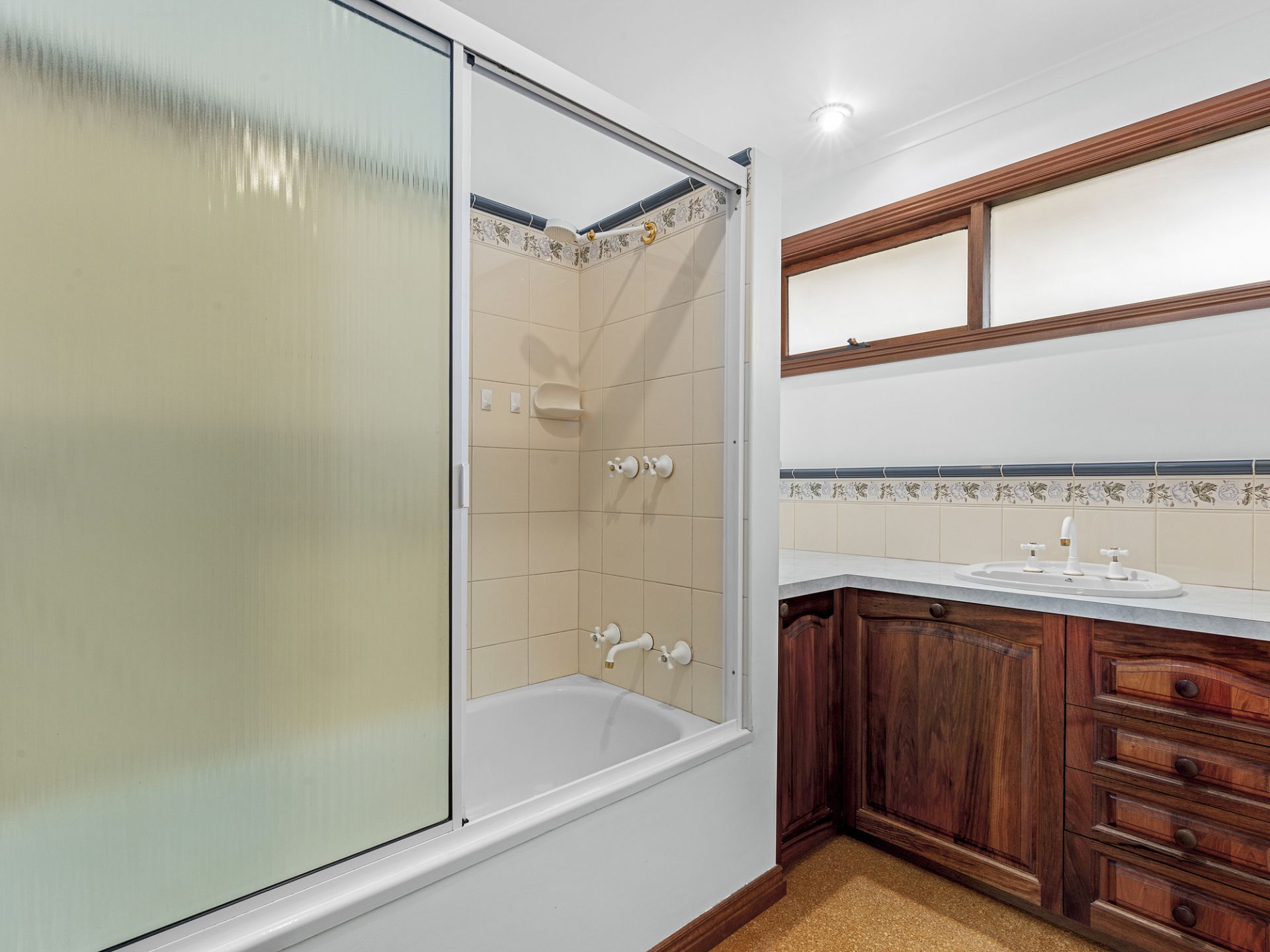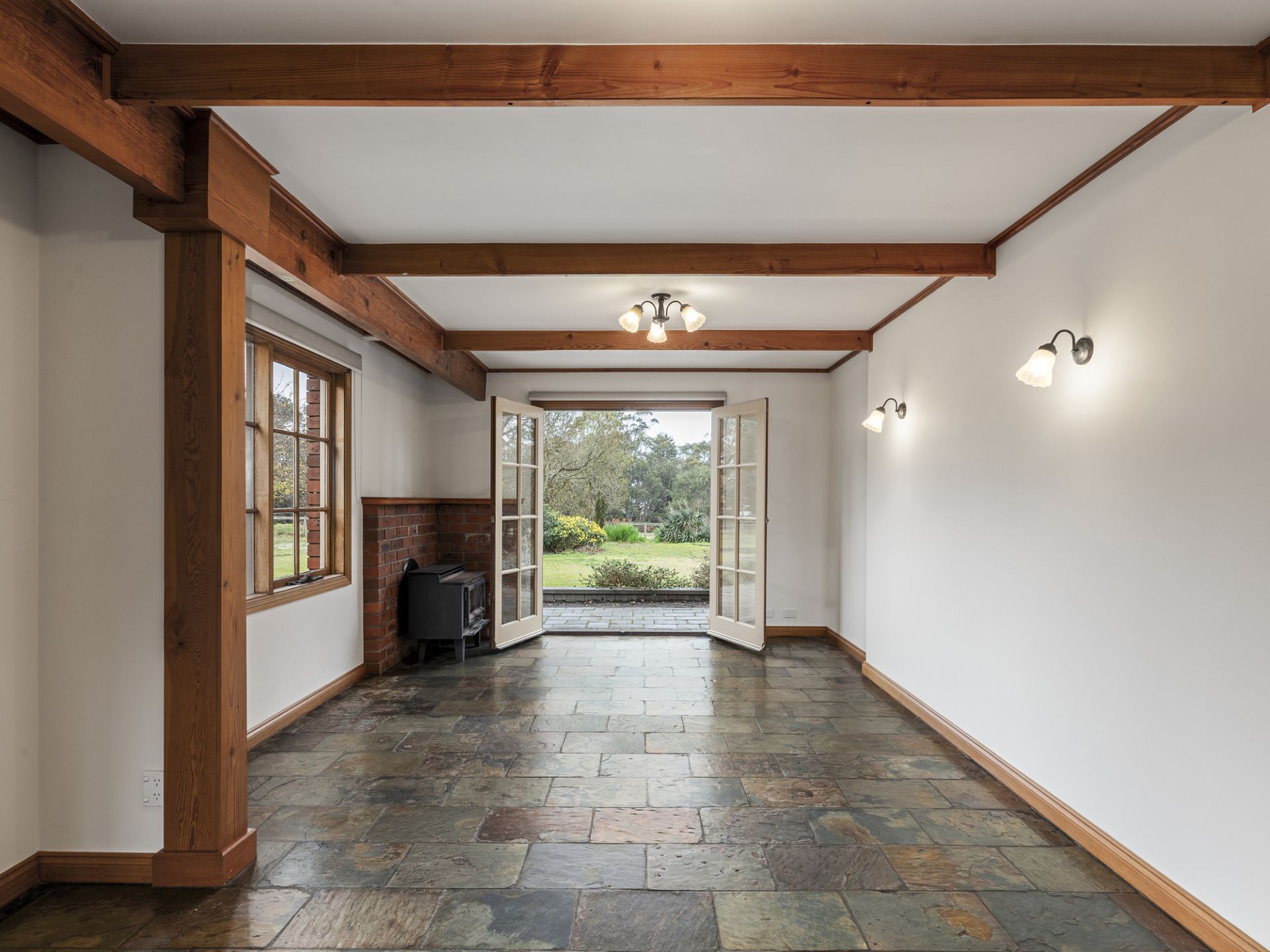 The main residence underwent a major reconstruction in 1980, showcasing timeless craftsmanship and rich timber features. Cedar doors, windows and panelling, large exposed Oregon beams, and Blackwood cabinetry bring a warmth and individuality rarely found today. Panel doors in Cherry Oak and recycled timber, stained glass windows, rustic pine internal walls, and a combination of Indian slate and Tasmanian Oak flooring add to the home’s character.