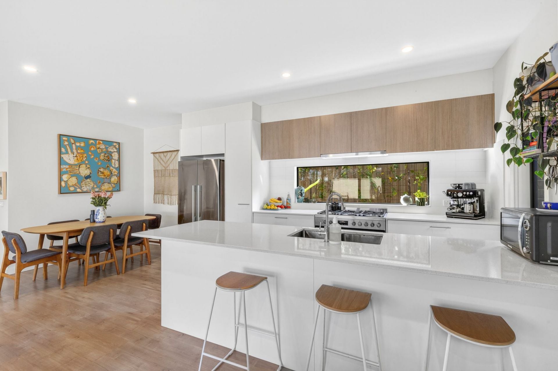 Step inside and feel the calm. The warm engineered timber floors, sun-drenched interiors, and a breezy neutral palette set a relaxed yet sophisticated tone. The front study, bathed in northern light, makes working from home a pleasure, while the open-plan kitchen, dining, and living space invites conversation, laughter, and connection. Cook up a storm in the sleek, stone-topped kitchen, then slide open the doors to your sunny courtyard, perfect for morning coffee, evening wine, or weekend barbecues.