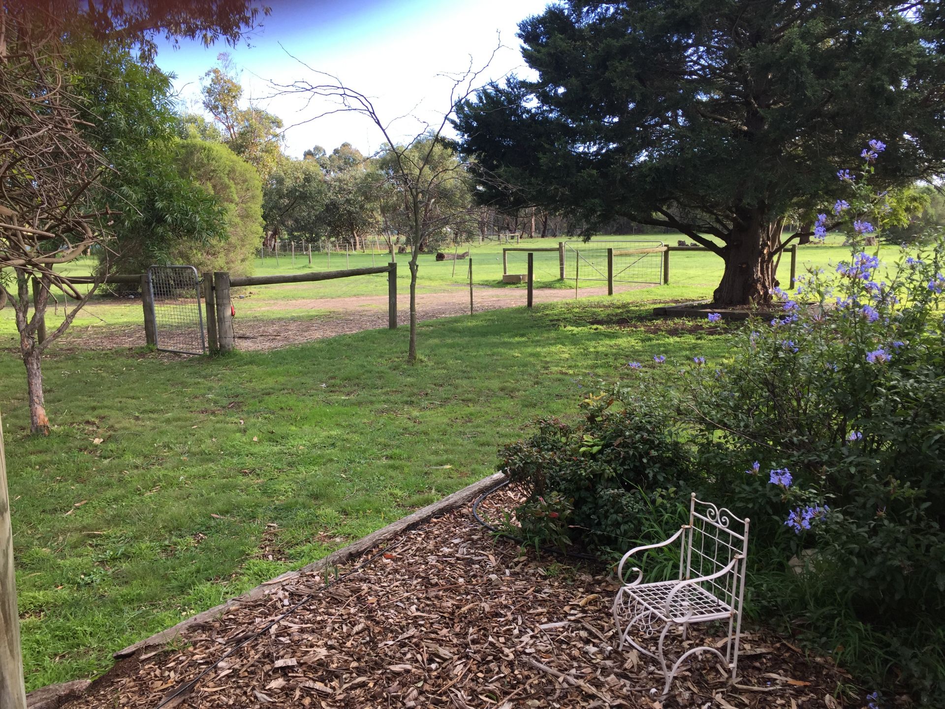 This 5 bedroom property is set on 5 acres of farm land. The master bedroom has its own ensuite and walk in robe. The four other bedrooms all come with built in robes. The open plan living, dining and kitchen is the hub of the home. The large galley kitchen is equipped with an island bench, gas cooker, electric oven, microwave and dishwasher as well as an abundance of storage in cupboards. The family room & lounge are made all the more cosy with the wood fires. The family bathroom has a traditional claw foot bath. The property consists of 2 outdoor entertaining areas, 3 paddocks with electric fencing, a tac room, double carport, carport to house horse float and games room or workshop. This property has something for everyone. Pets and horses allowed.