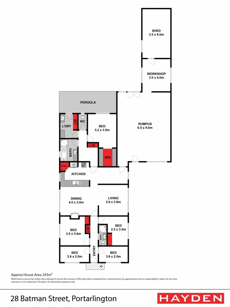 With the commuter ferry operating daily to Melbourne, picturesque Portarlington is fast becoming the coveted coastal destination for those wanting the best of both worlds; ie the ability to work in the city but also enjoy a highly desirable coastal lifestyle and 28 Batman Street offers this and much more. For those looking for an investment, the large 736 sqm allotment is loaded with potential to renovate, rebuild or develop with the opportunity to build two townhouses on the site (STCA). The property is ideally situated close to schools and shops and a short stroll to the waterfront with sweeping views across to the You Yangs and the Melbourne skyline. The highly acclaimed Portarlington golf club is just minutes away and the ferry terminal an easy walk. The original residence has grown over time into a 5 bedroom, 2 bathroom house and whilst some renovations have been done over the years, it would require work to transform it into a modern living space. The home consists of an open plan kitchen/living/dining which is light filled and sunny with striking timber flooring. A gas log heater ensures warmth throughout the colder months. There are five bedrooms, some with BIR and the master bedroom has easy access to the main bathroom. A converted garage provides the perfect teenage retreat with room for billiard table, gymnasium and more. Plenty of room for off street parking and a caravan, boat, and trailer can easily be accommodated with a spacious and secure backyard. This property has huge development potential and it won’t take long for the astute buyer to capitalise on a perfect investment opportunity.