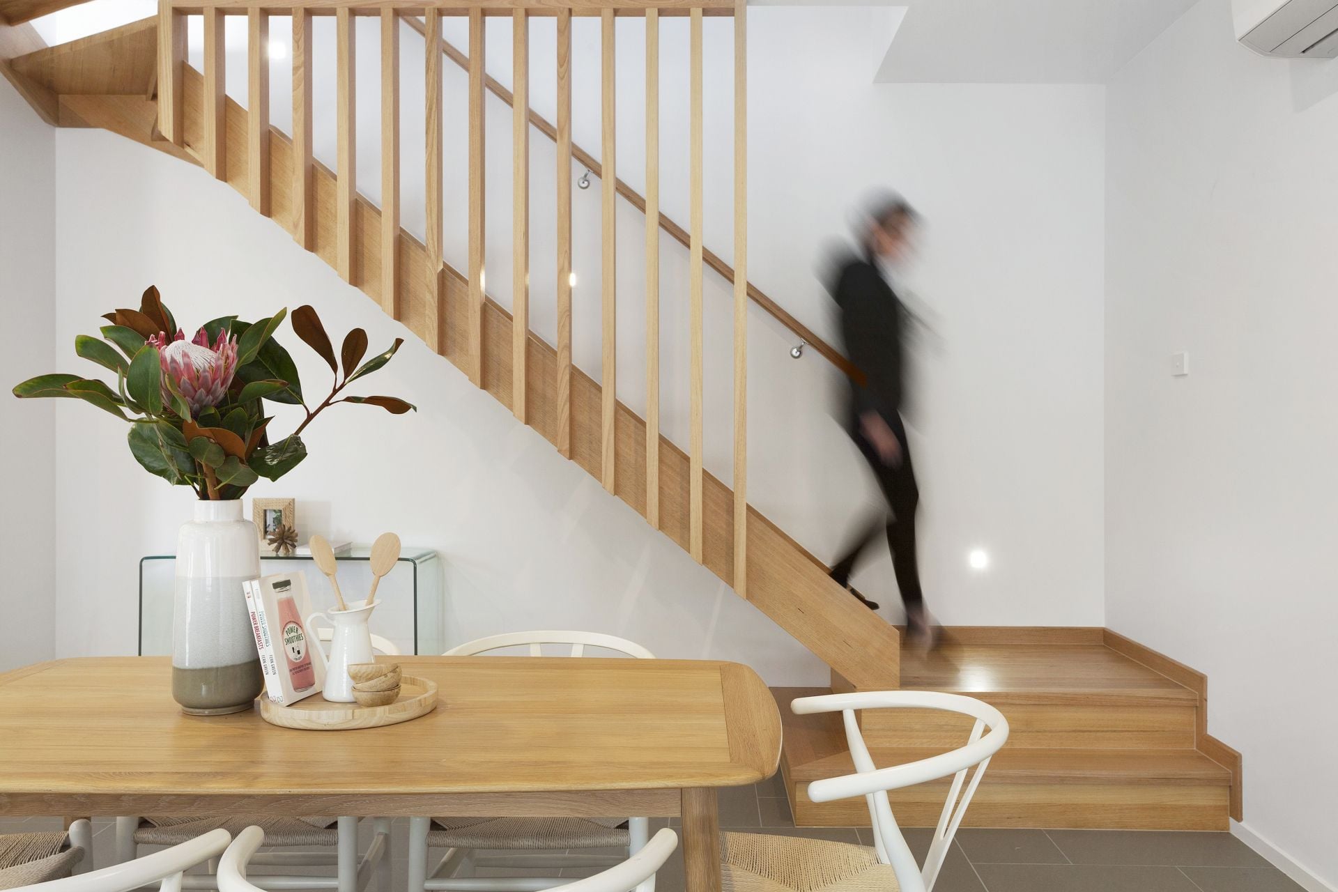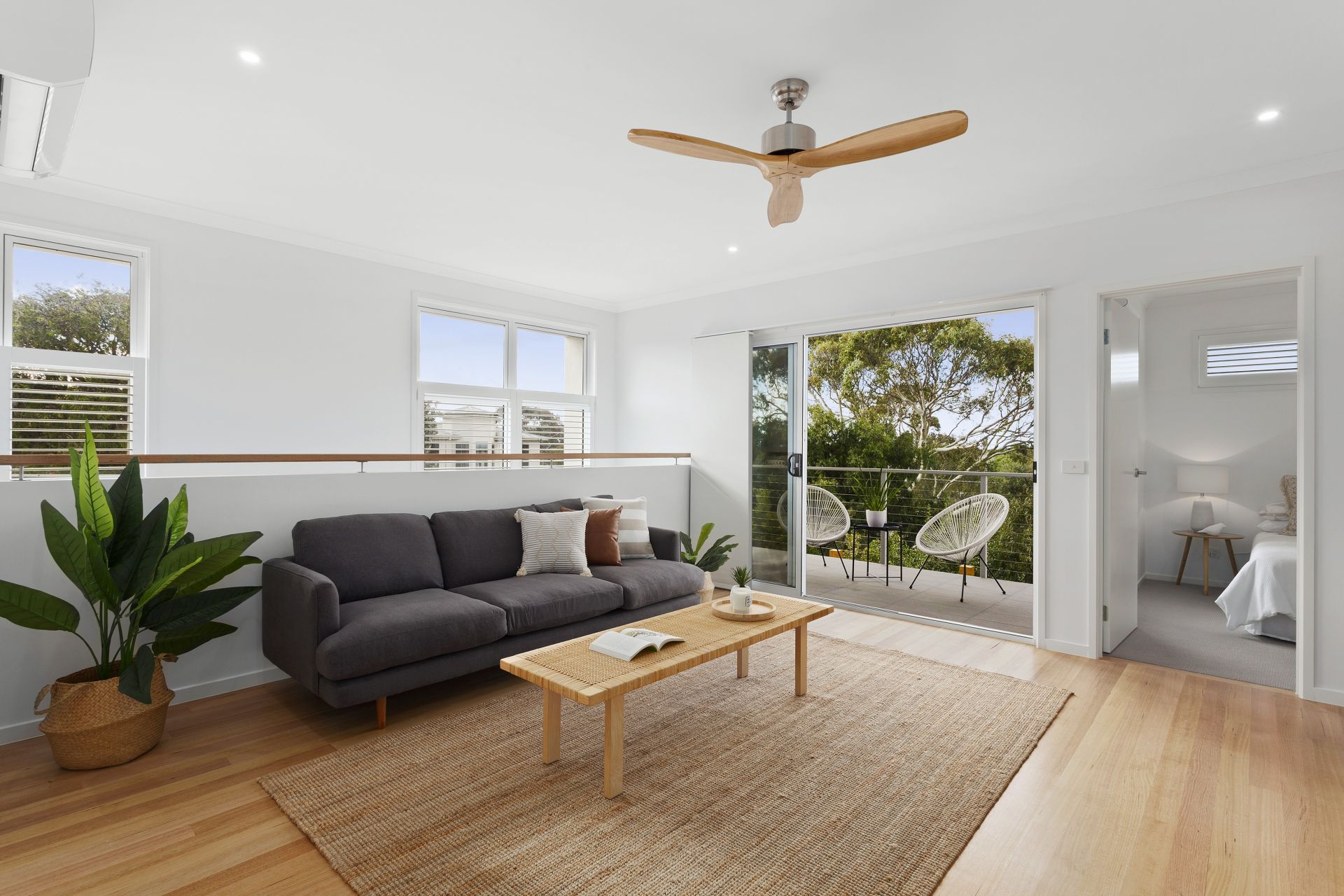 A stunning Victorian Ash hardwood staircase leads up to the second floor where you will find the additional bedrooms; a family sized bathroom with a freestanding designer style tub and separate shower. A sunny living area connects to a deck with a north-easterly aspect and picturesque coastal and ocean views. The king sized master suite features a generously sized walk-in robe and chic ensuite.