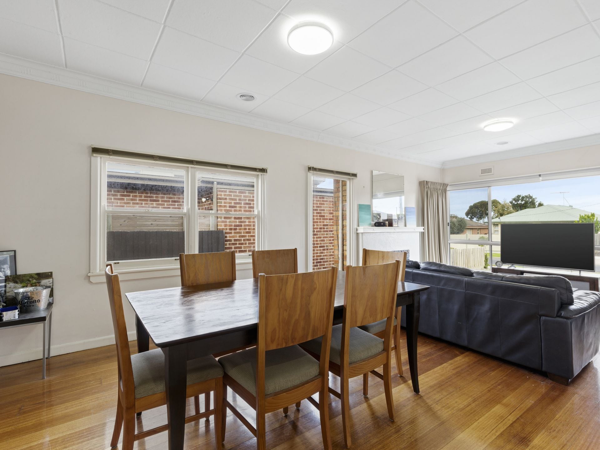 The single level floorplan presents broad appeal for those seeking a low maintenance, easy-care house and allotment. Open plan dining and living is the central hub of the home, with a gas log heater and large picture windows creating a cosy space flooded with natural light. Warm-toned hardwood timber flooring meets durable tiled surfaces in heavy traffic zones.