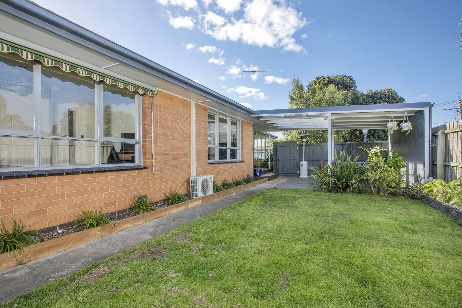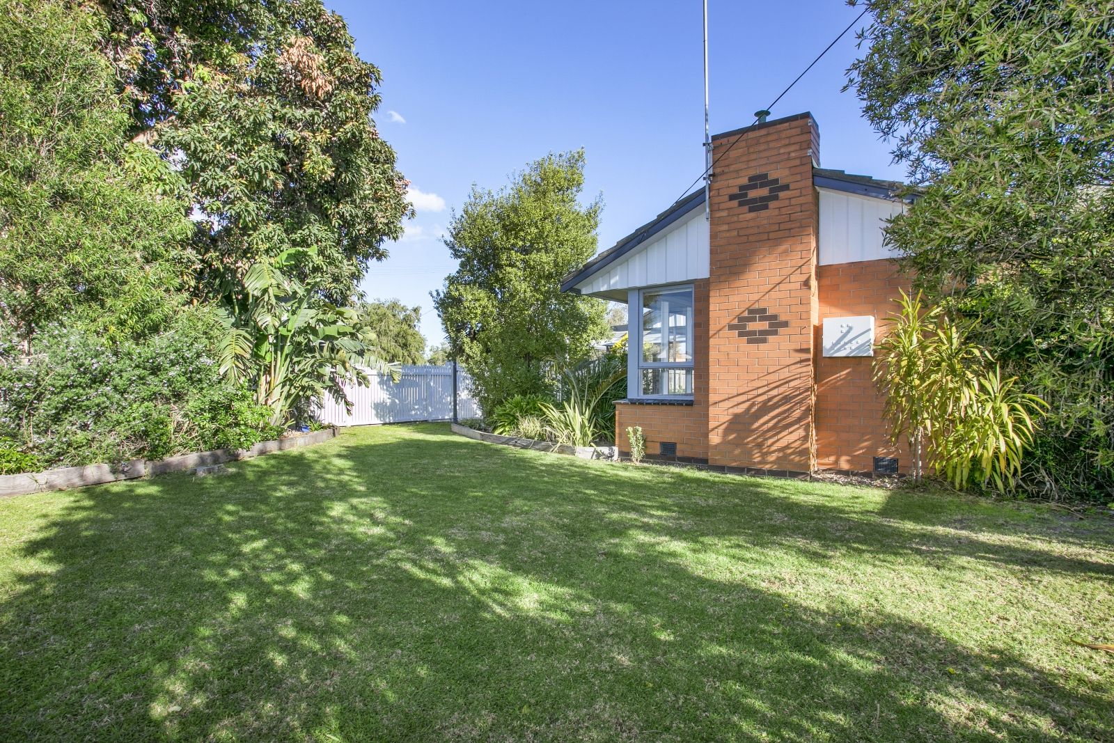 The secure front yard offers a private haven for children and pets, while a garden shed and water tank put the practical elements in place.