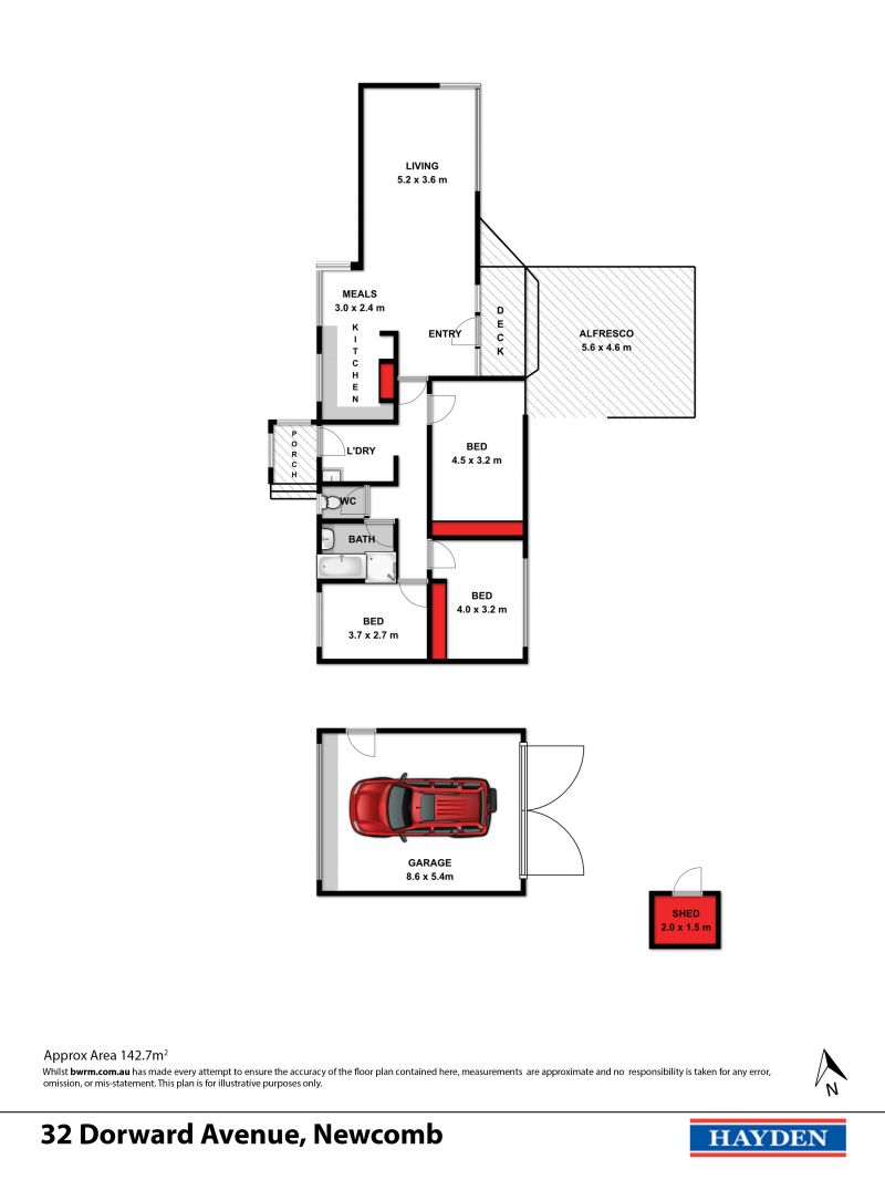 The powered lock-up shed provides secure parking for two vehicles or could be used as the ultimate tradie’s work shed – upon inspection mechanics will definitely be impressed! Vehicle access to the both the side and front of the property is a huge plus. Other features include new guttering, new downlights, new internal doors, and new security door.