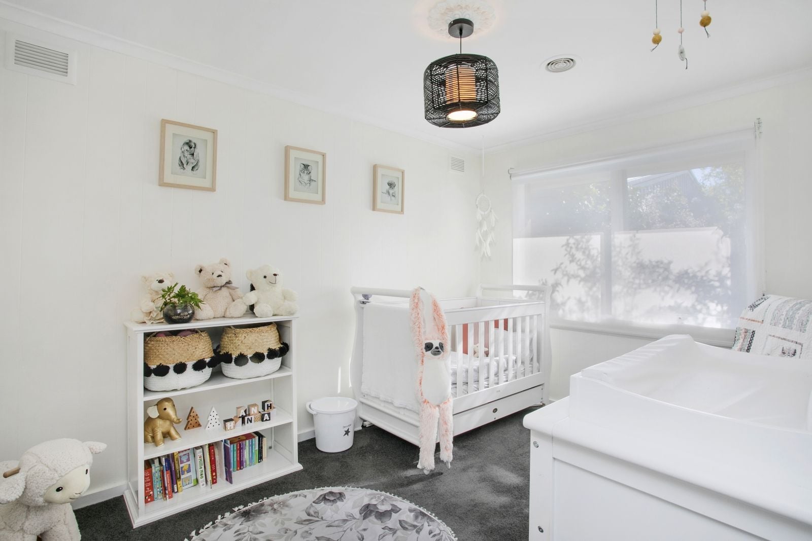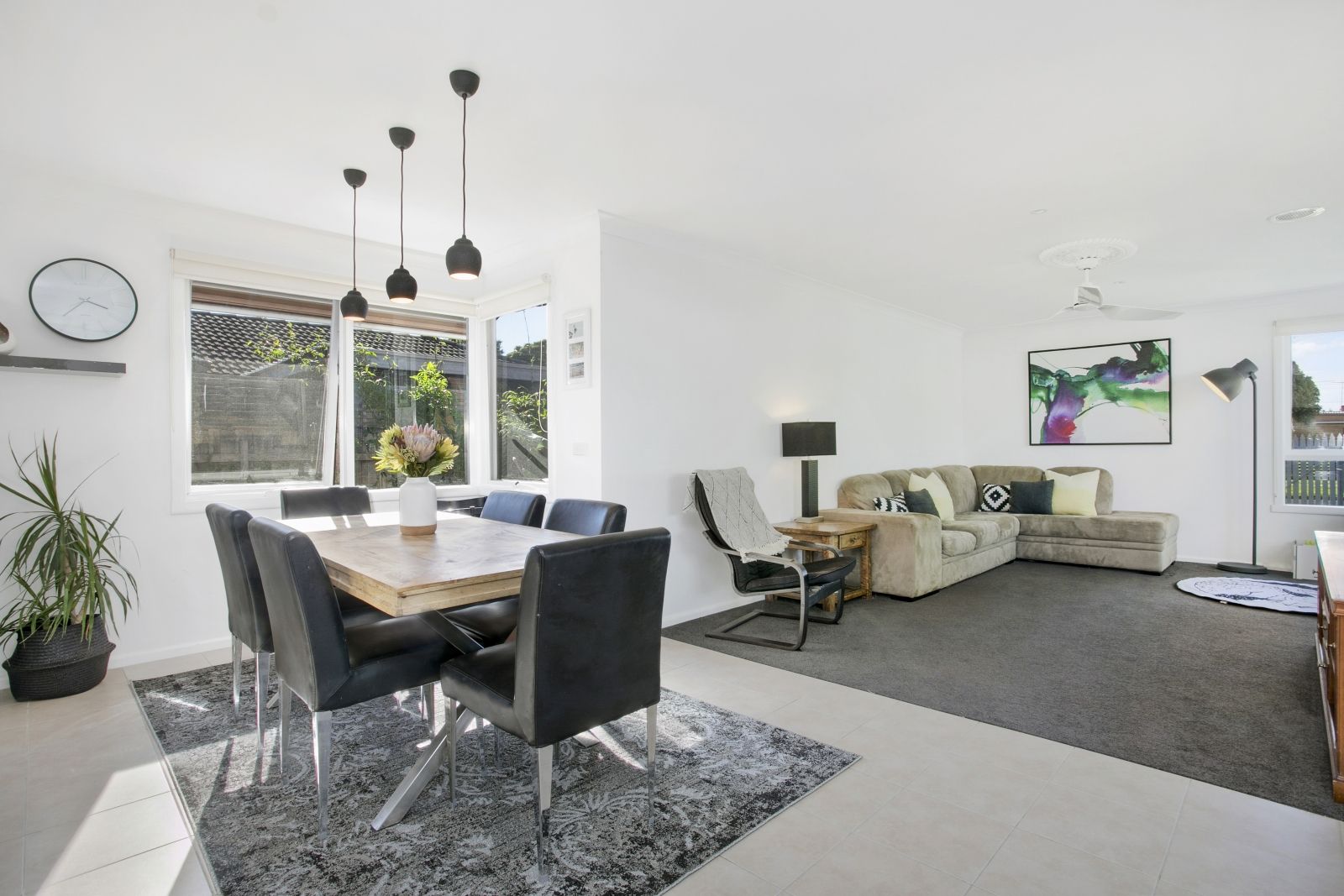 Freshly painted white walls and new carpet enhance the chic interiors, while natural light streams through every window.