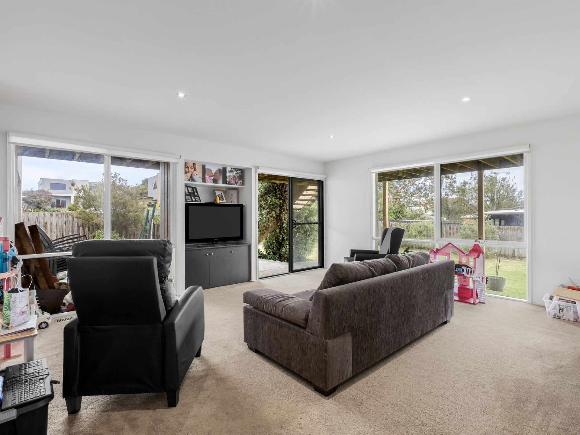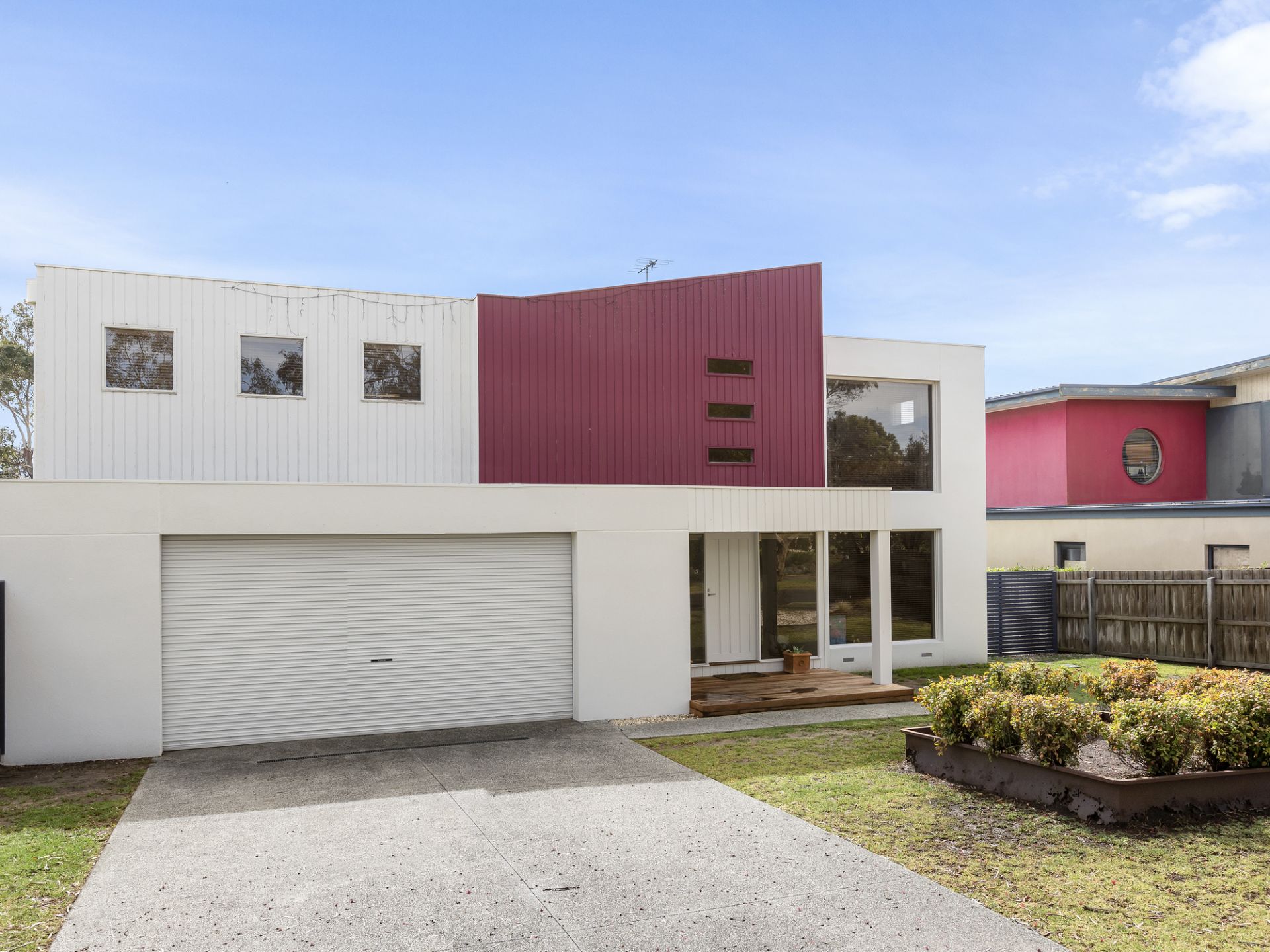 This quintessential beachside haven is thoughtfully designed with living spaces across two levels, offering families the perfect balance of connection and privacy. On the ground floor, you'll find two generous bedrooms with built-in robes, a family bathroom, and a laundry with external access. A light-filled living area, with floor-to-ceiling windows, opens seamlessly to an undercover alfresco space—ideal for a rumpus room or teenage retreat.
