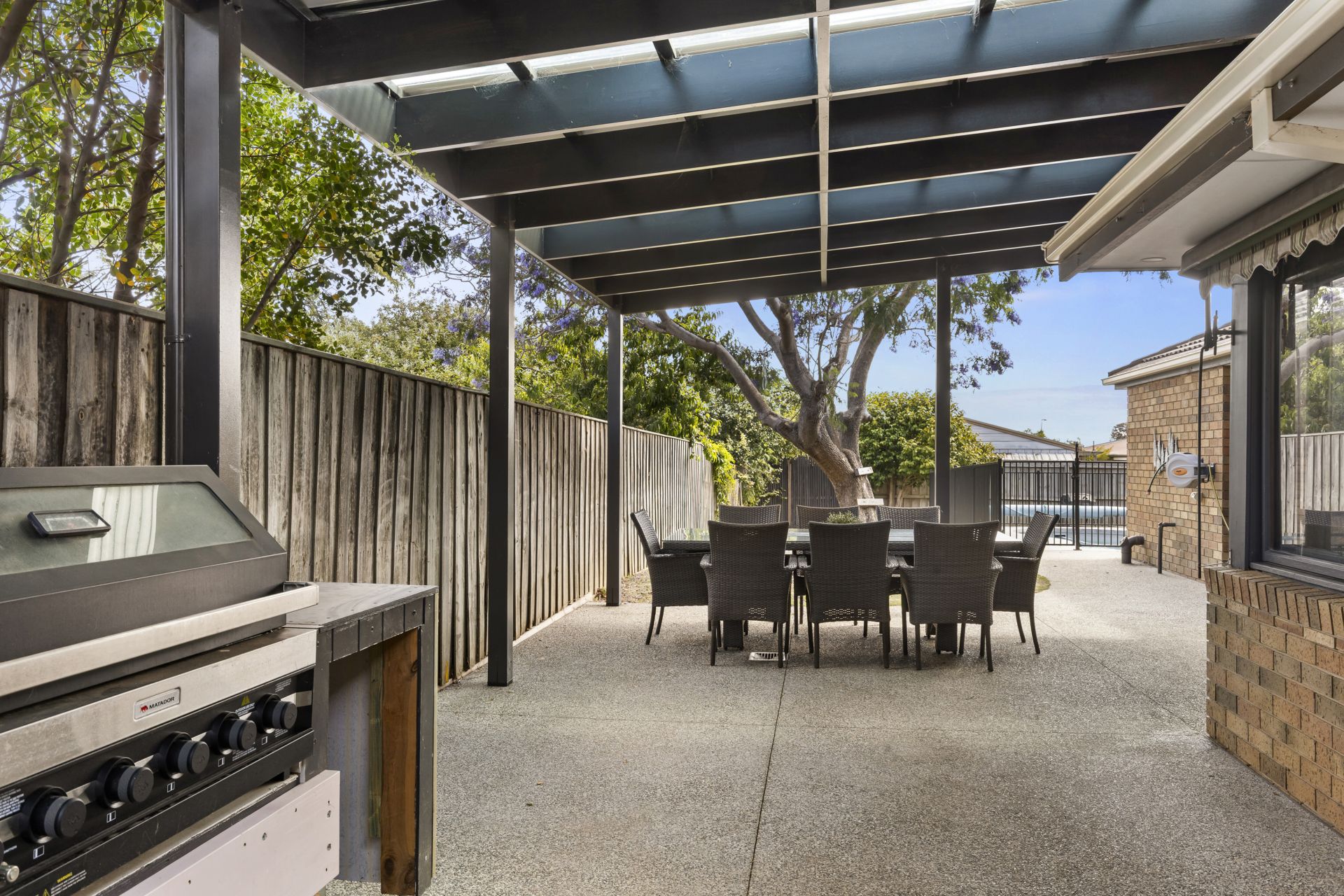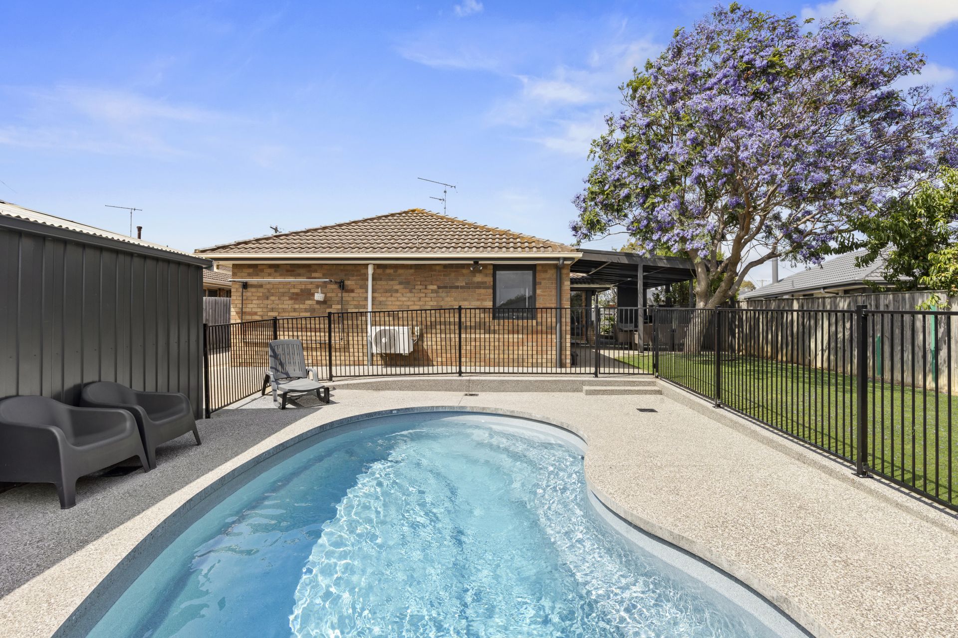 Step outside and the lifestyle shifts into something exceptional. A stunning, heated mineral swimming pool delivers resort style enjoyment with added health benefits, framed by a spacious entertaining area complete with built-in BBQ. The mature jacaranda tree provides a beautiful focal point and seasonal colour, while landscaped gardens create privacy and calm around the entire perimeter. An outdoor shower with hot and cold water makes rinsing off after beach visits or pool time a pleasure.