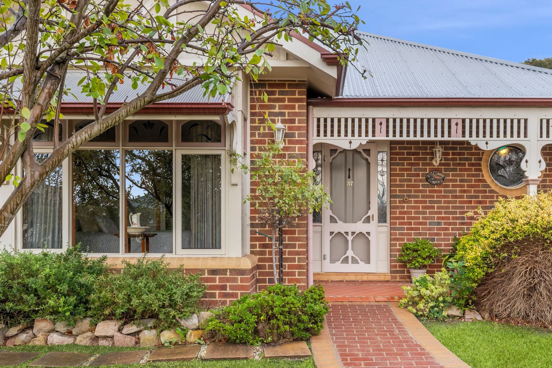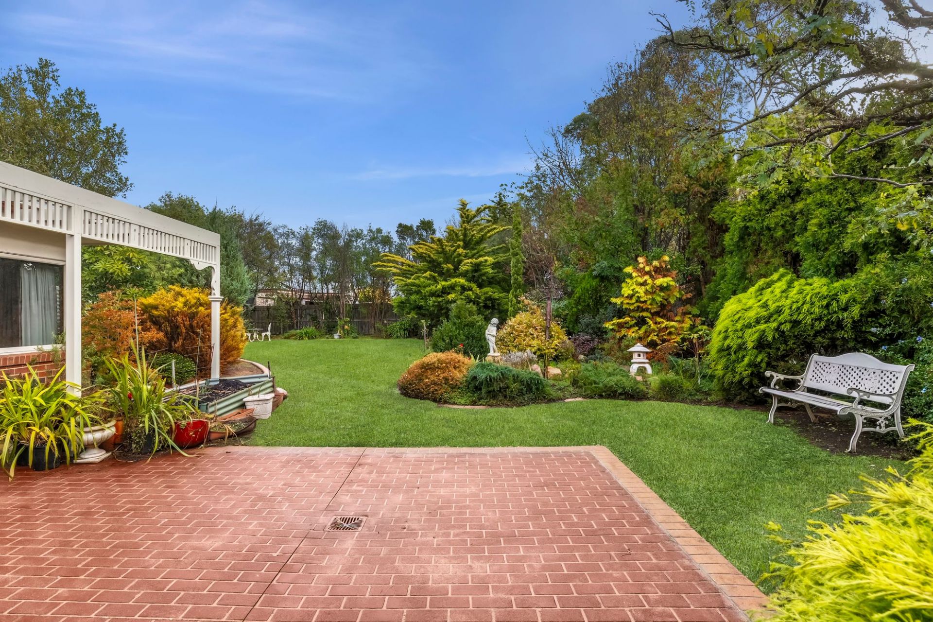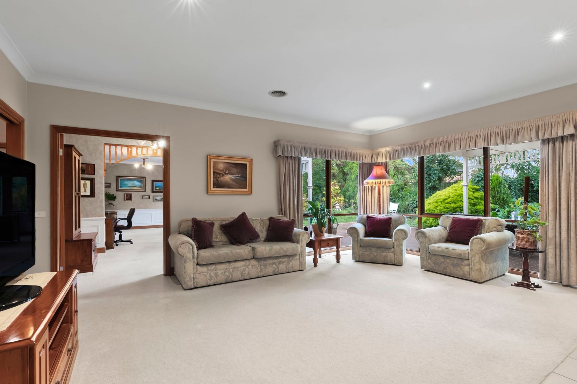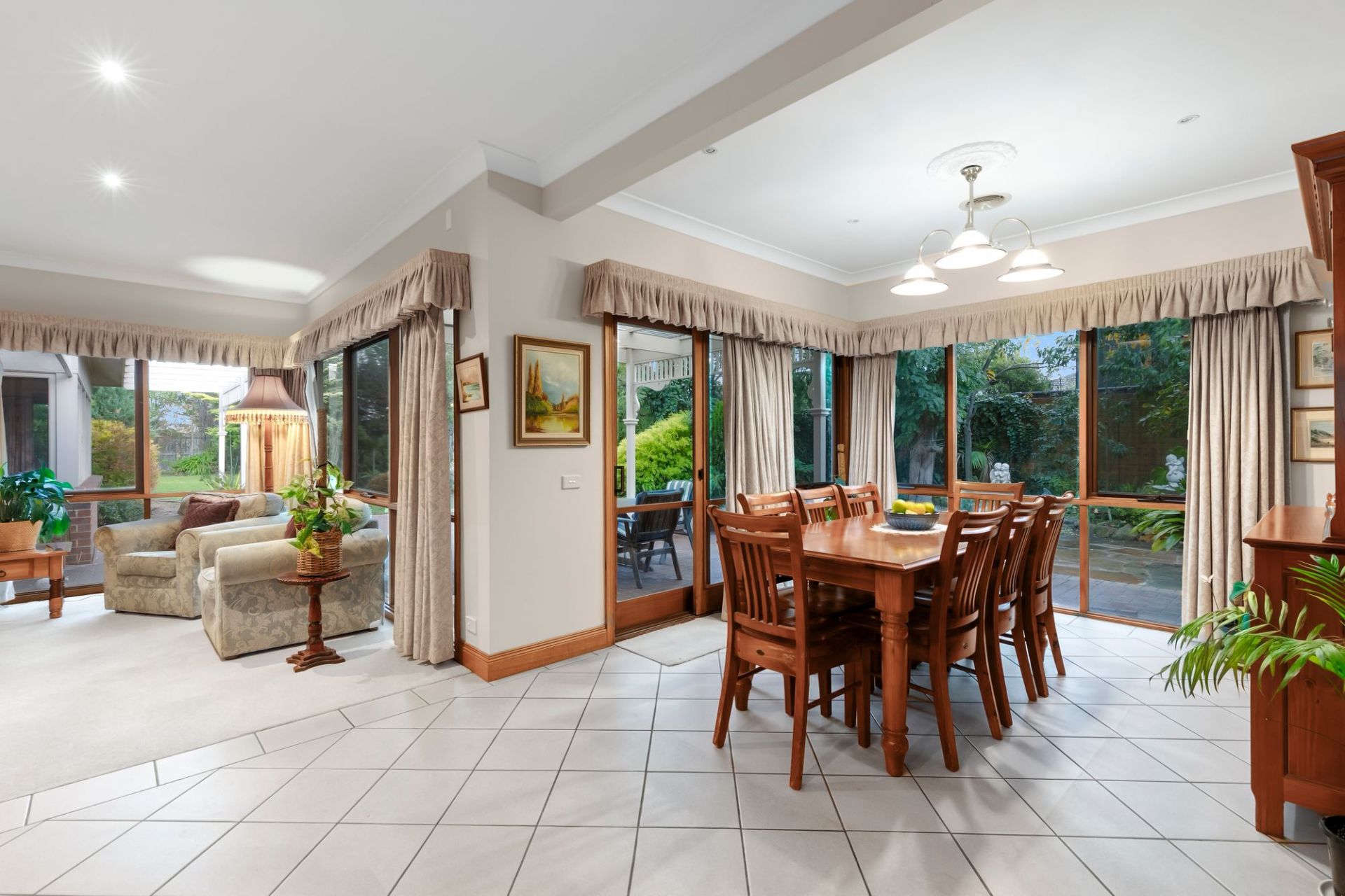 Traditional charm invites you towards lovely established gardens and deep set verandas on arrival, instantly evoking a sense of old-world charm and remarkable integrity. Hardwood-stained glass windows are framed by elegant arcs, softened by lush carpets underfoot and the ambiance of a wood fire within the formal lounge and dining area to the front of the home. An adjacent sunny north facing patio is privatised by established trees and gardens, linking you to the expansive manicured grounds that envelope the homes entirety.