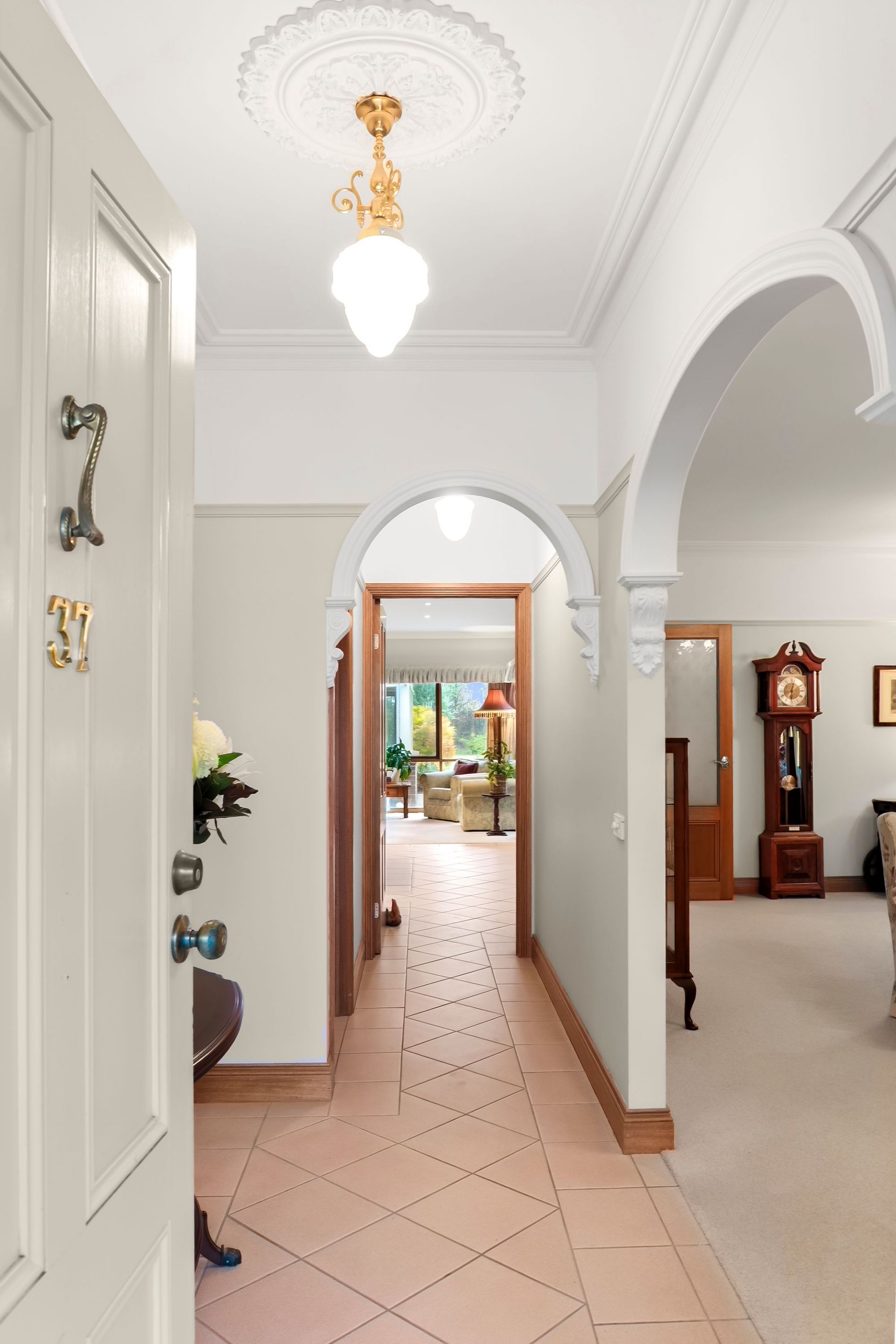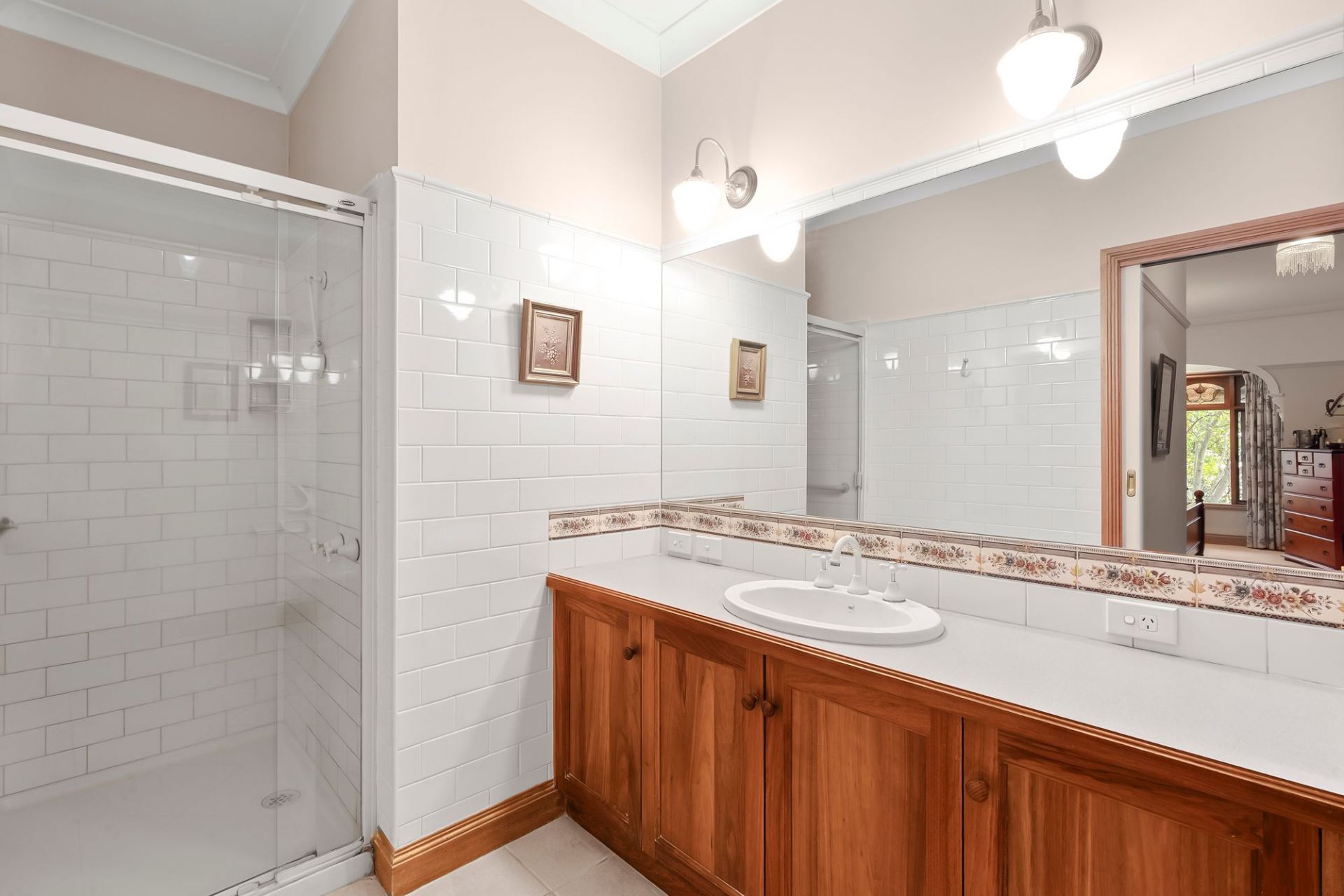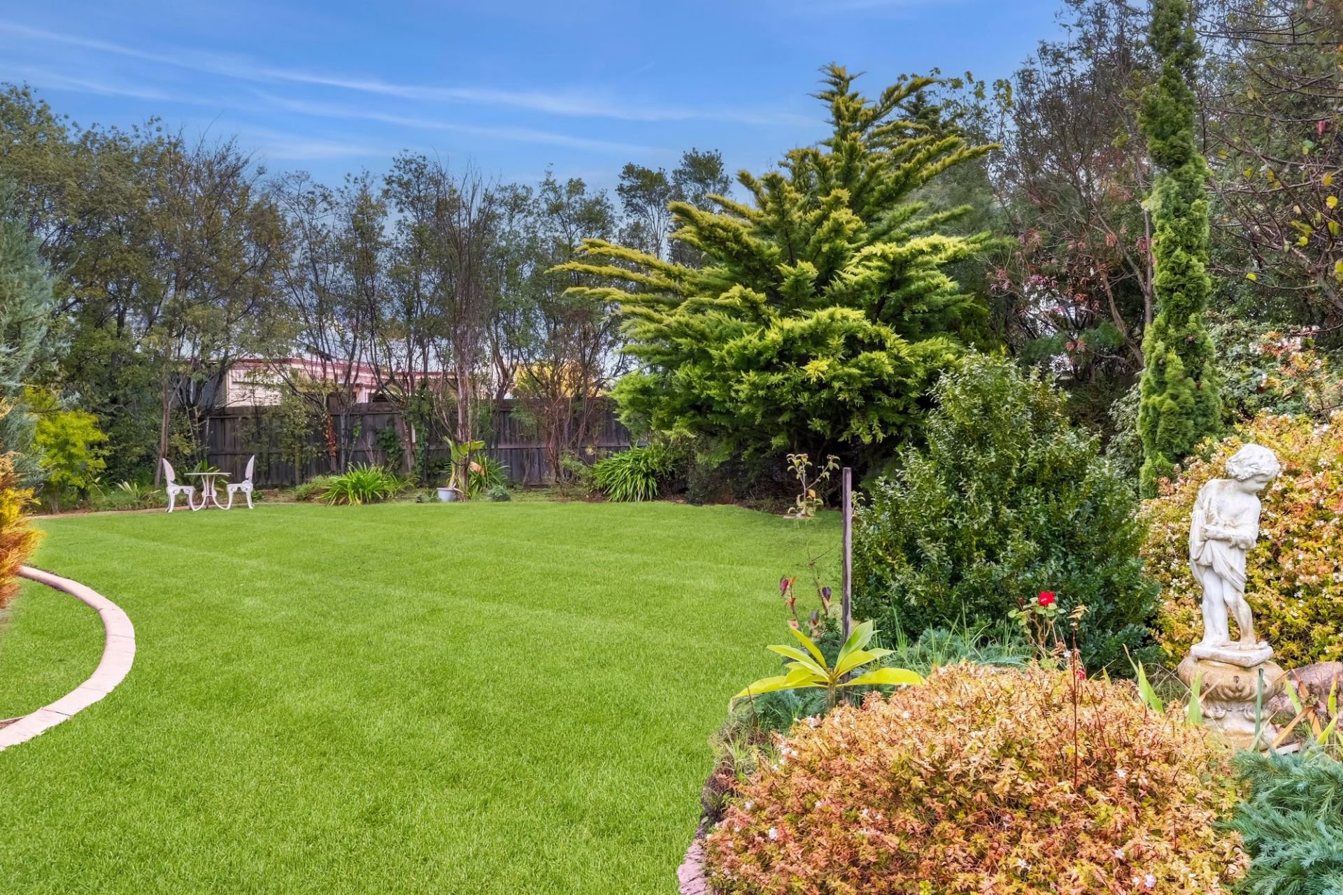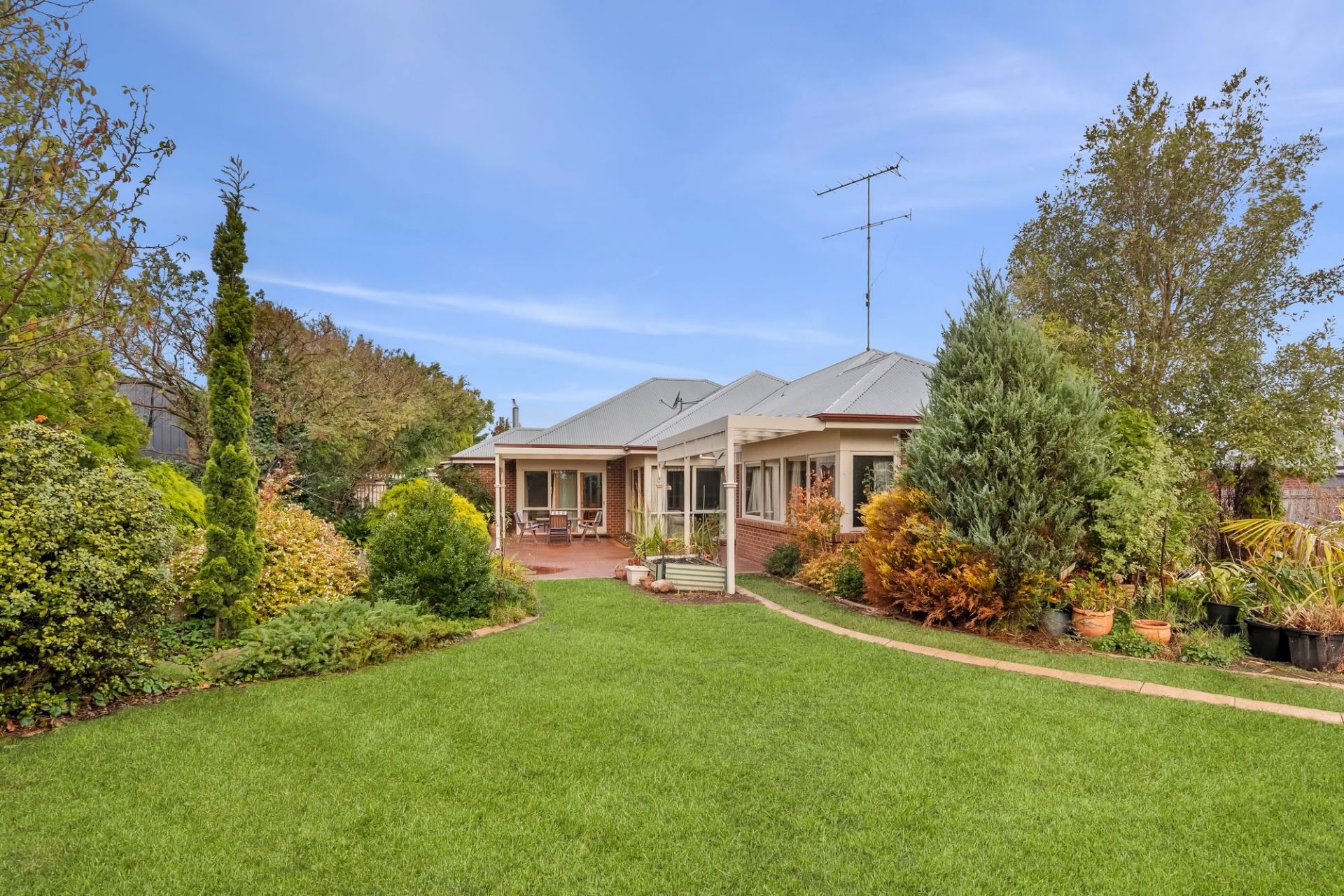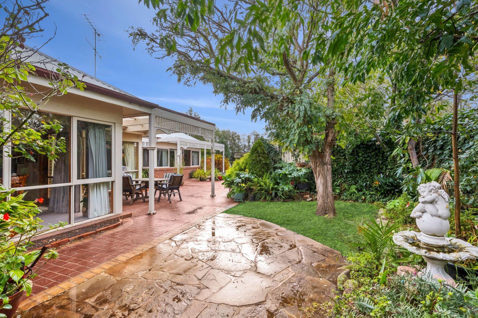 Traditional charm invites you towards lovely established gardens and deep set verandas on arrival, instantly evoking a sense of old-world charm and remarkable integrity. Hardwood-stained glass windows are framed by elegant arcs, softened by lush carpets underfoot and the ambiance of a wood fire within the formal lounge and dining area to the front of the home. An adjacent sunny north facing patio is privatised by established trees and gardens, linking you to the expansive manicured grounds that envelope the homes entirety.