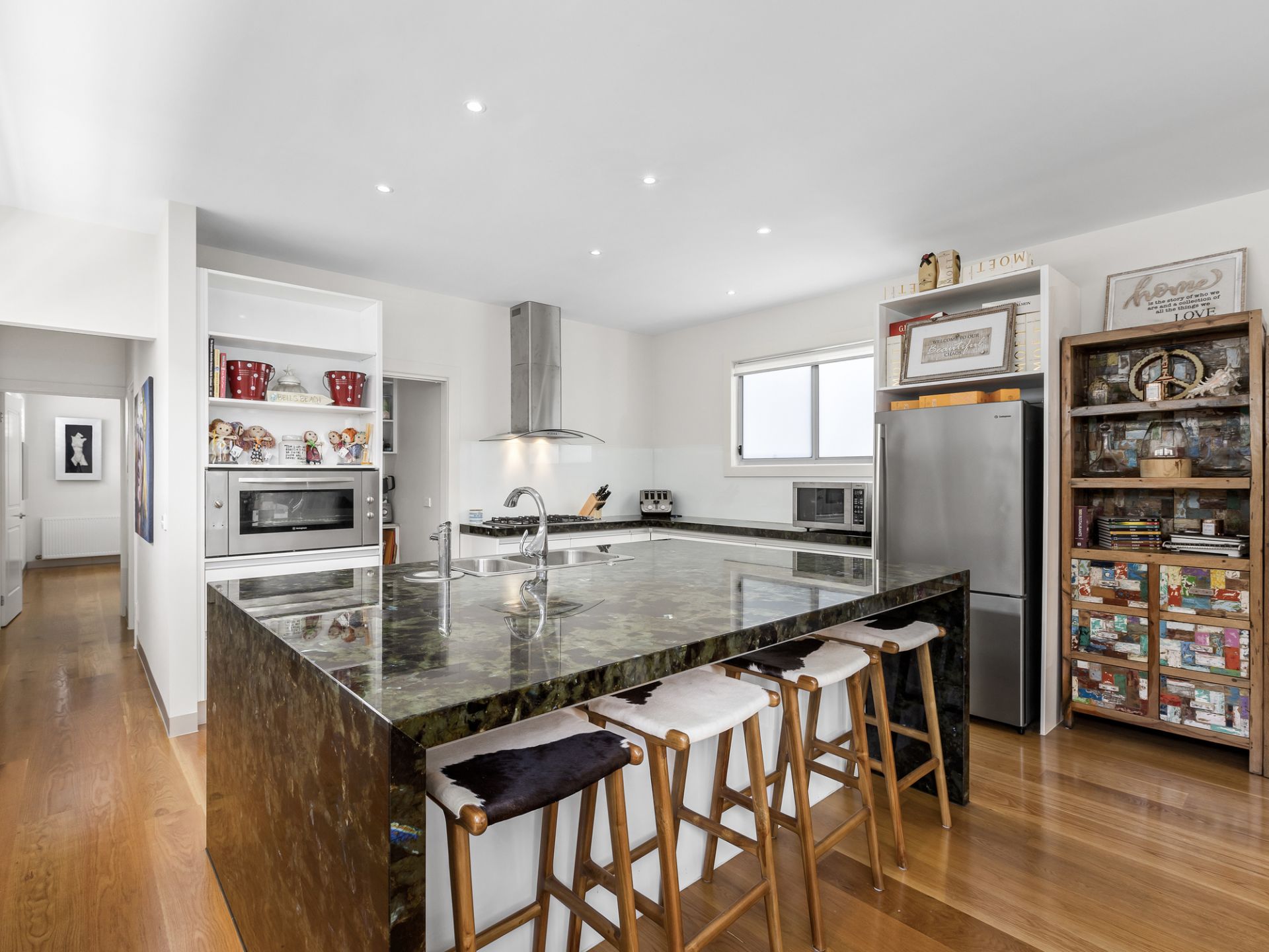 Wall-mounted hydronic heating ensures warmth in winter, while split-system cooling and the natural ocean breeze keep the home cool in summer.