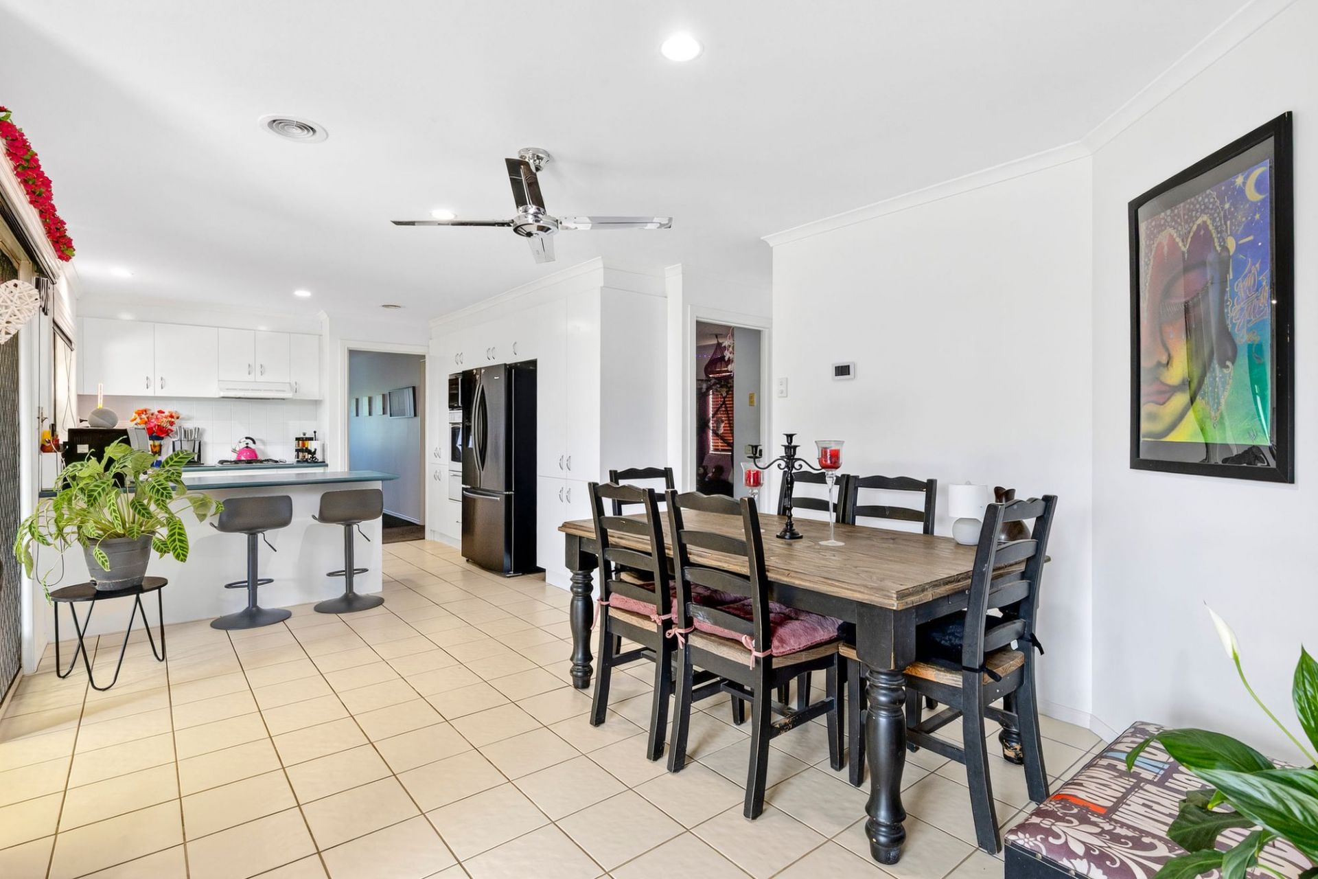Pretty, colourful front gardens create a welcoming first impression, leading to interiors filled with natural warmth and light. The open-plan kitchen, living and dining area forms the hub of the home, a relaxed space for sharing meals, quality time and memorable moments. The kitchen is equipped with a gas cooktop, wall oven, dishwasher and abundant storage, while two separate living zones ensure everyone has room to unwind. The main bedroom includes a private ensuite and walk-in robe, complemented by three additional bedrooms serviced by a central bathroom.