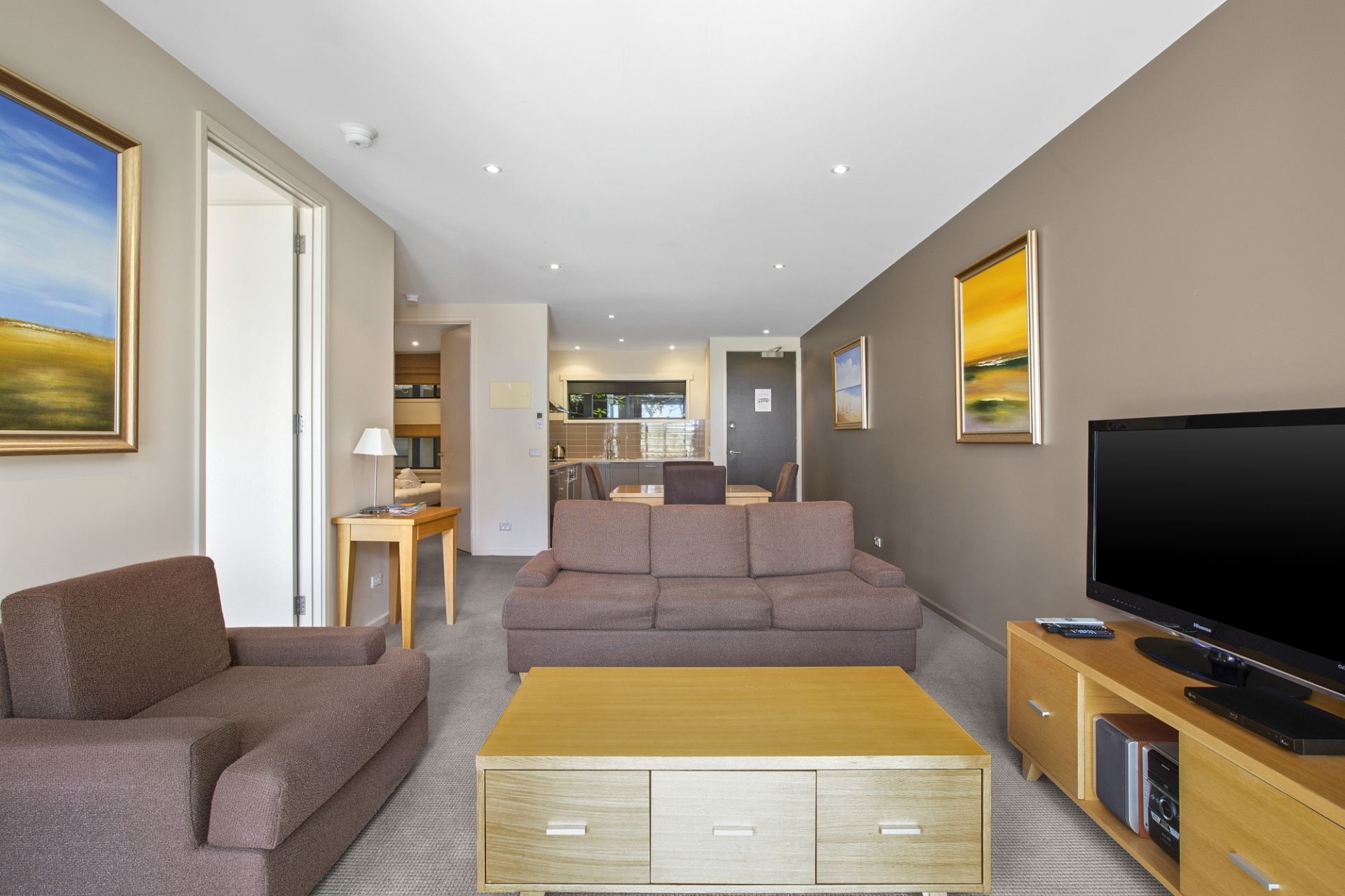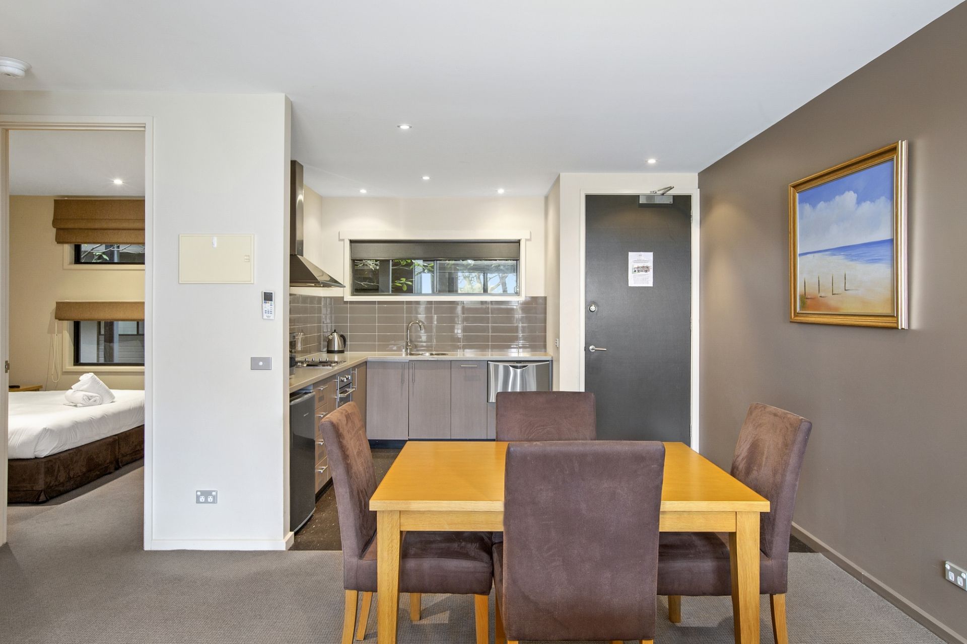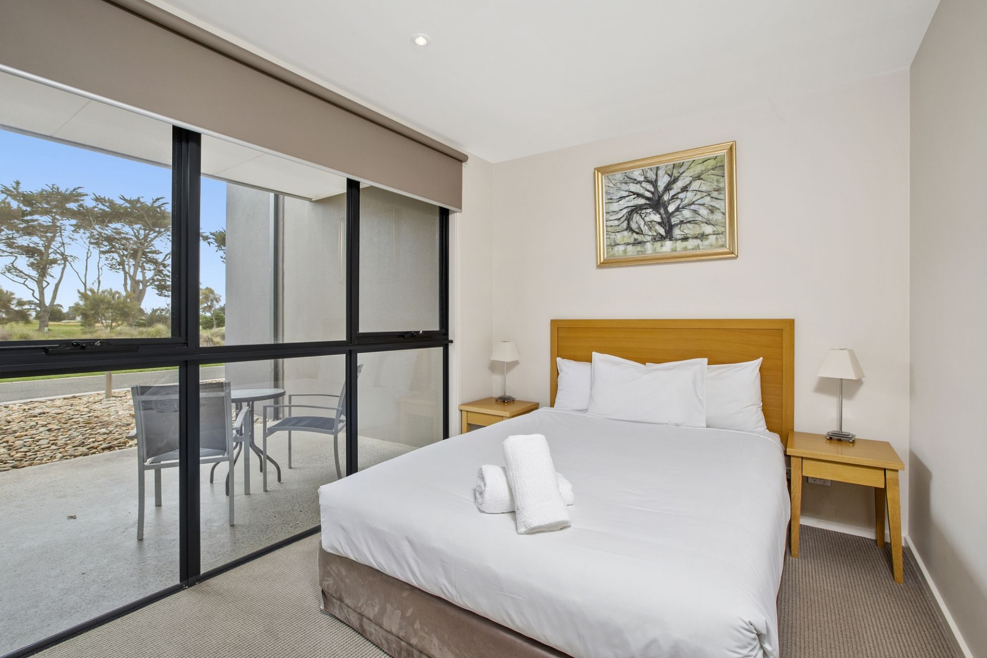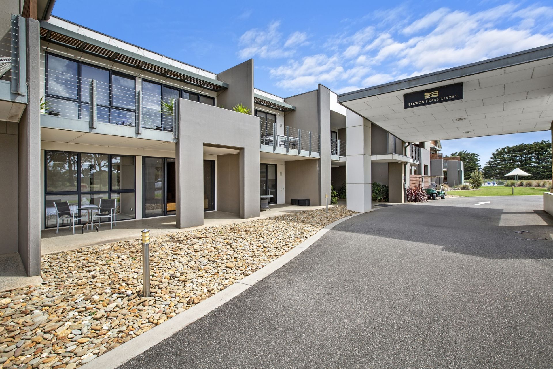 Superior two-bedroom, self-contained apartment ideal for investors, holiday makers and golf enthusiasts, that is fully-furnished on the ground level within the Barwon Heads Resort at 13th Beach. This is an opportunity for ongoing short-term rental return, however not suitable for permanent living. Nestled amongst nature and walking distance to stunning beaches and golf course. This is luxury resort living at its most comfortable! Open-plan living, dining and kitchen zone that spills out to a north-facing, undercover private terrace. Kitchenette includes a Fisher & Paykel bar fridge, oven, stove top, Fisher & Paykel dishwasher and Sharp microwave, as well as Panasonic reverse-cycle heating and cooling.