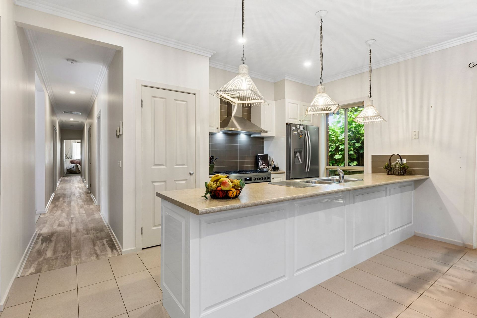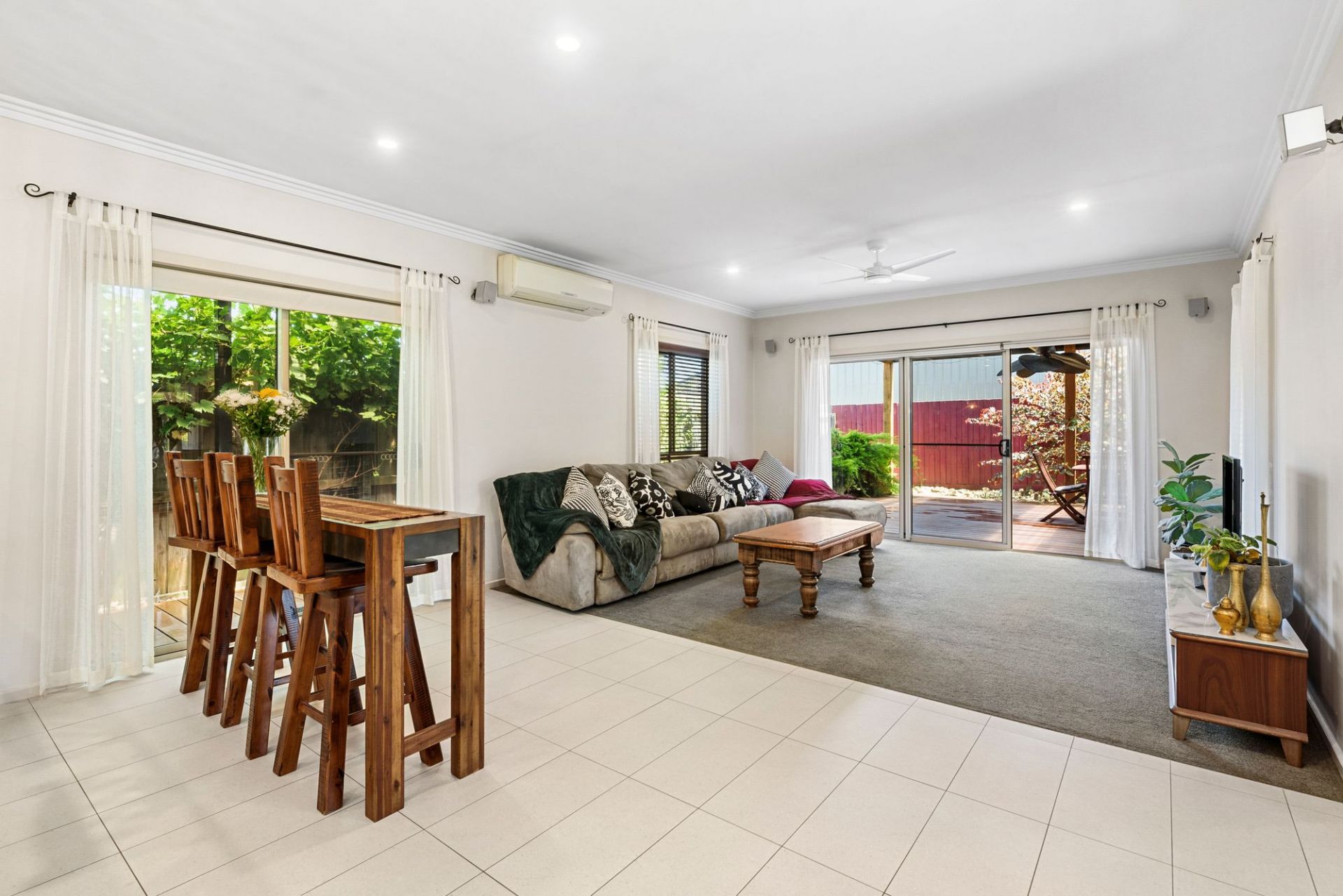 Unwind in the open plan kitchen, meals and living zone, privatised from neighbours by established grape vines and offering continuous connection to the undercover outdoor alfresco deck via stacking slider doors. Formal dining is catered for adjacently while a private second lounge offers the perfect nook for movie nights and parental retreat. Cooks will be appeased by the 900mm Freestanding oven with gas cooktop, Miele dishwasher, ample storage and copious island bench within the galley kitchen.