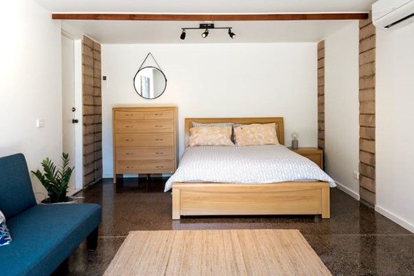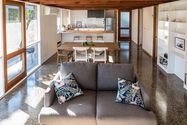 If you are renovating or relocating consider this stylish 3 bedroom home located in close proximity to shops and cafes, surf beaches and the river beach. Also walking distance to Barwon Heads Golf Club. This light filled home offers a styish new kitchen, updated bathrooms, thermally efficient concrete flooring, north facing windows overlooking charming secure yard. Reverse cyle units in living spaces plus wood fire for cosy winter evenings. A very private home in the heart of Barwon Heads. Fully equipped kitchen including dishwasher and coffee machine. Bedding configuration, queen bed in master, bunks plus trundle in second bedroom and queen bed plus couch in 3rd bedroom accessed via covered patio. Shed for storage