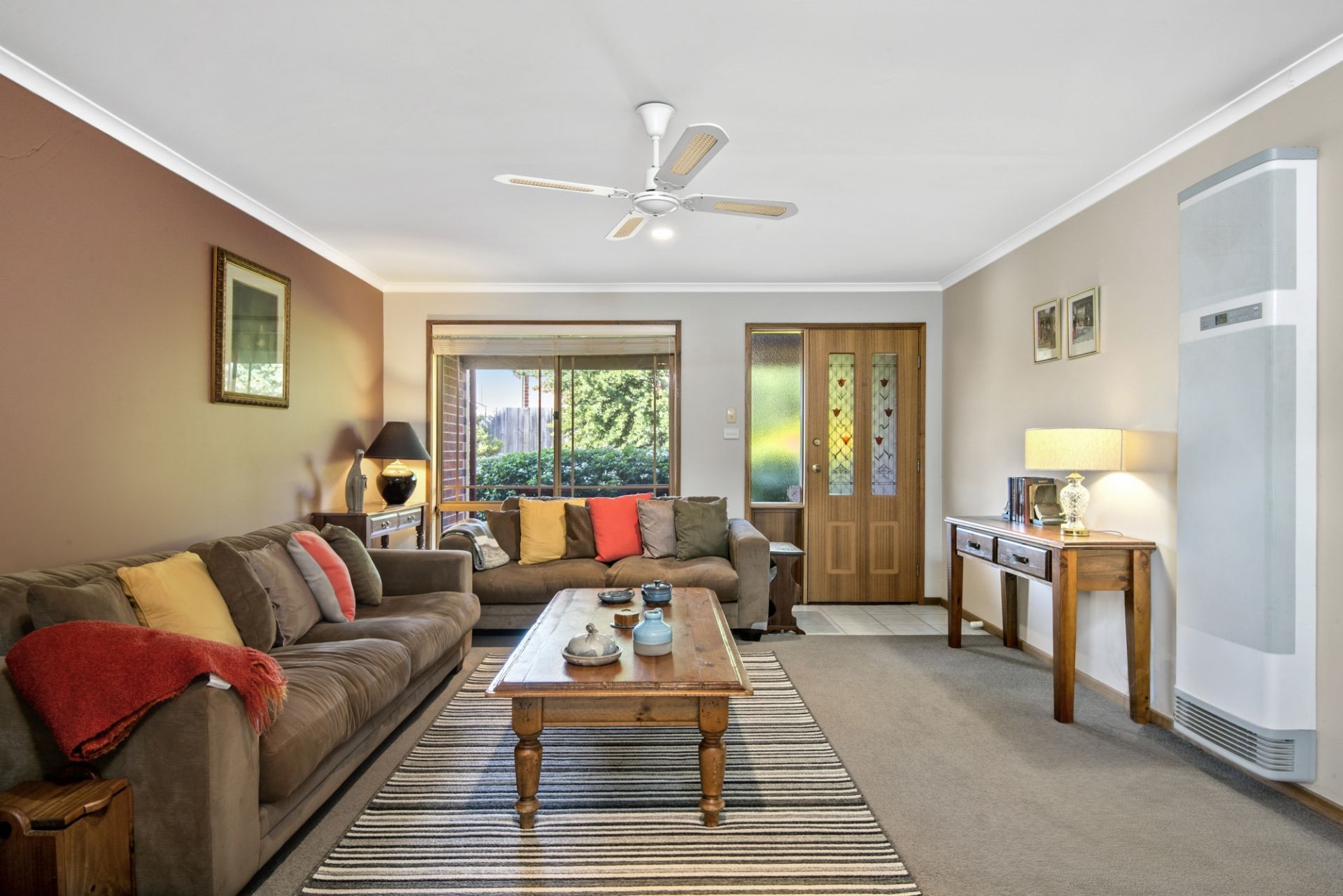 Beyond the front security door is an inviting, carpeted living area with a gas wall-heater and ceiling fan. Through the sliding door is the sleeping quarters with two very spacious double bedrooms with built-in robes and a large and central bathroom that accommodates a bath, shower, vanity and toilet.