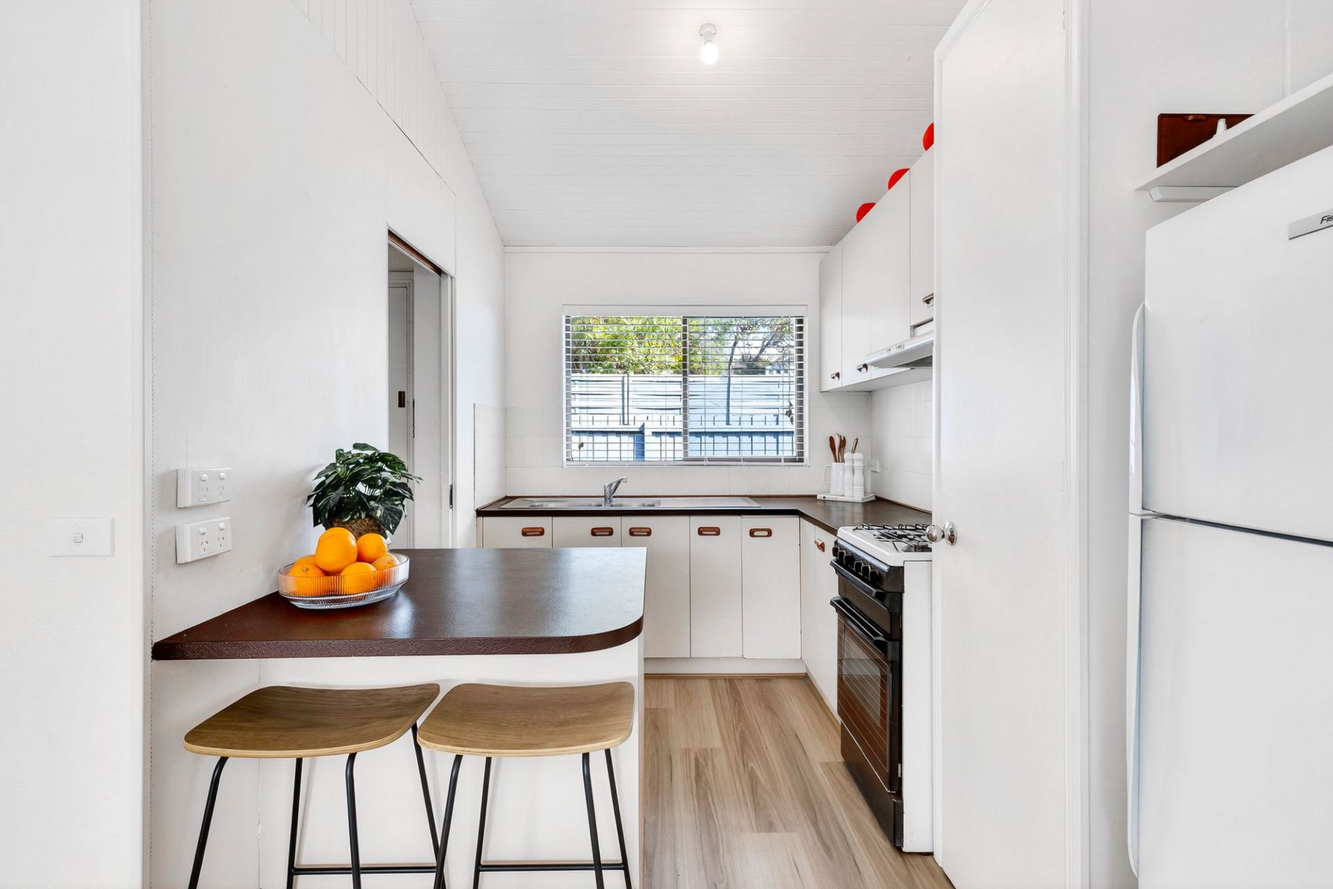 Inside, the spacious 104m² layout features a bright, open-plan living area enhanced by a dramatic vaulted ceiling, creating a light-filled and airy atmosphere. New flooring adds a fresh, modern touch, while split-system heating and cooling ensures you stay comfortable year-round. The kitchen and bathroom are clean and functional, offering immediate usability with excellent scope for a stylish update down the line. Both bedrooms are well-sized, and storage is generous throughout.