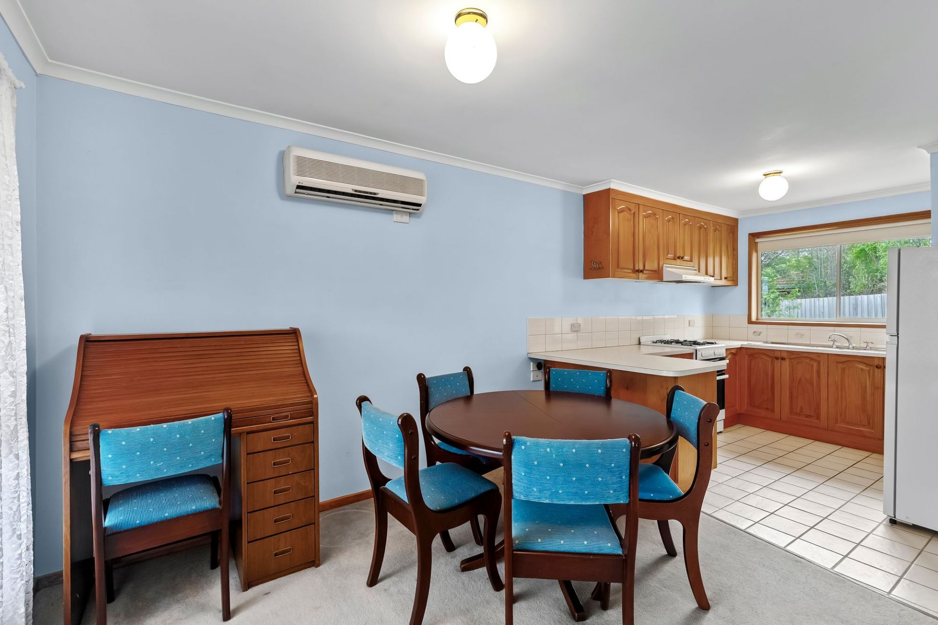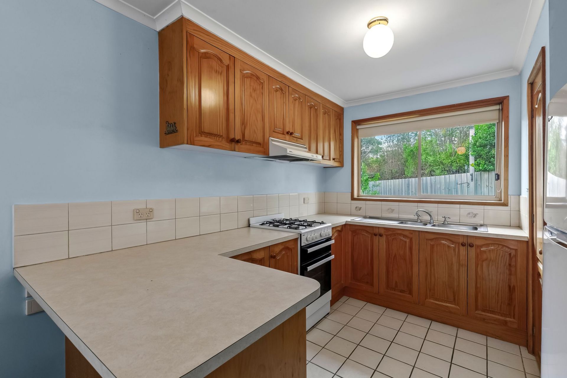 An enclosed portico provides secure entry beyond the welcome of a homely picket fence, leading you into the spacious lounge and dining area enjoying pretty garden views. Soft carpets and curtains induce interior comfort, with reverse cycle air conditioning, ceiling fans and wall heating ensuring seasonal contentment. Solid timber cabinetry is featured within the u-shaped kitchen, with an upright 600mm oven/gas cooktop, well-appointed pantry and tranquil verdant outlooks to the rear.