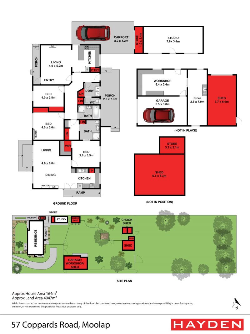 The single carport provides undercover parking, while the single lock-up garage features an adjoining workshop and storage room. Other features include two large sheds, chook pens, septic sewerage and town water.