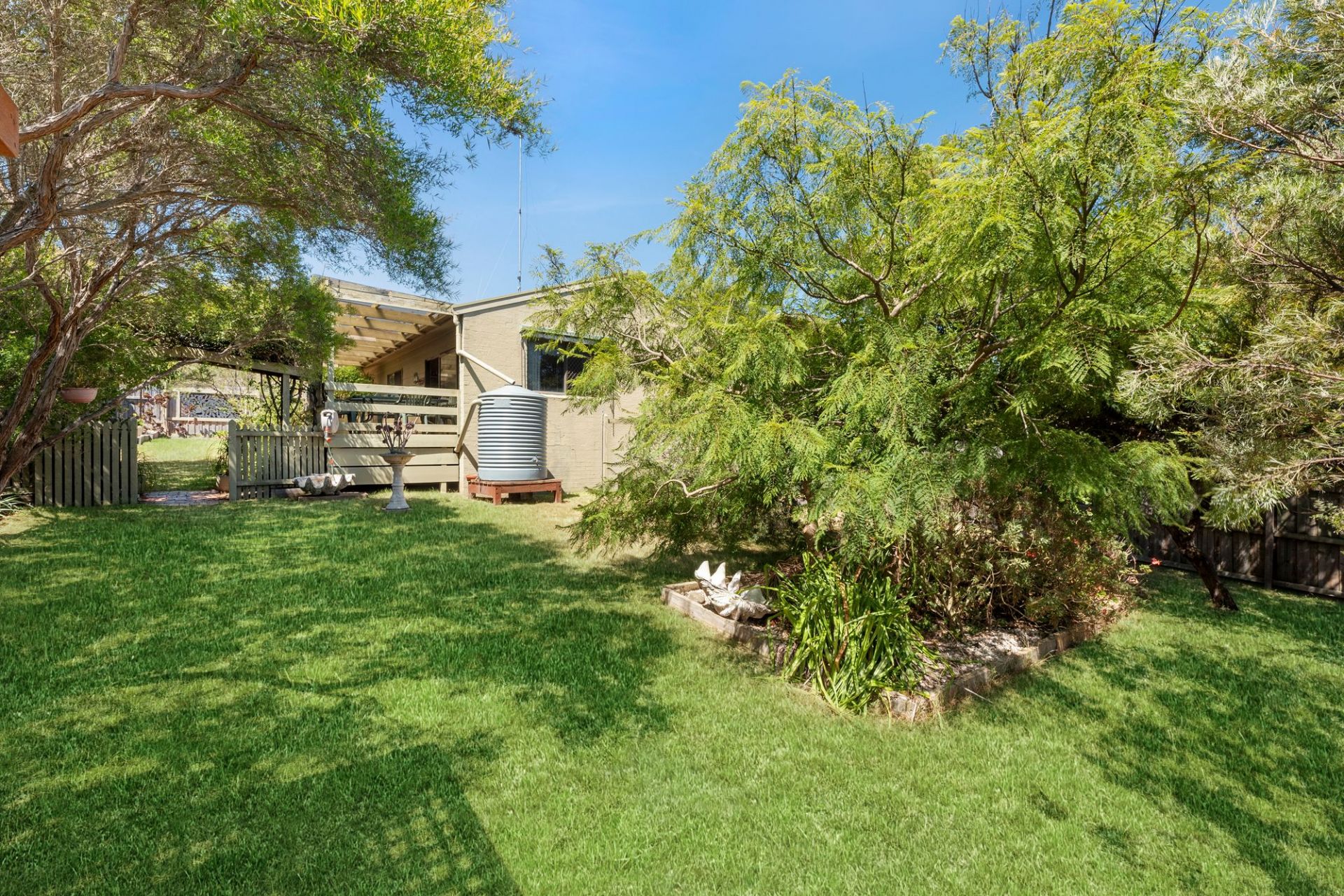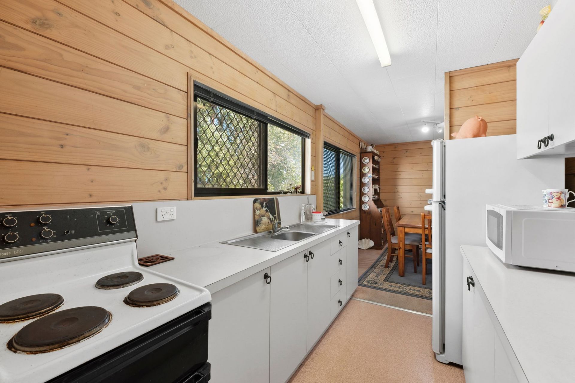 Timber wall panelling adds character to the relaxed interiors. The living/dining zone flows onto the covered alfresco deck, which is ideally positioned to soak up the northern sunshine. With the deck also capturing glimpses of the bay, you may be inspired to add a second storey to maximise the picturesque outlook (STCA). The kitchen is well equipped with an oven/electric cooktop. Three bedrooms (two with built-in robes) are serviced by the bathroom, while the laundry and separate toilet complete the layout. A wall heater, split-system air conditioner and ceiling fans provide comfort.