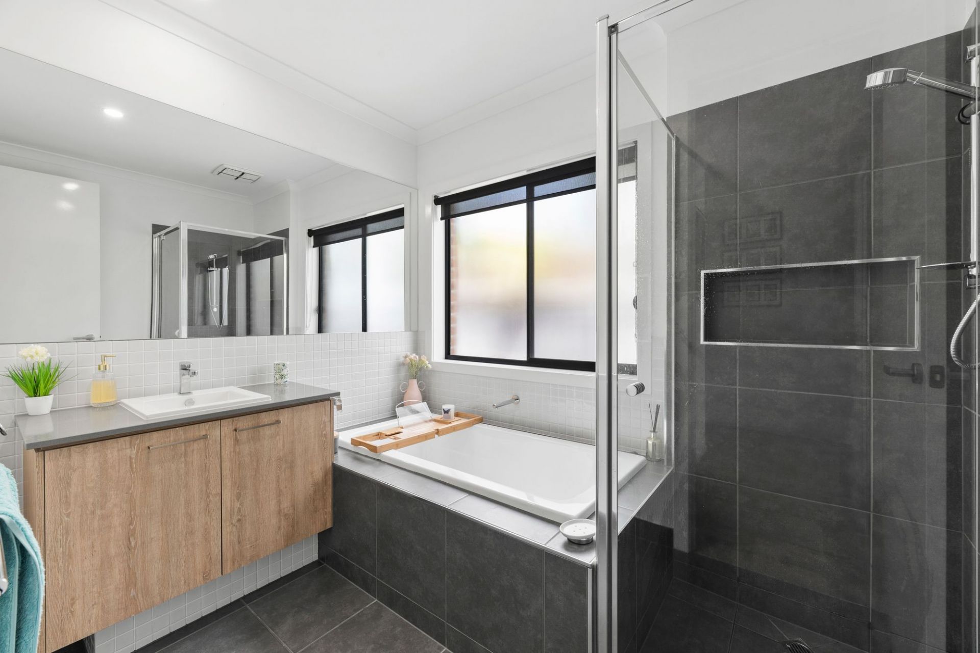 Cook up a storm in your light and bright stylish sophisticated kitchen that has stainless steel appliances including a 900ml oven, plenty of cupboard and bench space and a walk-in butler’s pantry. The kitchen overlooks the dining and family room so the whole family can join together. Sliding doors open to the lovely backyard which includes an undercover decked area and blinds so you can make use of the area all year long.