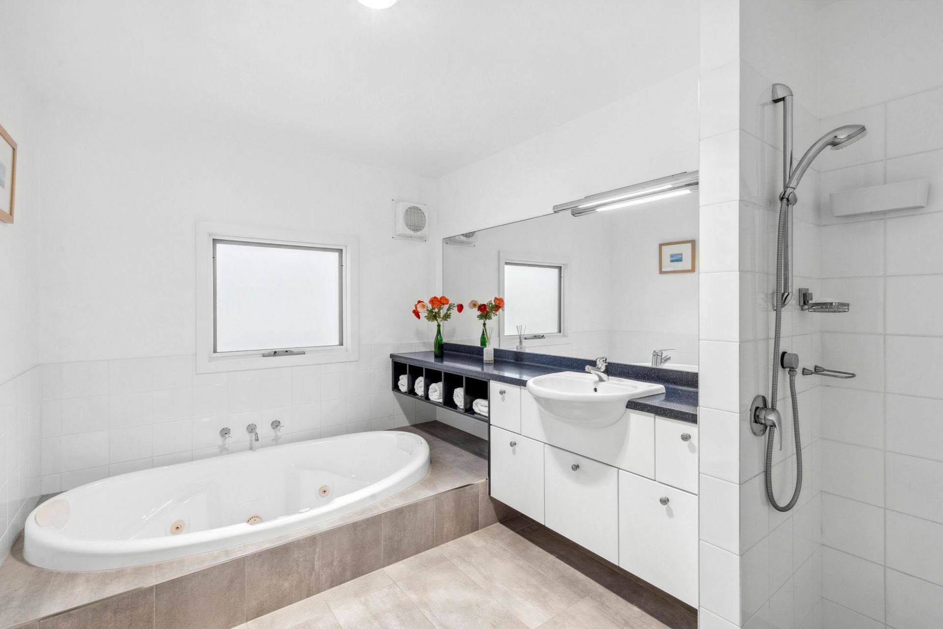 Accommodation is superbly designed for families or those hosting guests. The luxurious master suite commands breathtaking outlooks from its expansive windows and private front deck, and features a generous walk-in robe plus an indulgent ensuite with a walk-in shower and spa bath. Two oversized upstairs bedrooms and a downstairs guest bedroom with its own ensuite offer comfort and privacy for everyone.