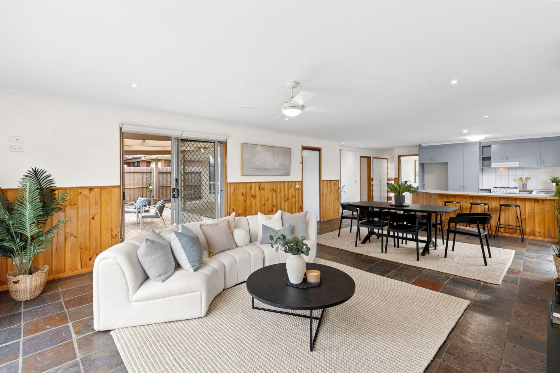 Step inside to discover two distinct living zones. The second living area is bathed in glorious northern light, thanks to double sliding doors that open onto a spacious front deck and private garden. This versatile room could easily become a fourth bedroom or be transformed into a master suite with space to add an ensuite. It's carpeted, features reverse-cycle air conditioning, and offers flexibility for growing families or guests.