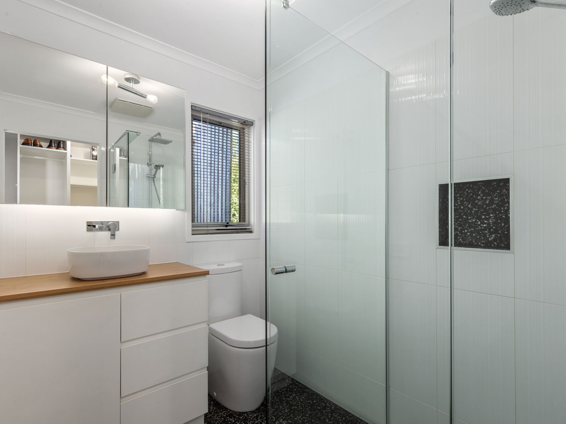 • Main Bedroom: The spacious main bedroom boasts a solar-powered roller shutter by Victory, providing excellent sun protection and helping to retain warmth during the winter months. The ensuite and wardrobe have been completely remodeled with cabinetry and fittings sourced from Reece Plumbing.