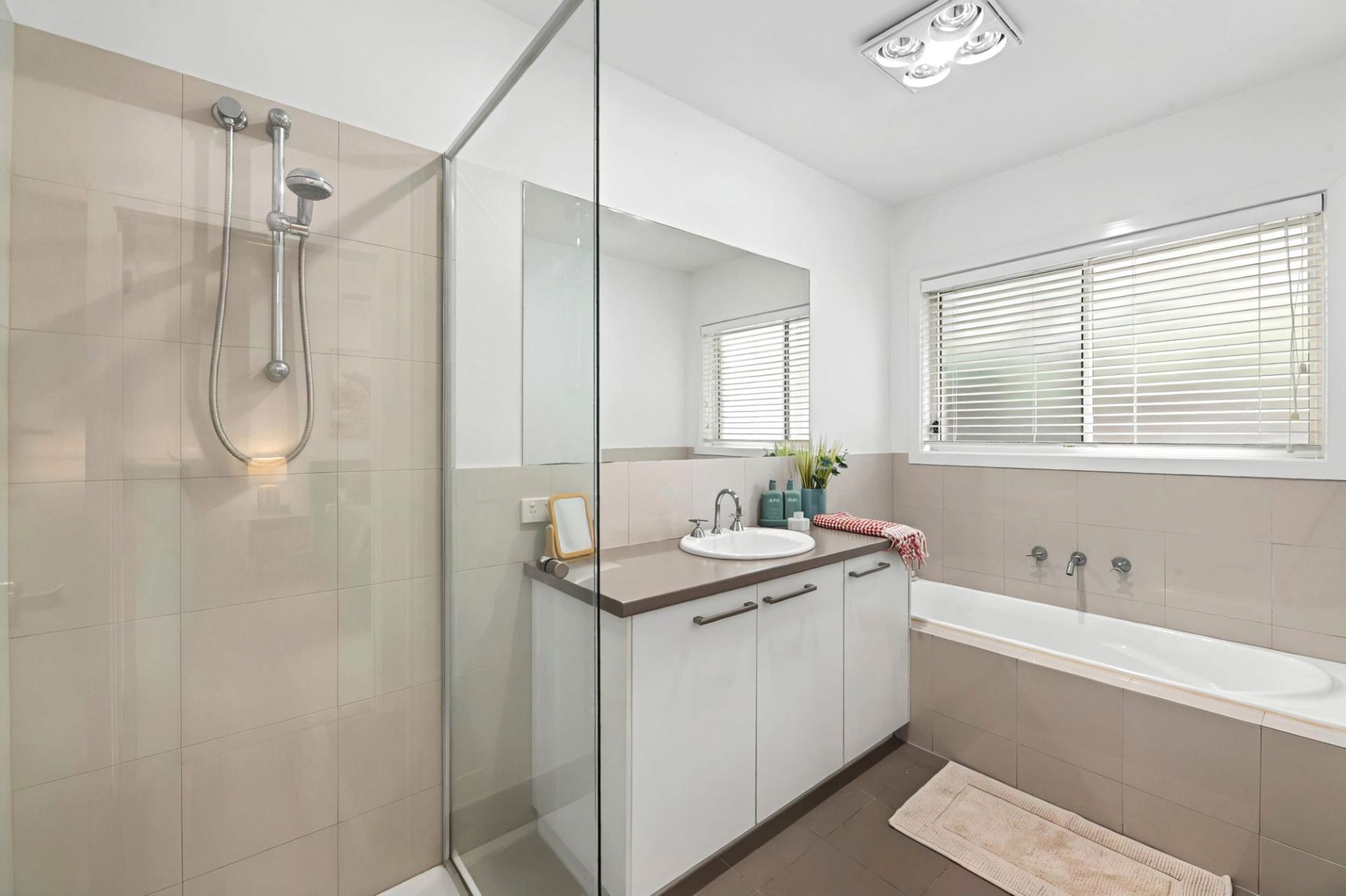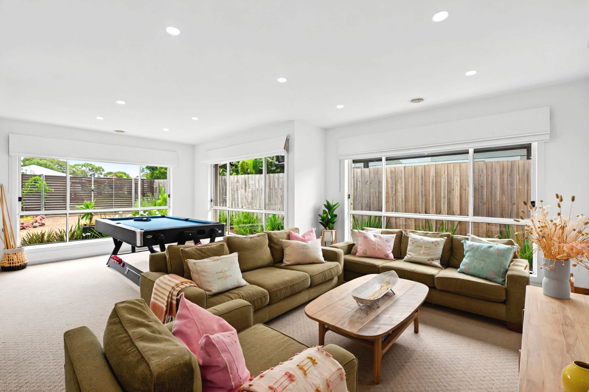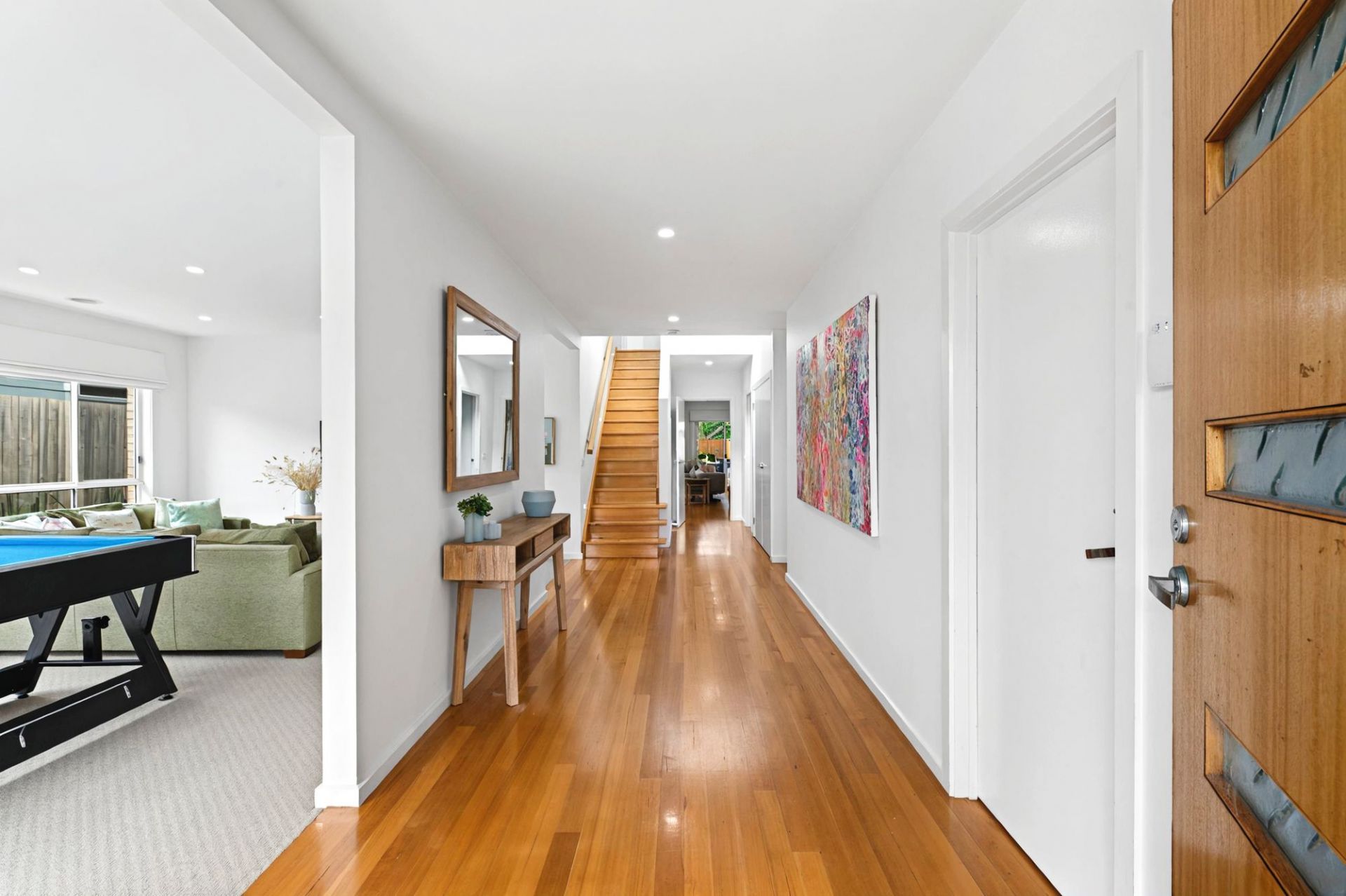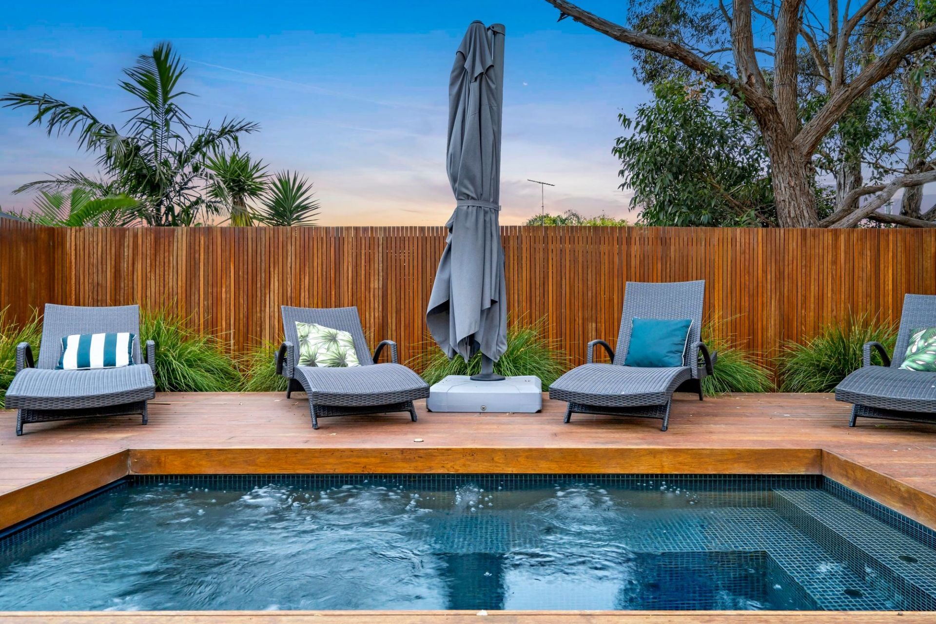On the lower level, the front north-facing lounge room is bright and spacious. Two minor bedrooms, each with ample built-in storage, share the main bathroom with a bath and separate WC. The rear open-plan living area is the heart of the home, featuring a chef's kitchen with waterfall stone benchtops, stainless steel appliances, a walk-in pantry, and plenty of cabinetry. A glass splashback frames the garden view, while the dining space and primary lounge seamlessly connect to the rear yard, creating a perfect zone for entertaining. Flowing from indoors is the fabulous outdoor area. With undercover entertaining, lawn for kids or pets and a stunning mosaic-tiled 12-person spa, surrounded by decking and lush planting, offering a serene retreat.