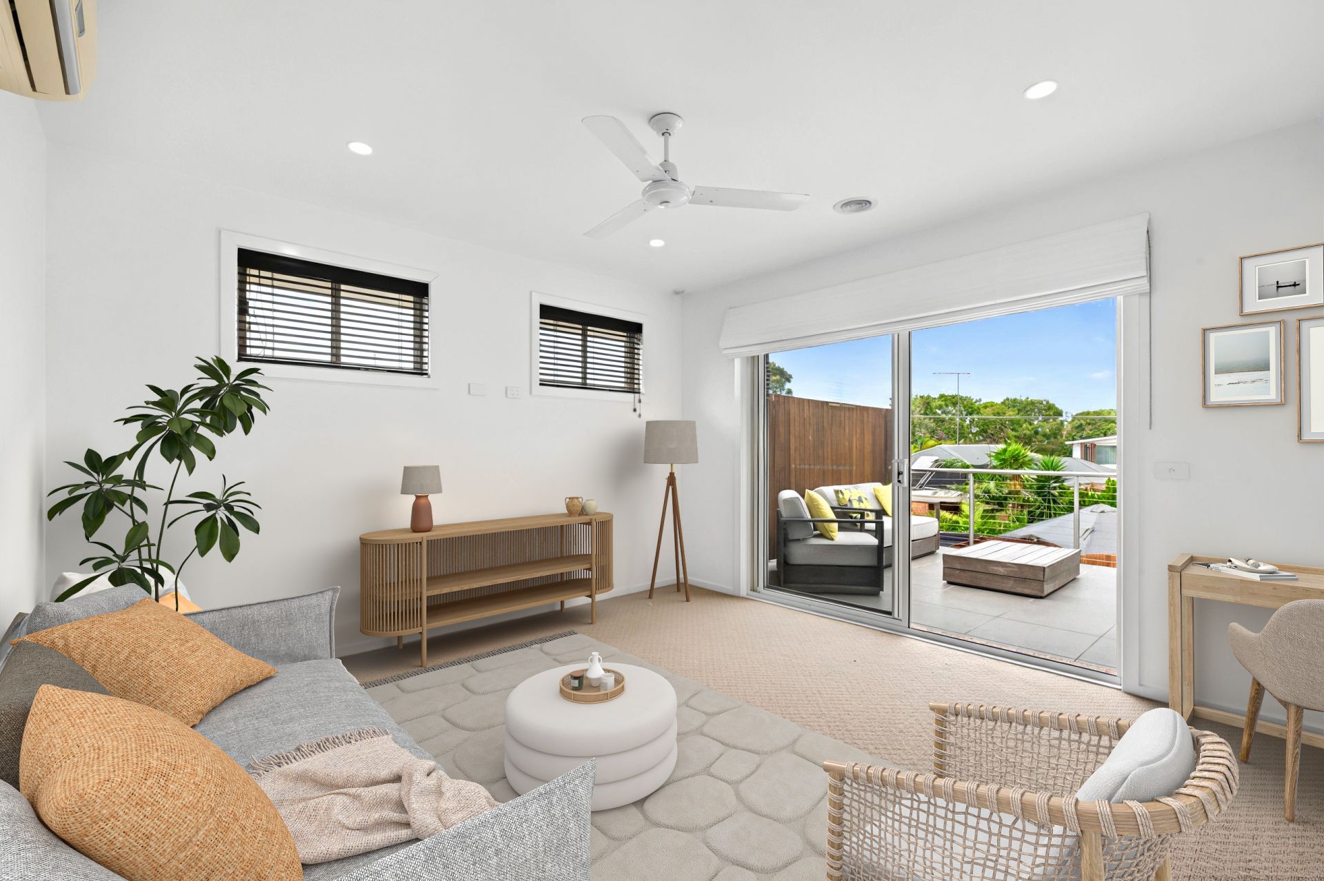 Upstairs, the master suite is a private retreat with a large walk-in robe and an ensuite with an oversized shower. It opens onto a generous balcony with views of the Eucalypt canopy. A versatile third living or WFH space , a fourth bedroom, and additional storage complete the upper level. Ducted heating, air conditioning, and fans ensure comfort year-round.