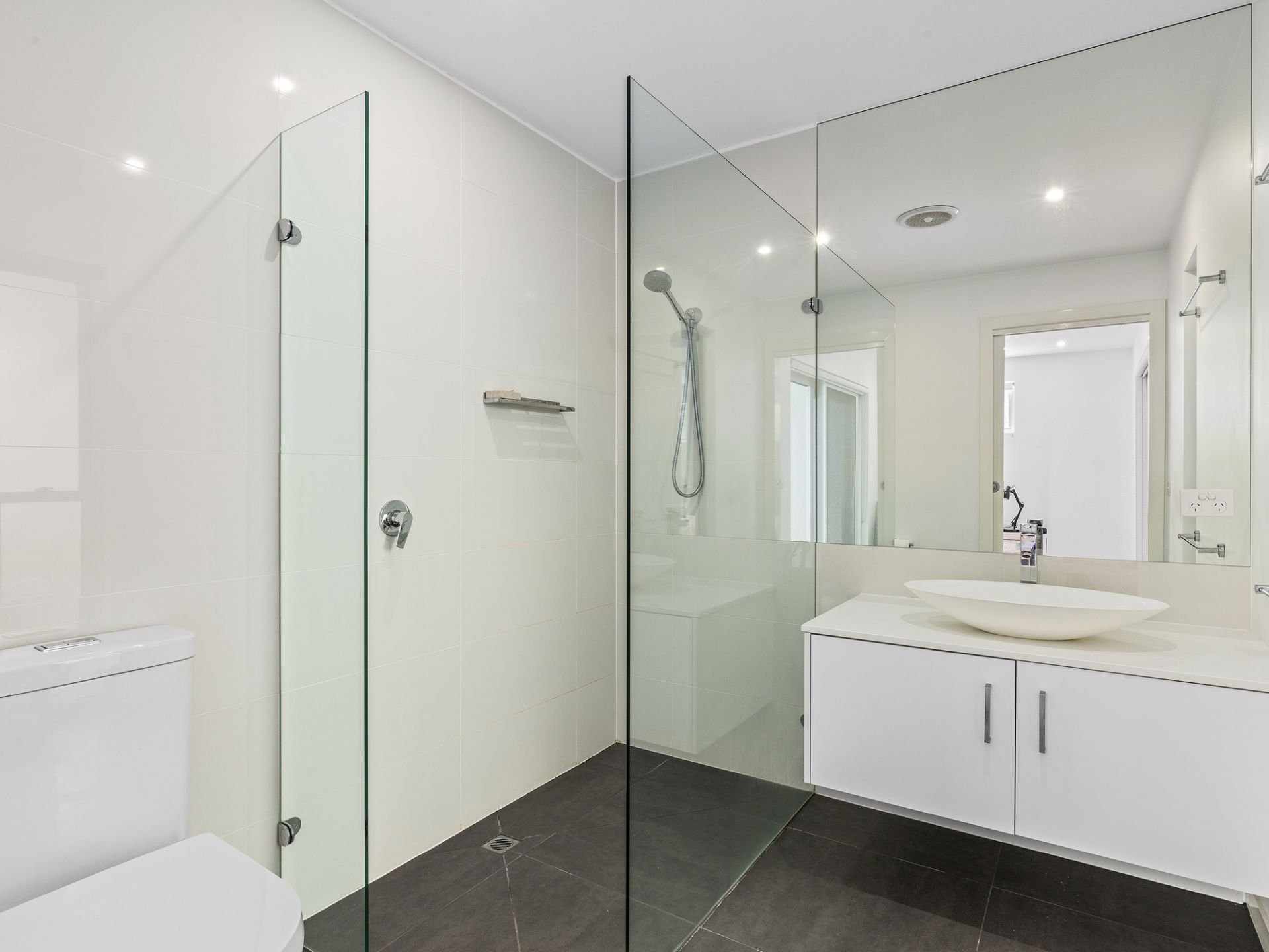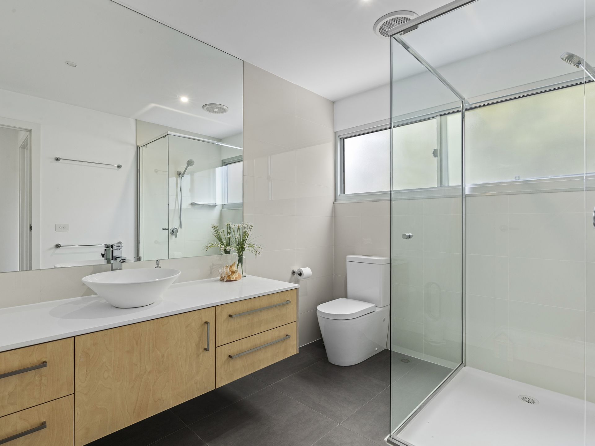 As you enter the ground level, you are greeted with an elegant slate stone entry and passageway. To the left of the entryway, an expansive living space with captivating views of the stunning pool can be found. With the ground level offering 3 large bedrooms, 1 including a built-in robe, 1 including a built-in robe, ensuite, and deck access, and the last one including a walk-in robe, ensuite, and deck access. The ground floor also includes a spacious laundry and a family bathroom.
