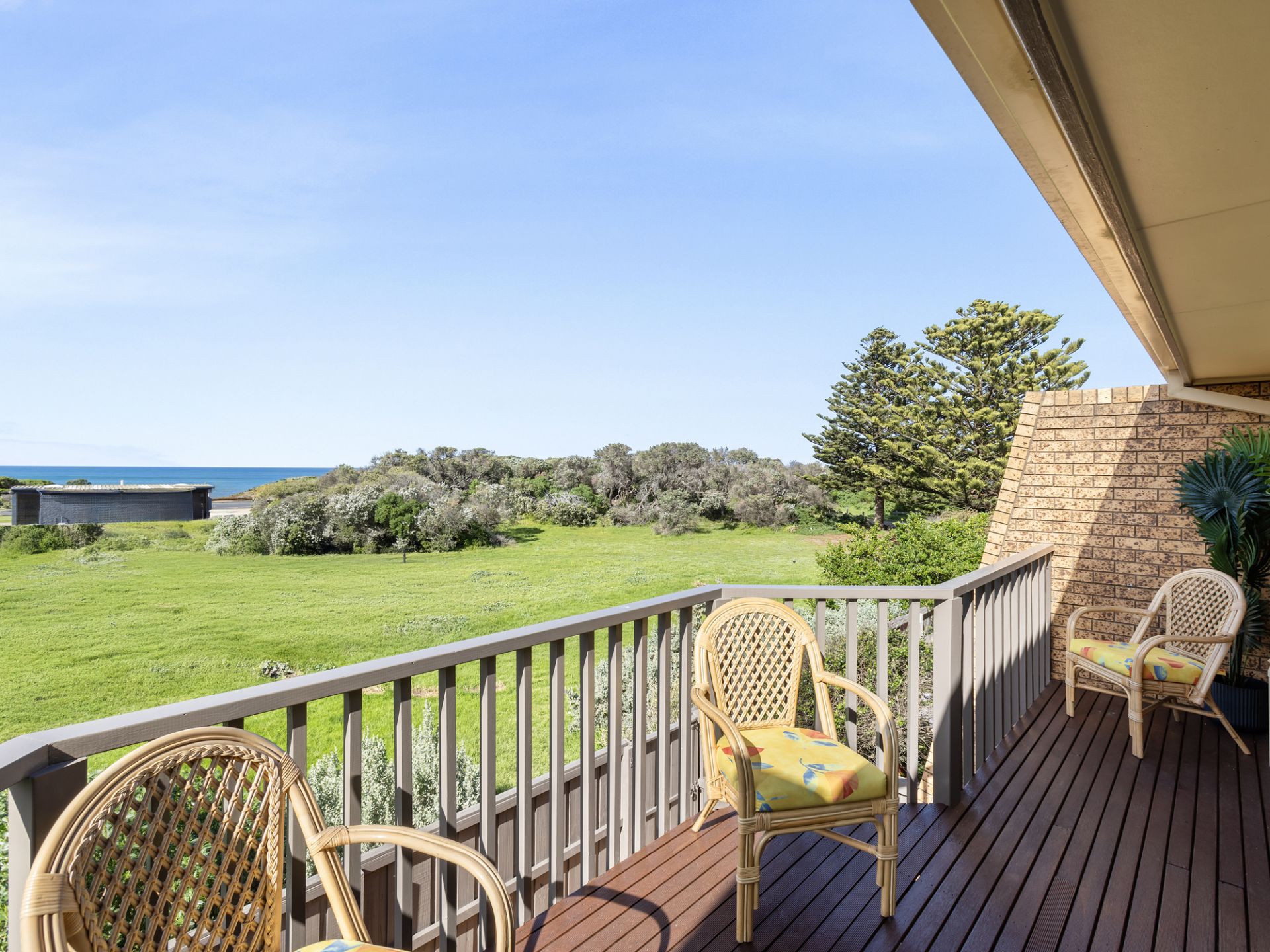 Set across two levels, the home features three bedrooms, with two located downstairs alongside the central bathroom and laundry. Upstairs, the light-filled open-plan living, dining, and updated kitchen make the most of the breathtaking outlook, flowing out to a private balcony where the panoramic ocean views stretch before you. A third bedroom upstairs provides flexibility for family, guests, or working from home.