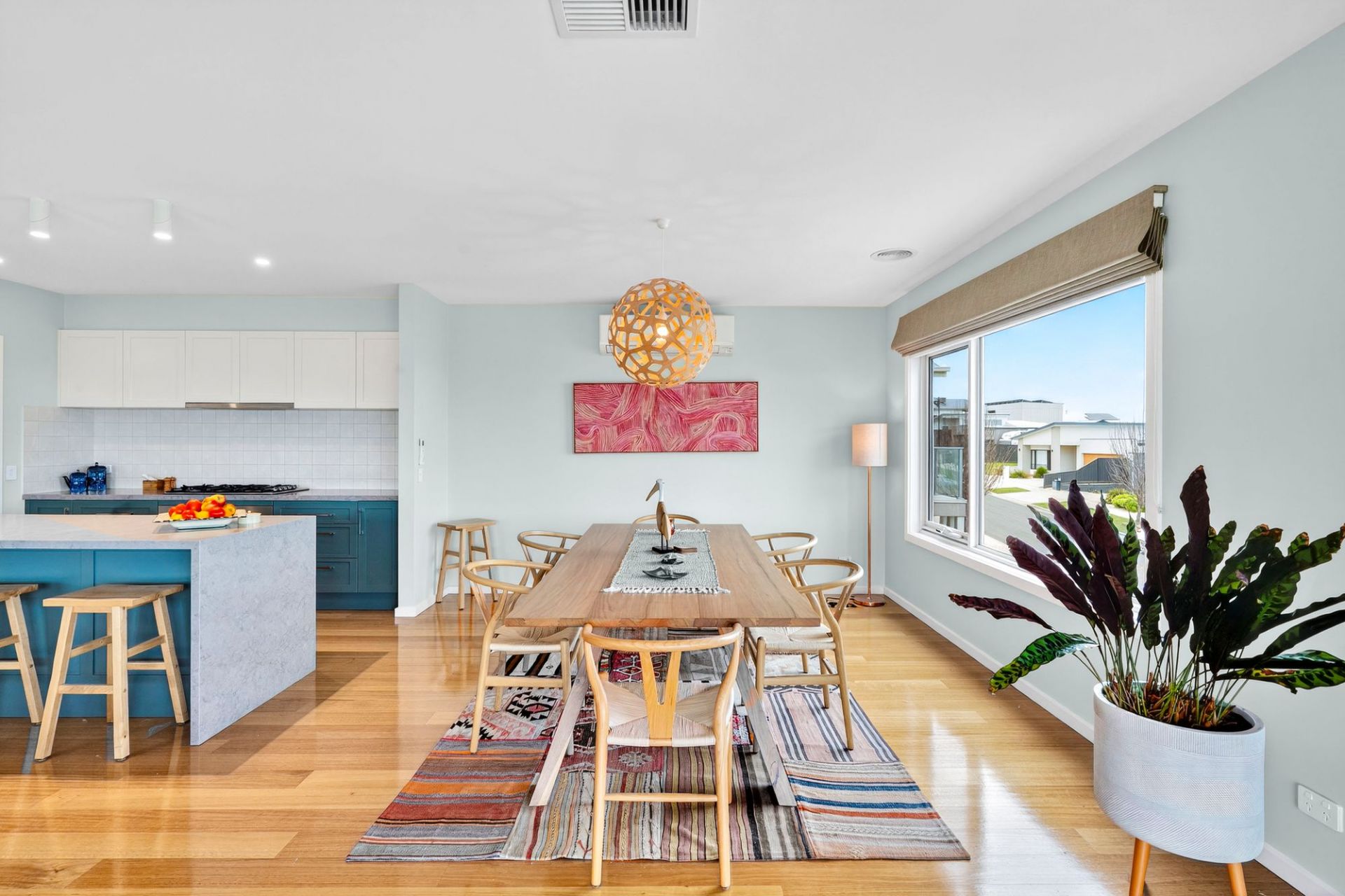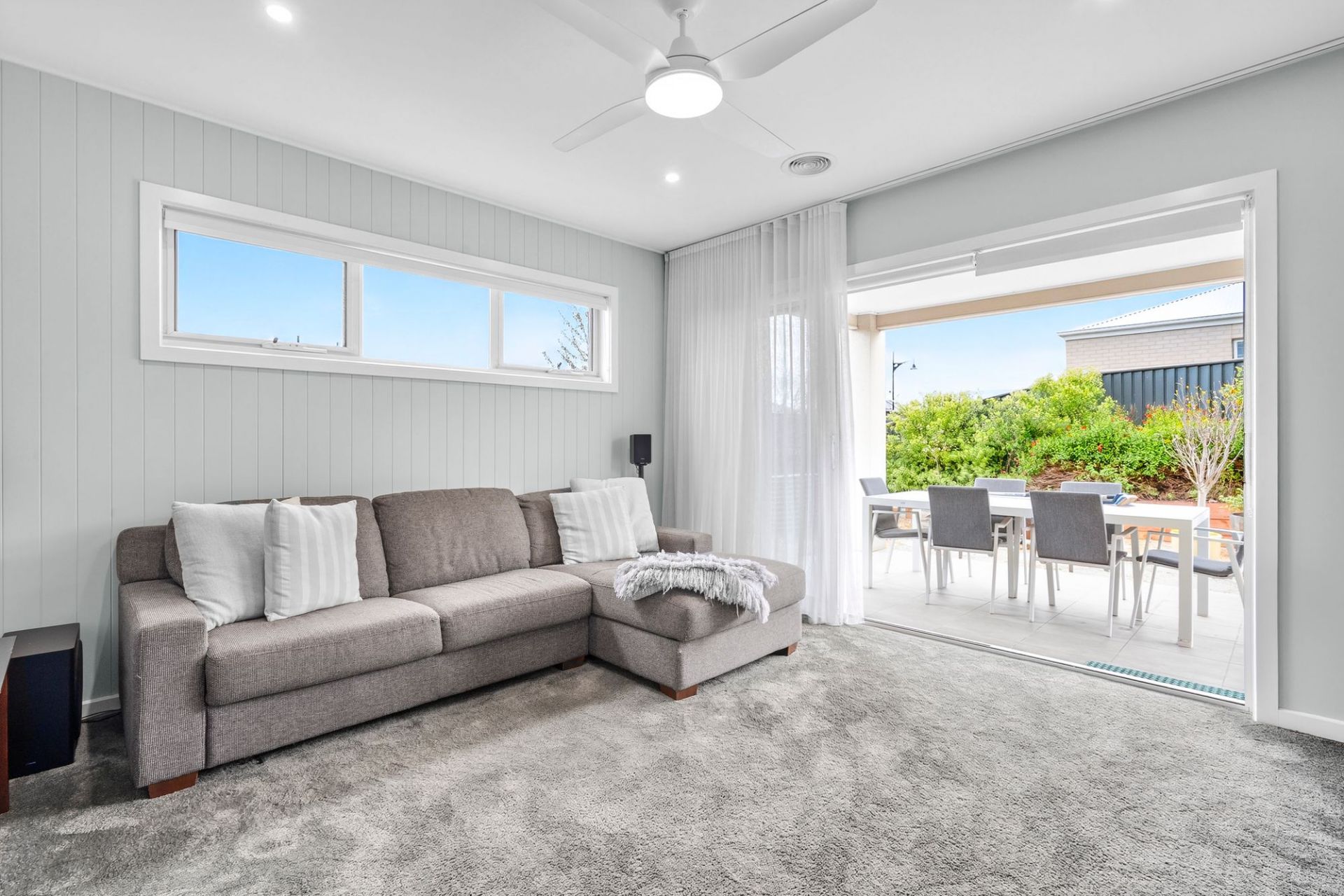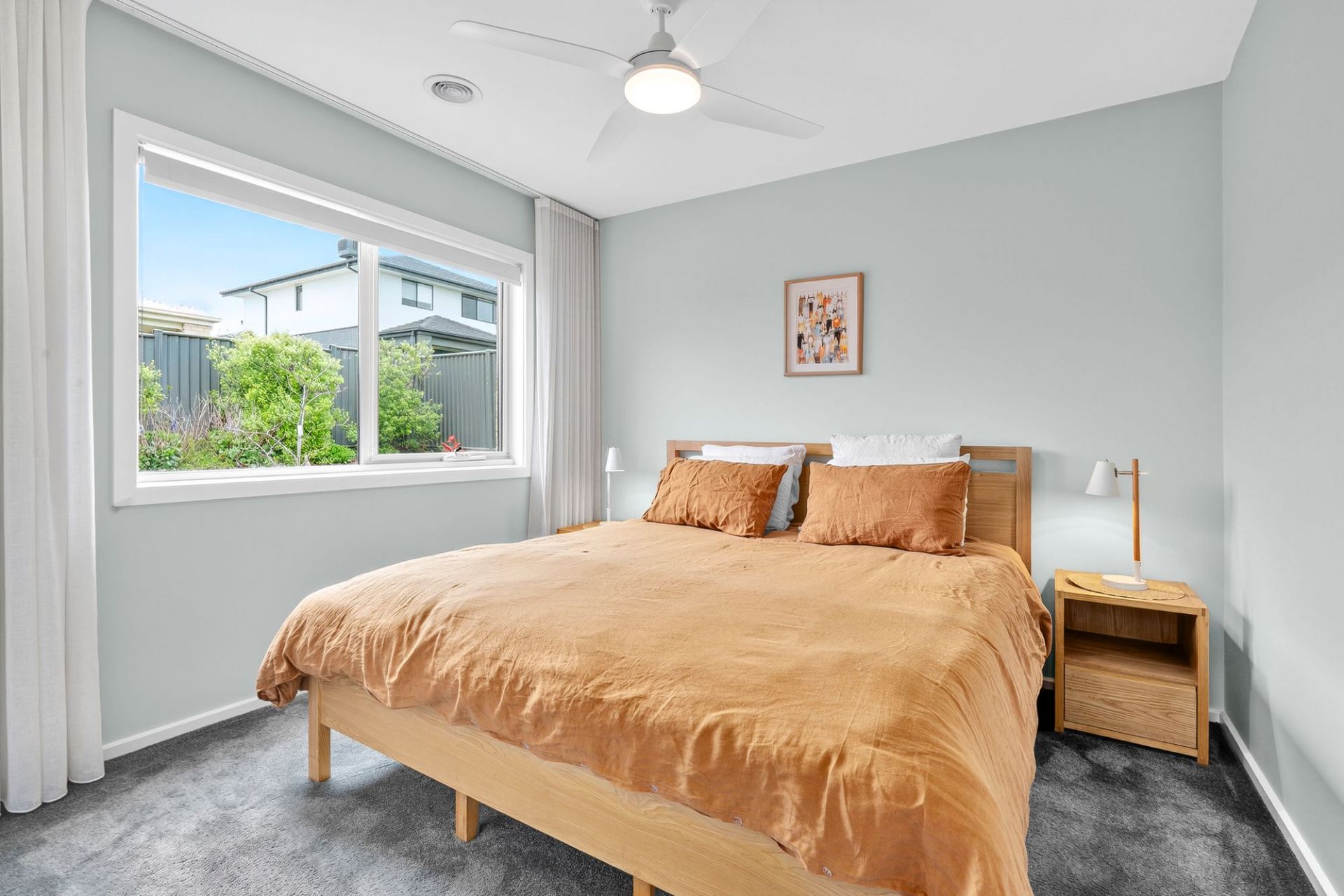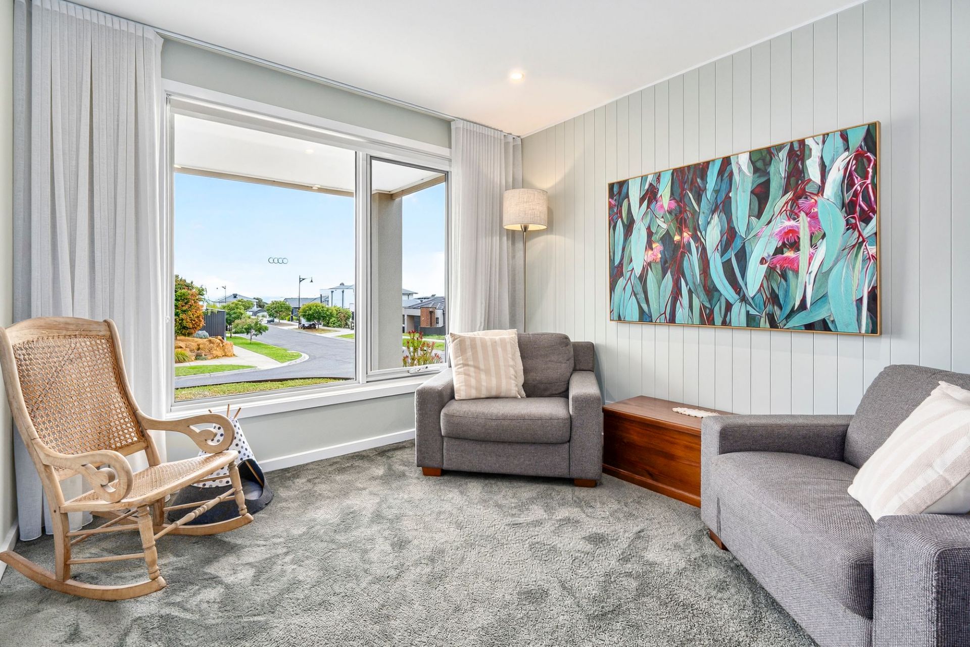 From the moment you arrive, the home's beautifully landscaped coastal-style gardens create a relaxed, sophisticated first impression. Inside, warm timber floorboards lead you through thoughtfully designed spaces including a flexible study nook or playroom and two spacious downstairs bedrooms, both with plush carpet, built-in robes, and high-quality window furnishings.